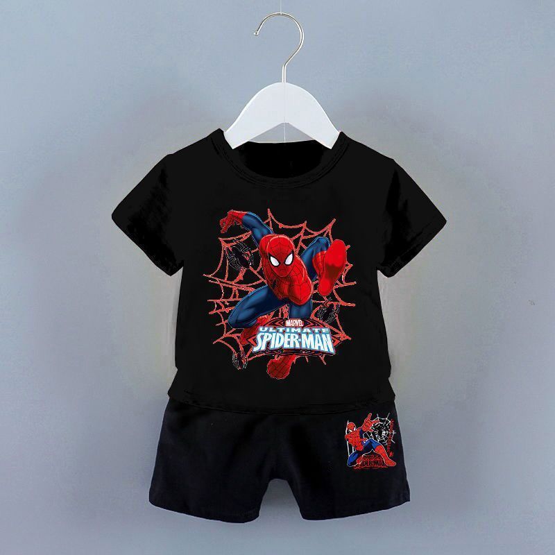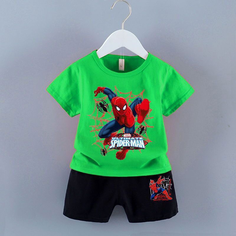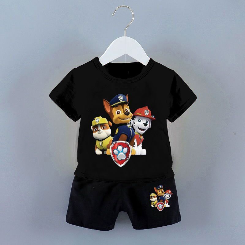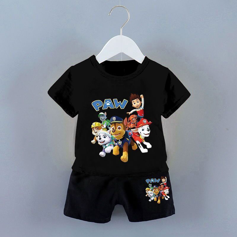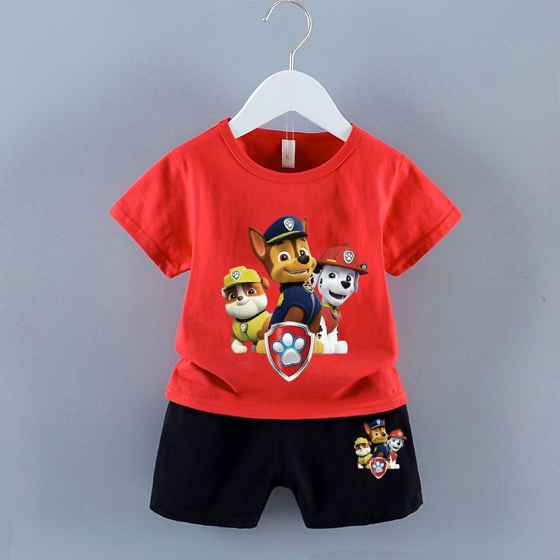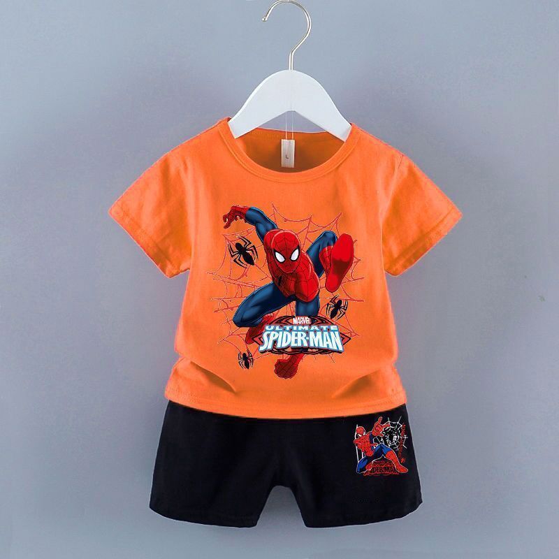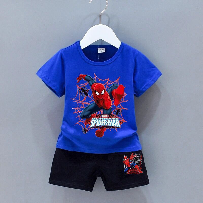 왕왕 팀 어린이 짧은 소매 세트 여름 새로운 트렌드 큰 어린이 세트 만화 프린트 티셔츠 두 조각스토어 가기