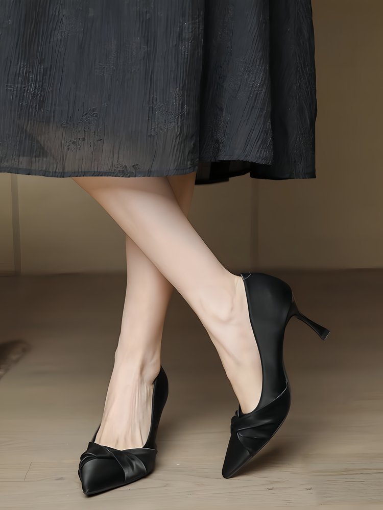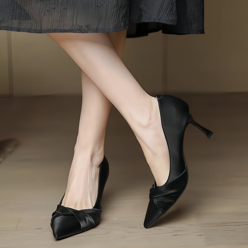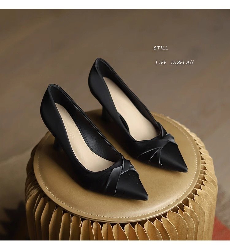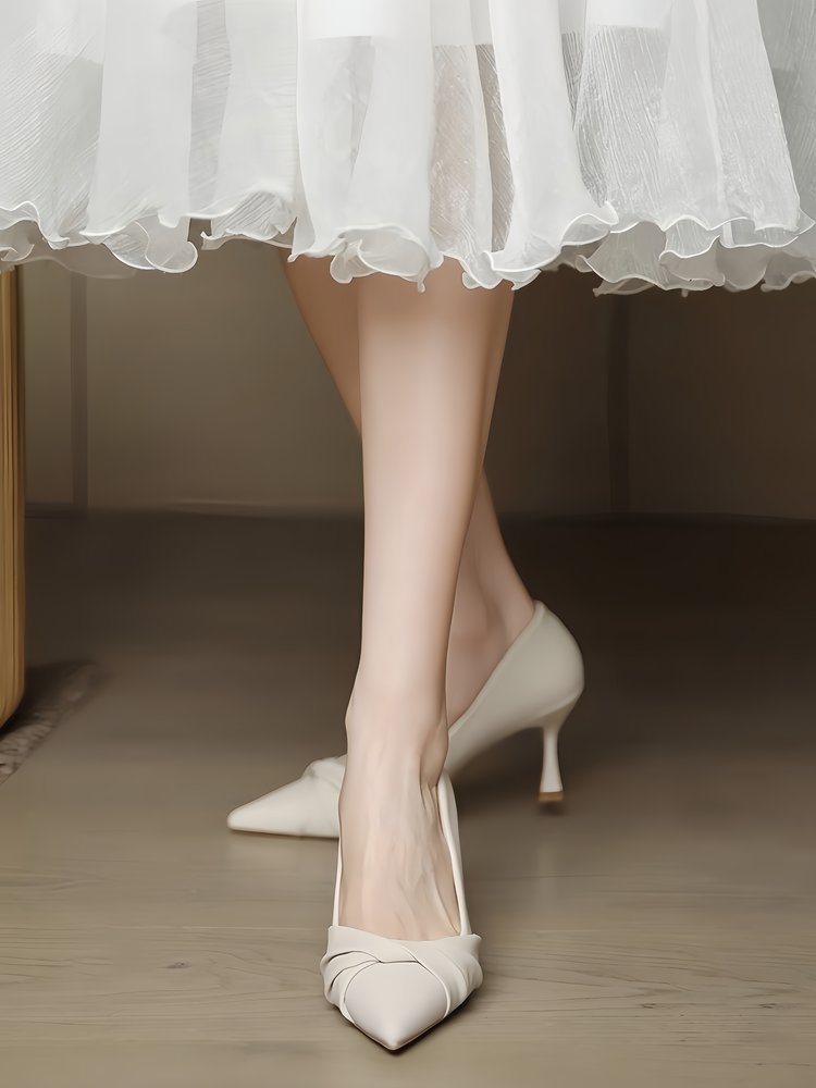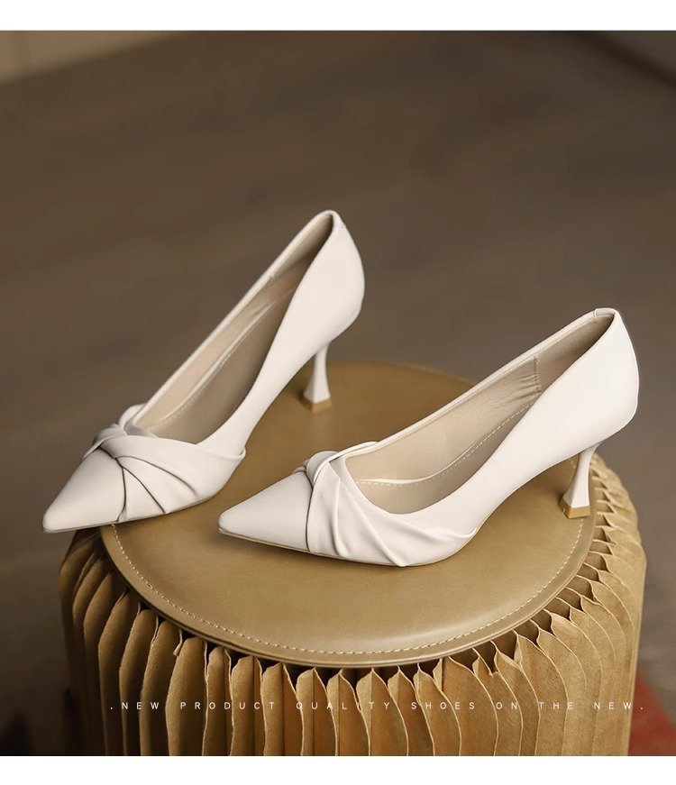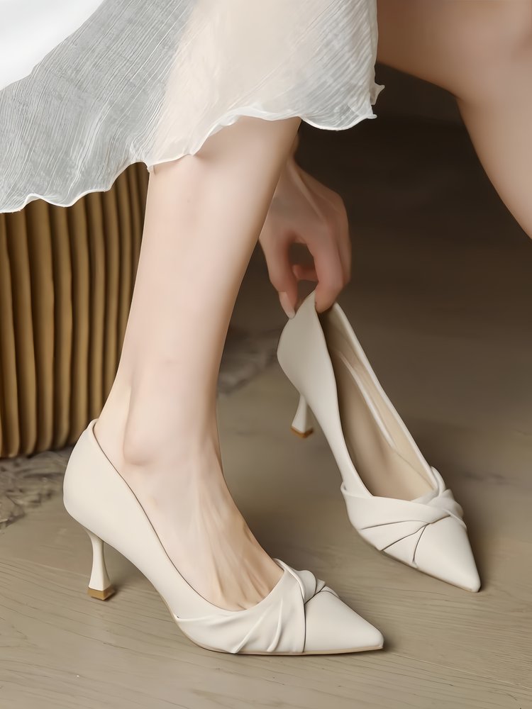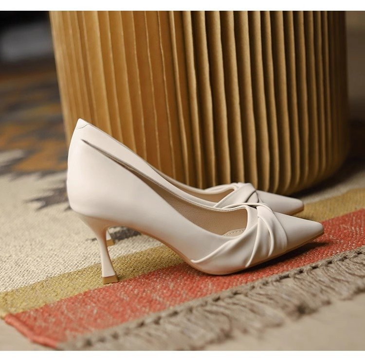 레드 징플라이 브랜드 프렌치 스타일 아이보리 하이힐 여성 뉴 봄 및 가을 신부 들러리 신발 매일 착용 로우 힐 싱글 레이어 신발스토어 가기