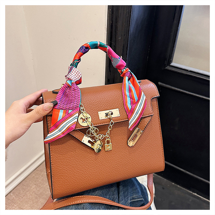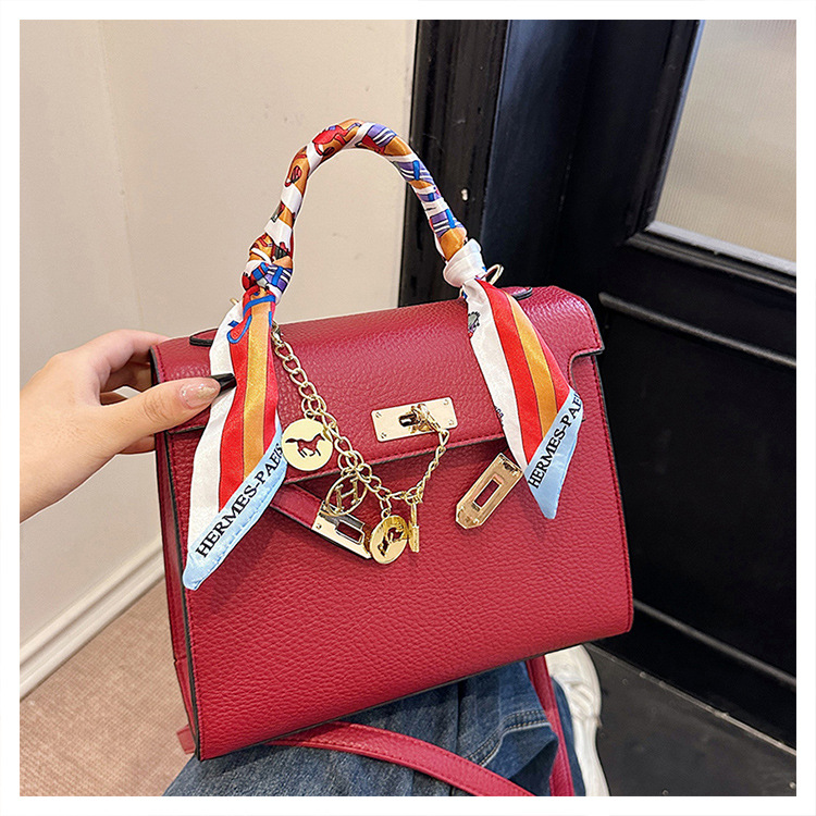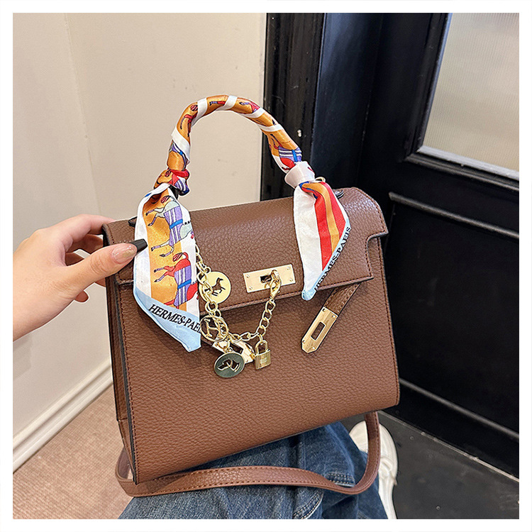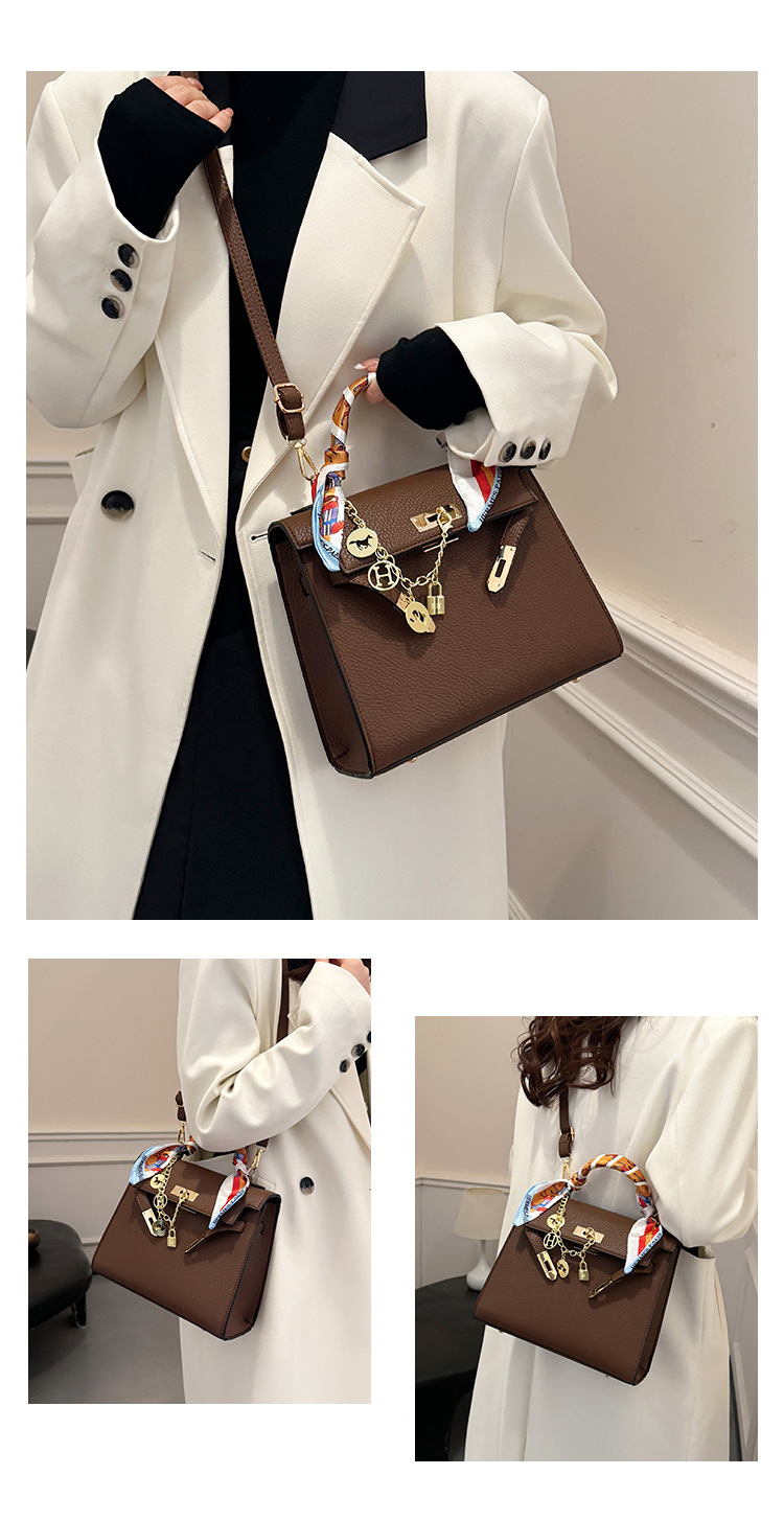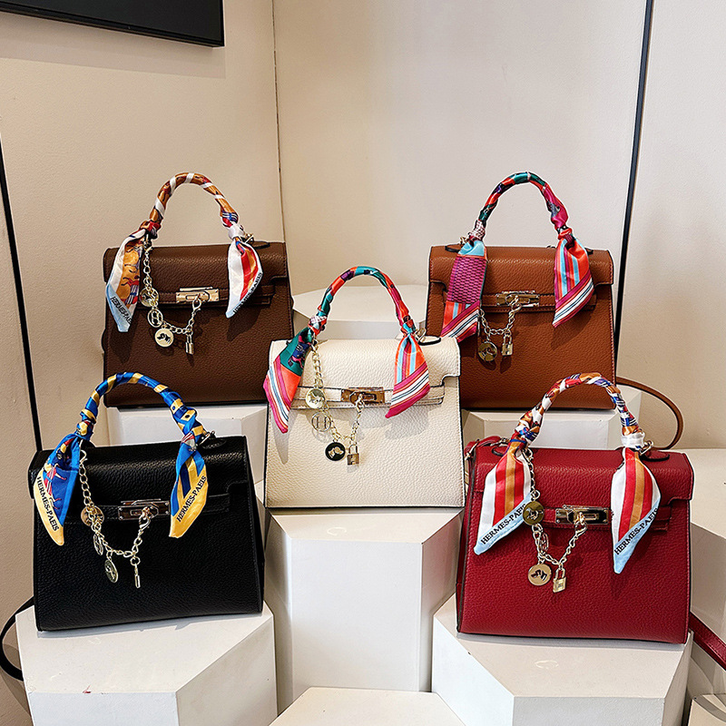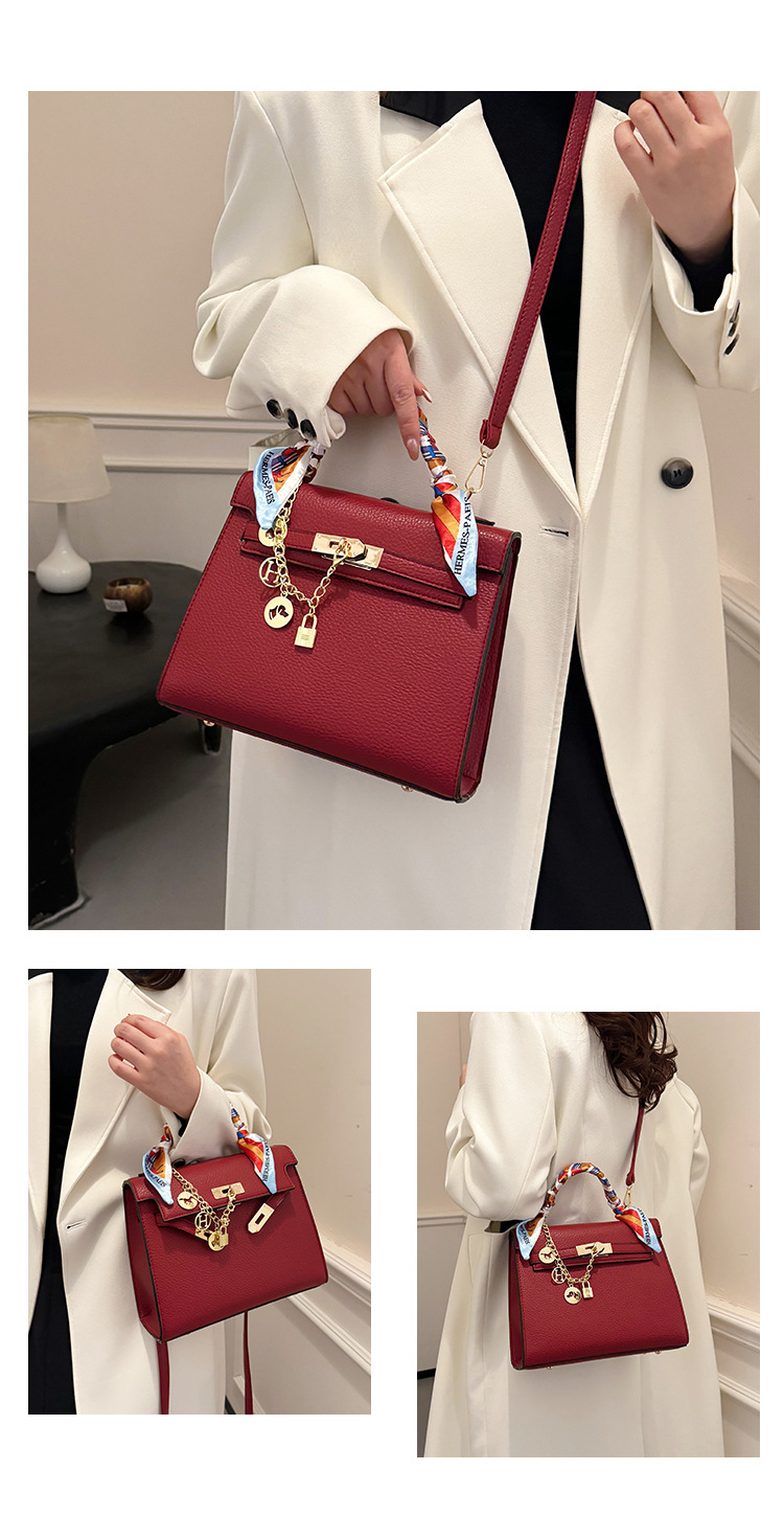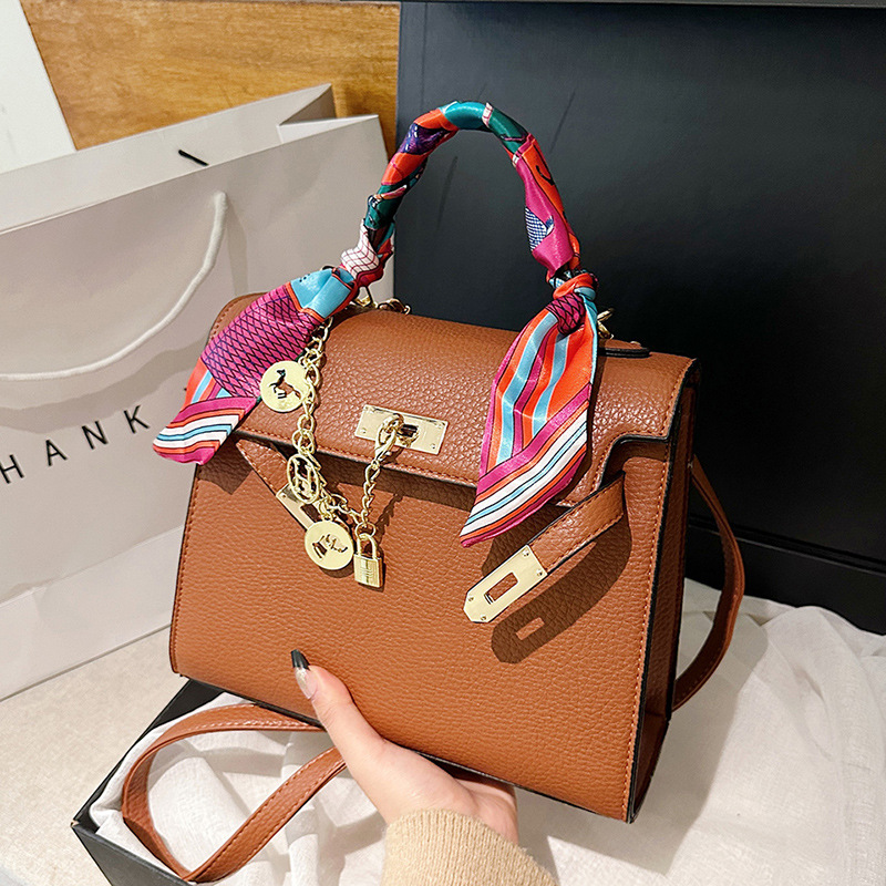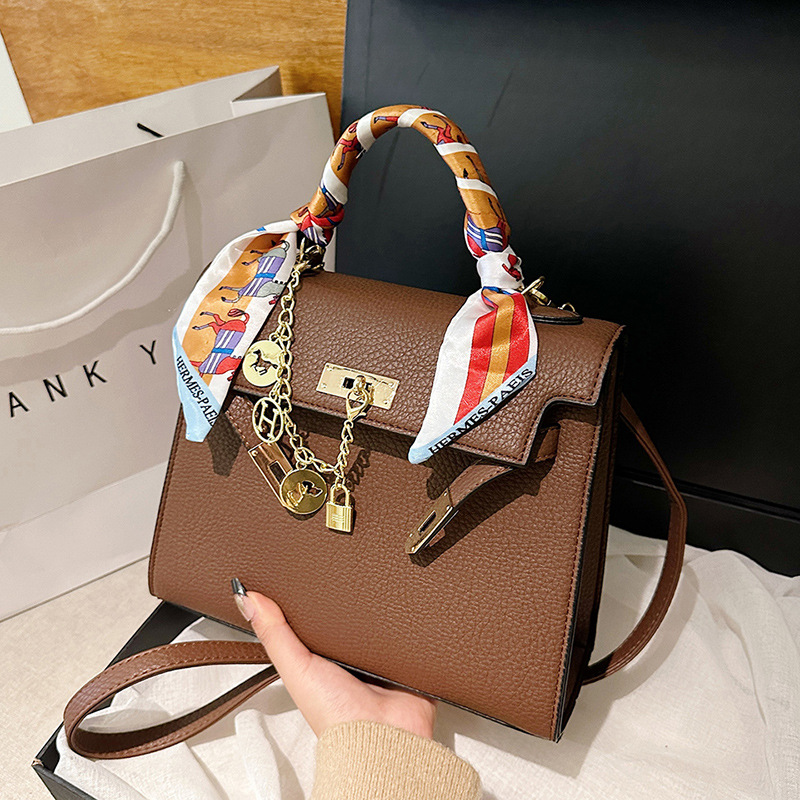 국경 2024 가을과 겨울 새로운 스카프 펜던트 켈리 가방 패션 하이 엔드 휴대용 여성 가방 어깨 크로스 바디 백