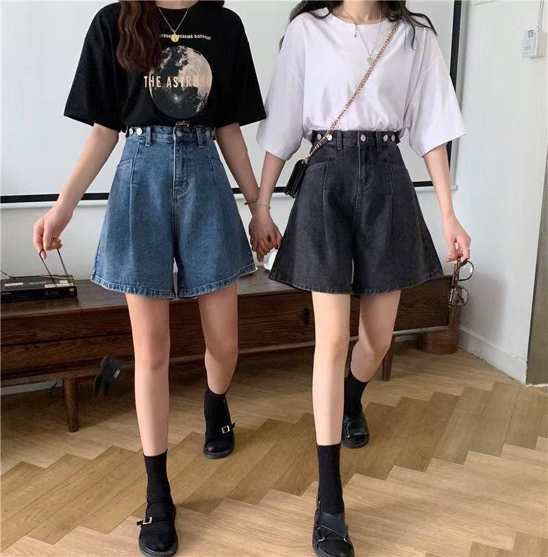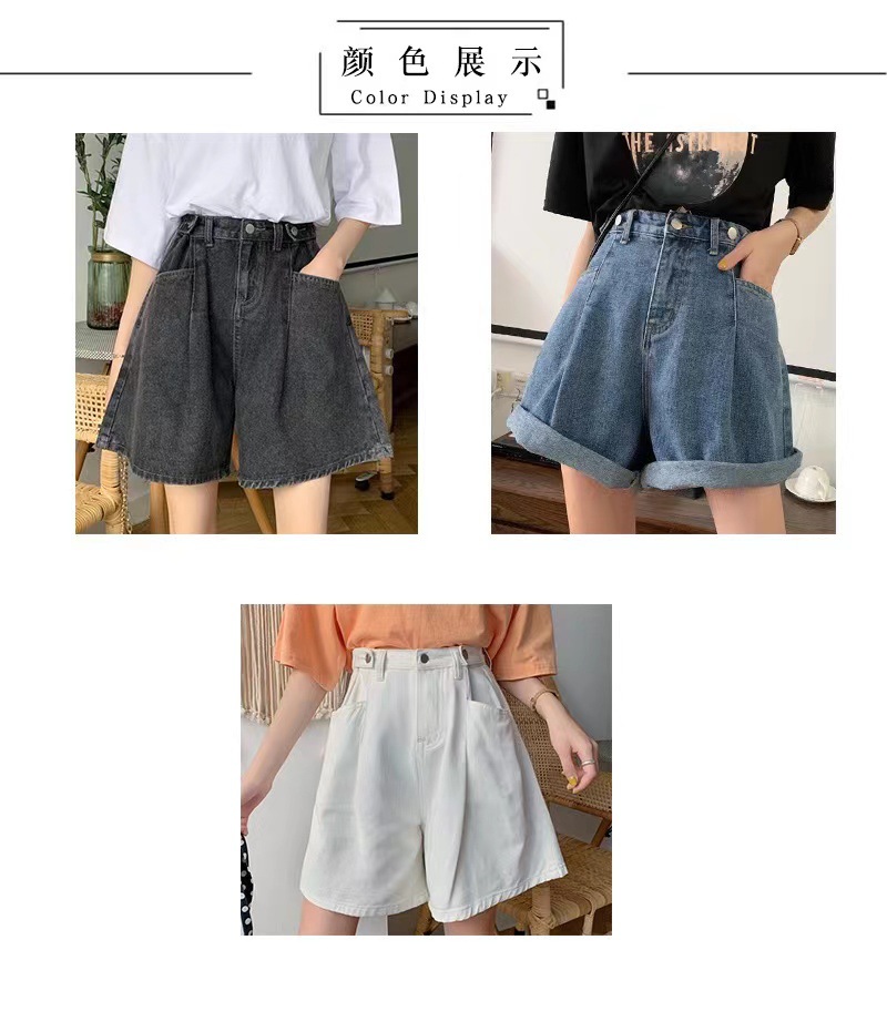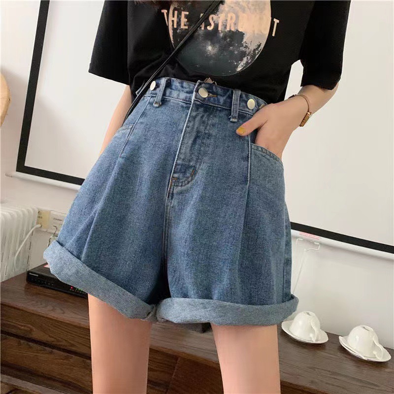 2025 년 여름 새로운 도착 플러스 사이즈 데님 반바지 여성용 넓은 다리 컬링 높은 허리 느슨한 슬리밍 A 자형 핫 팬츠 트렌디스토어 가기