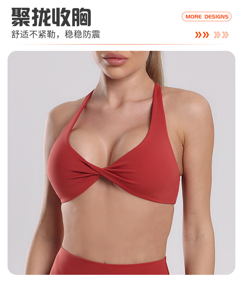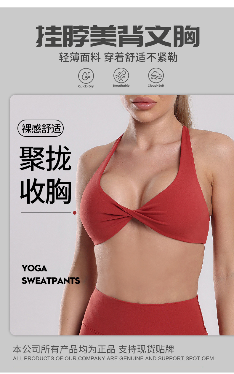 크로스 얇은 어깨 백리스 스포츠 속옷 여성용 알몸 목 벨트 가슴 패드 국경 간 요가 조끼 타이트한 브래지어