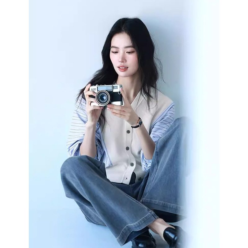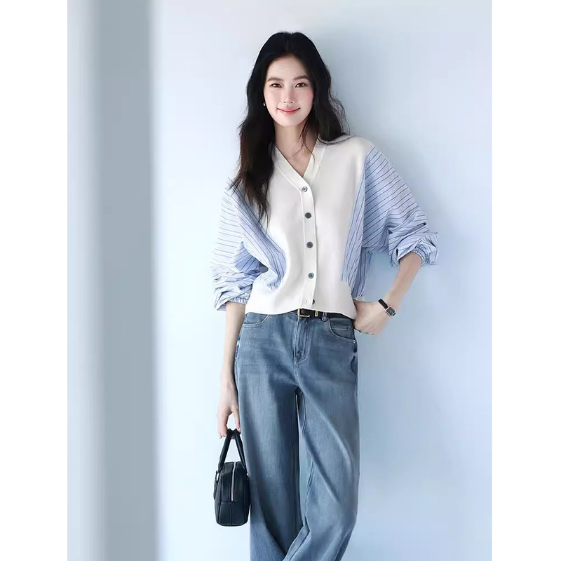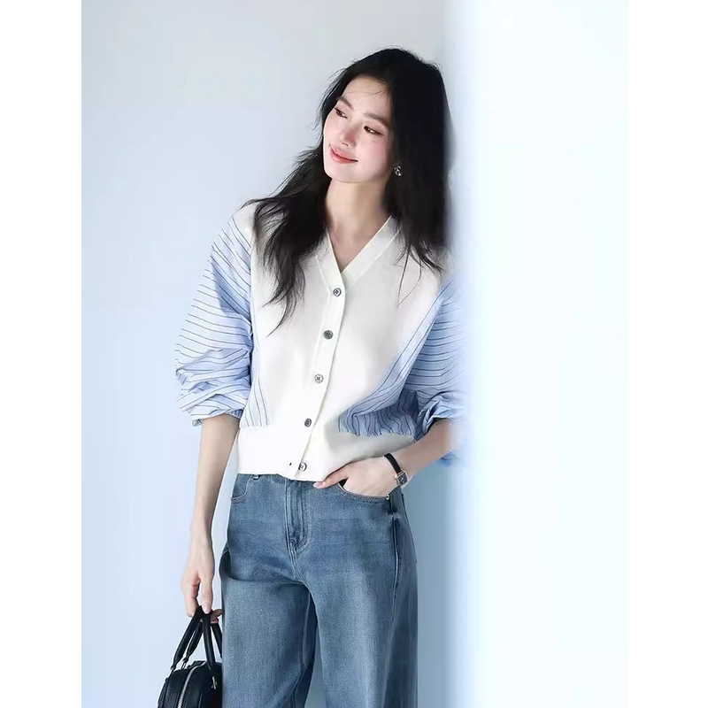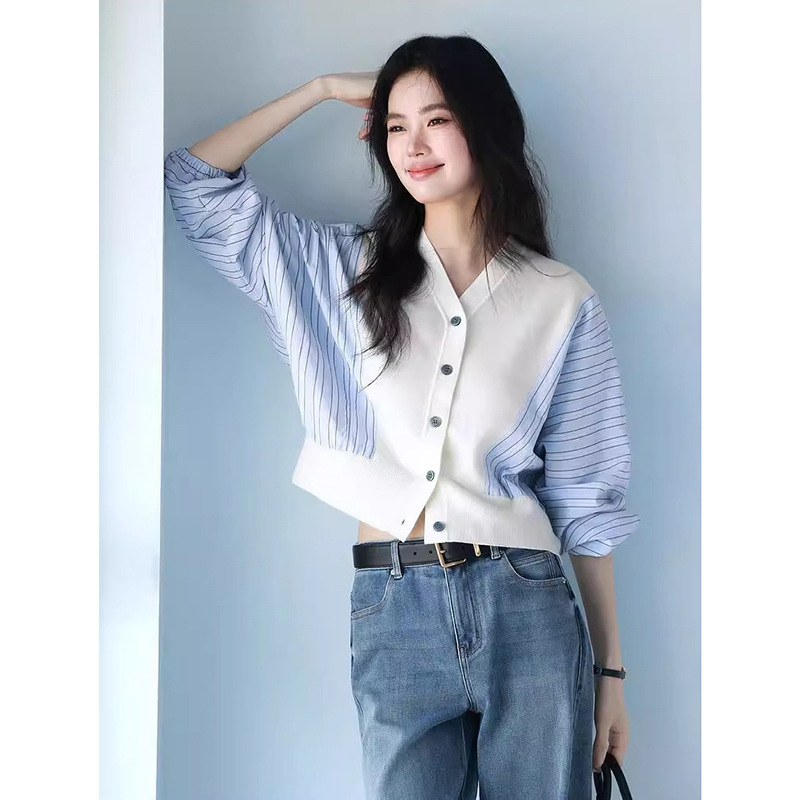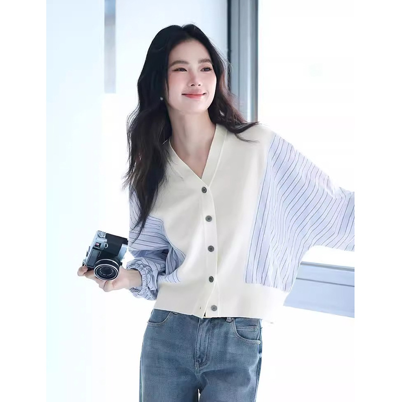 V-넥 스티칭 디자인 슬림 니트 카디건 2025 봄 새로운 명암 캐주얼 올 매치 스웨터 1G2930931스토어 가기