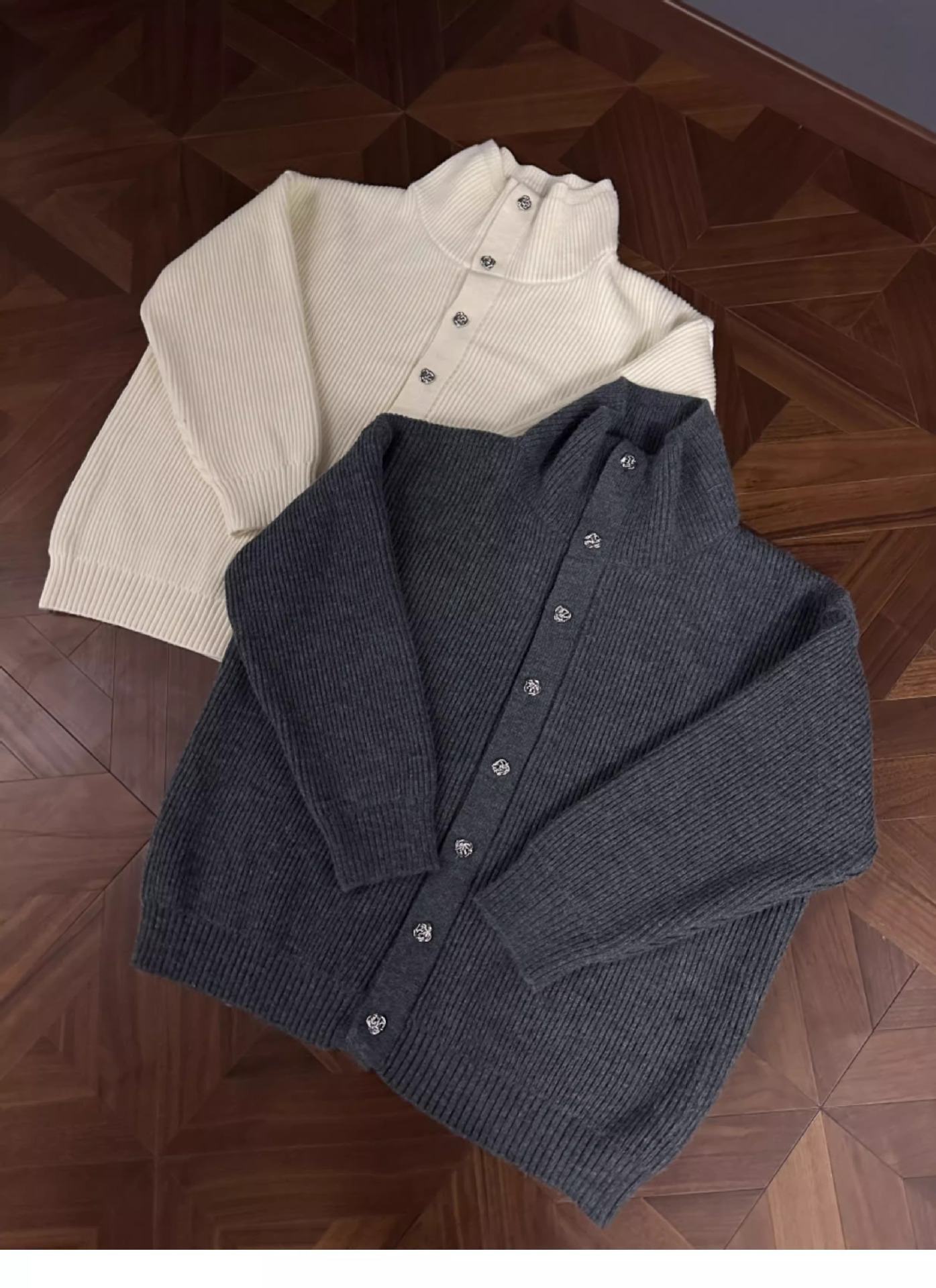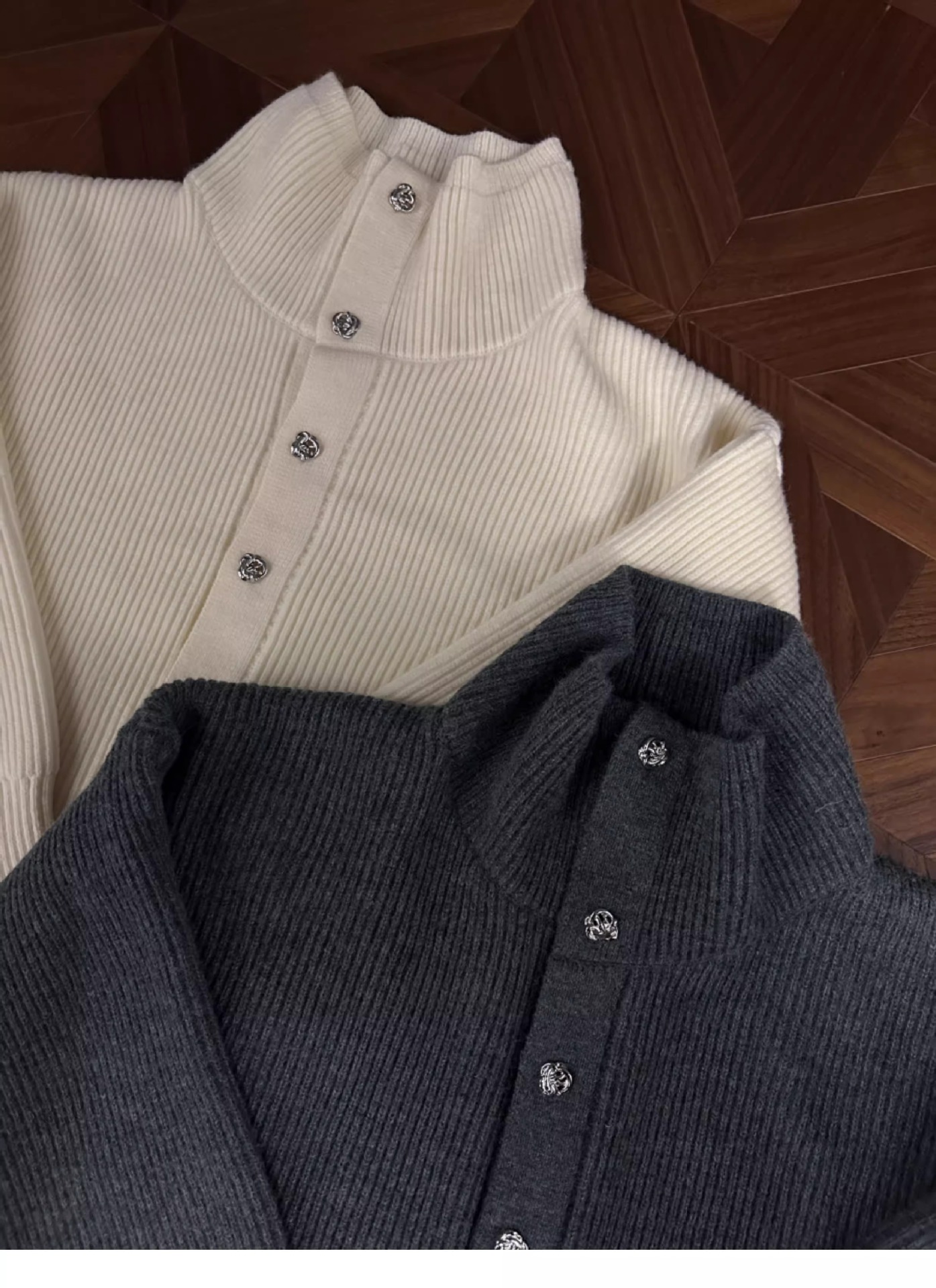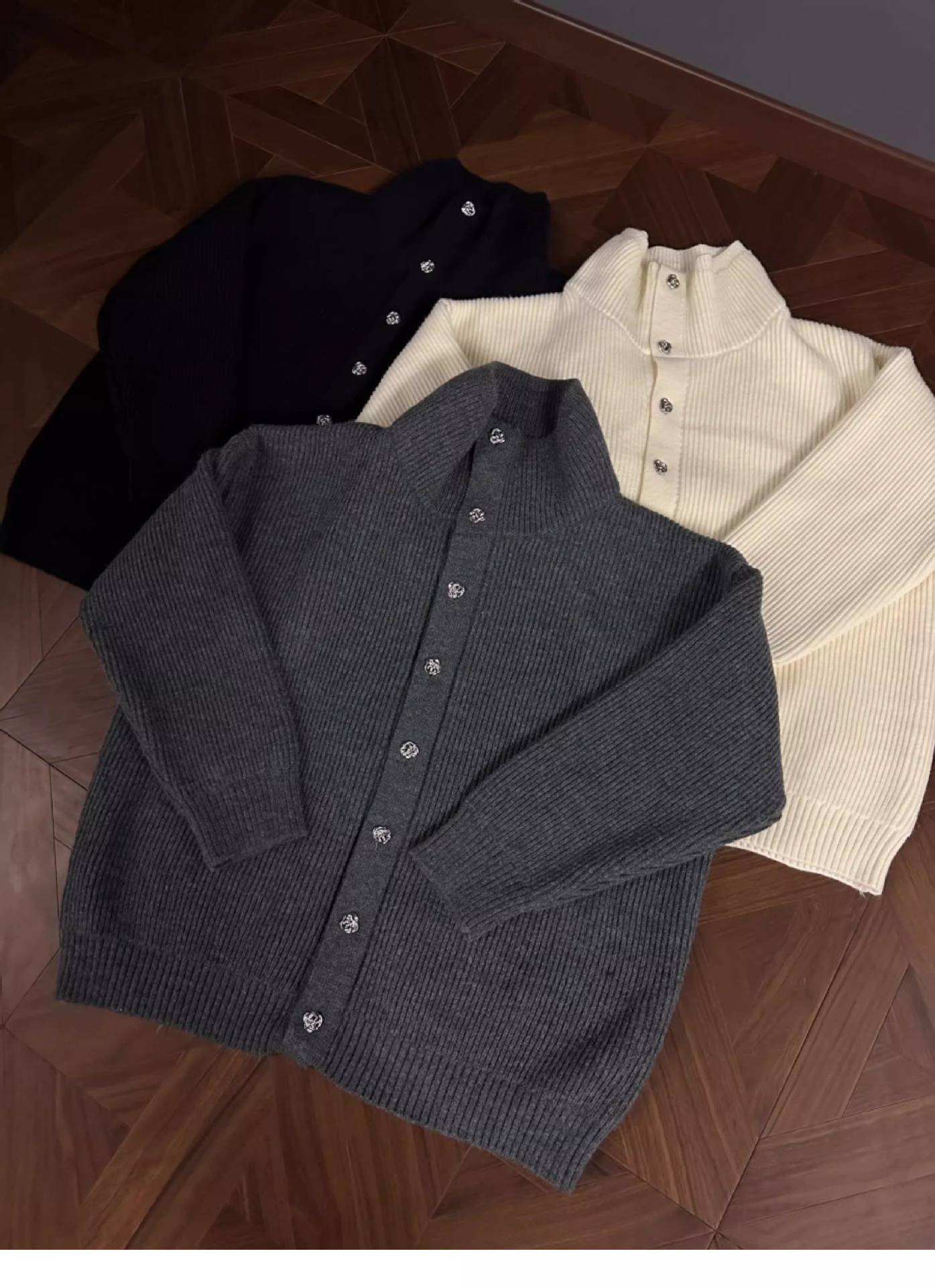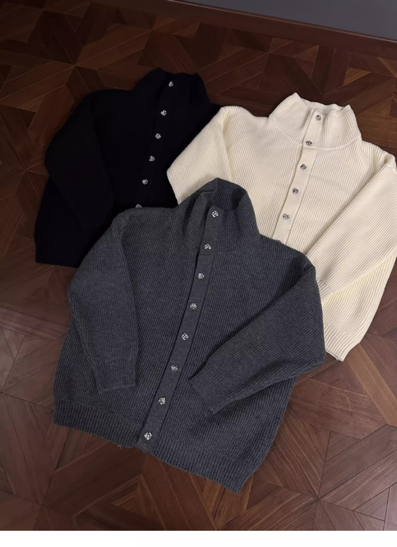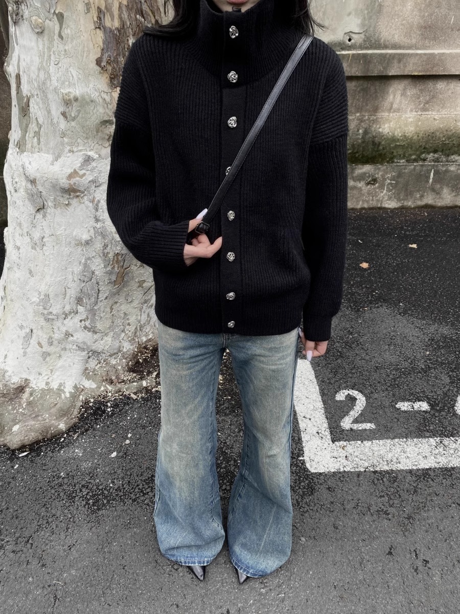 RTIMFD 삼색 터틀넥 로즈 버튼 카디건 스웨터 클렌핏 느슨한 마일러 스웨터스토어 가기