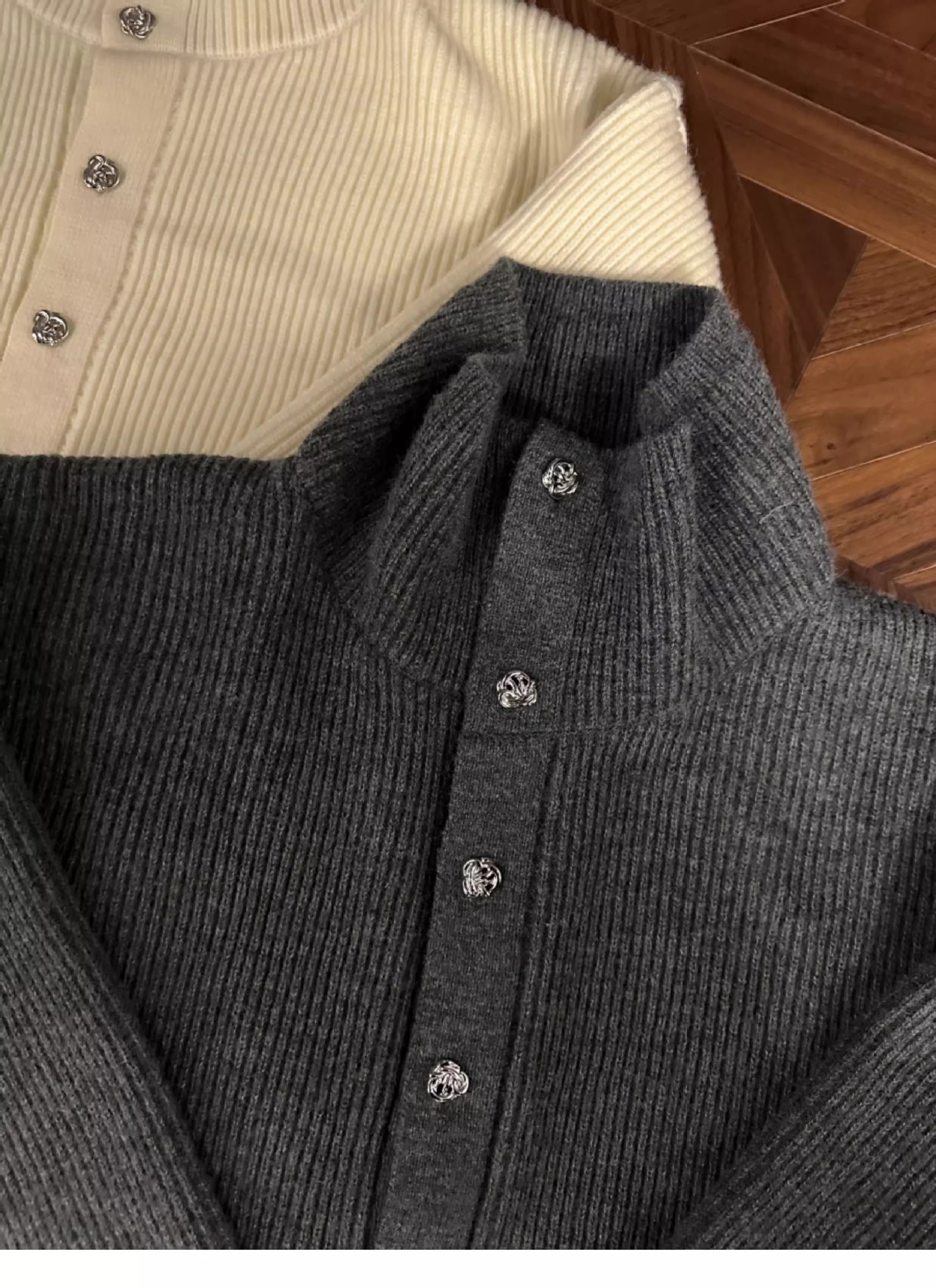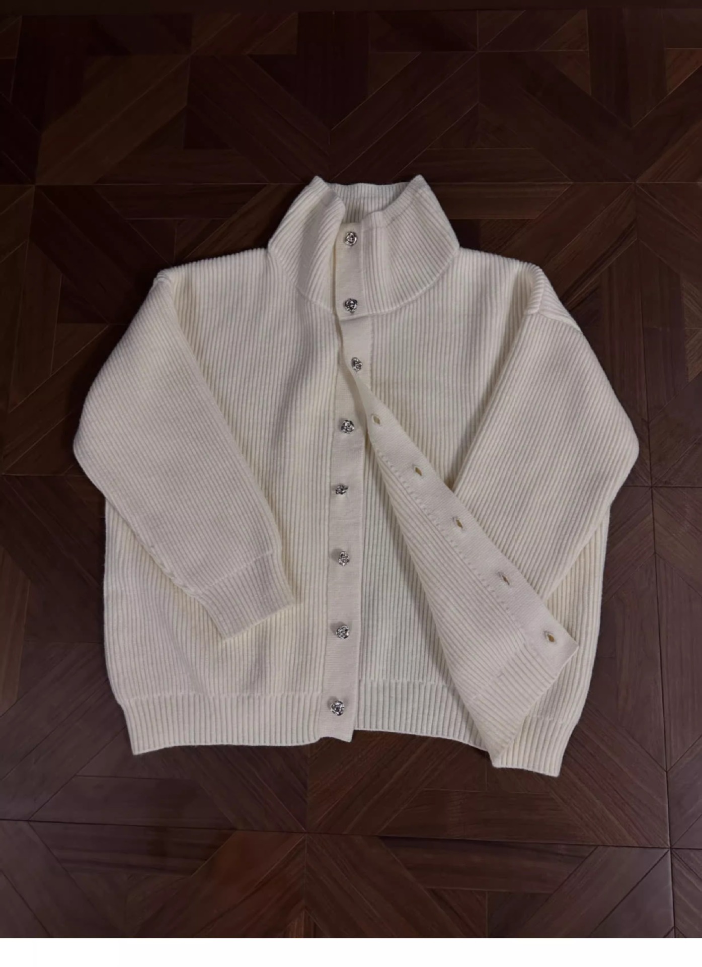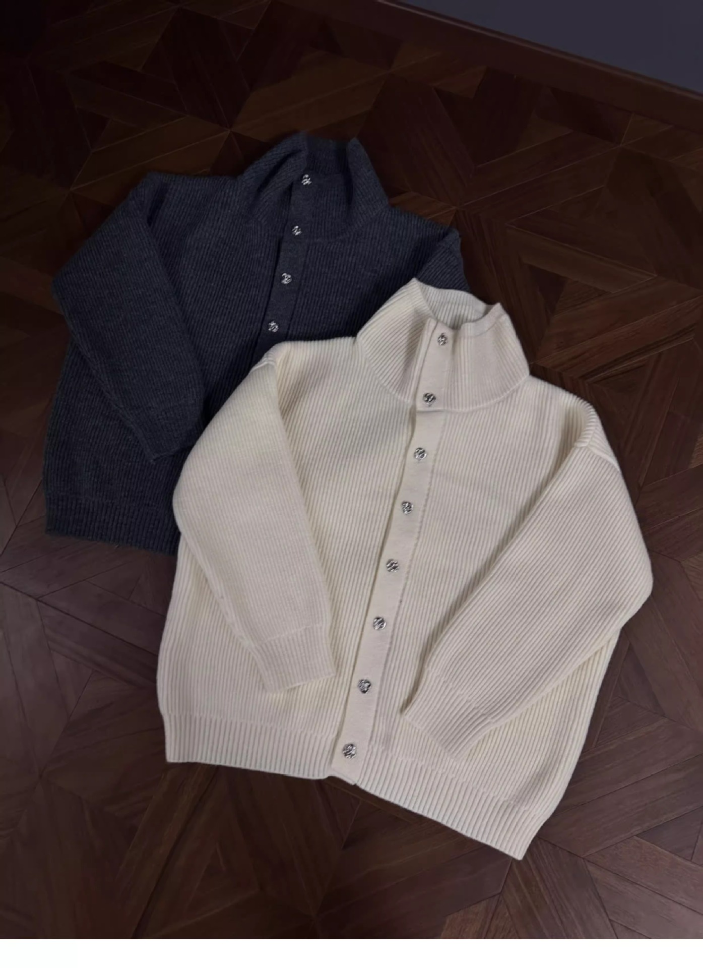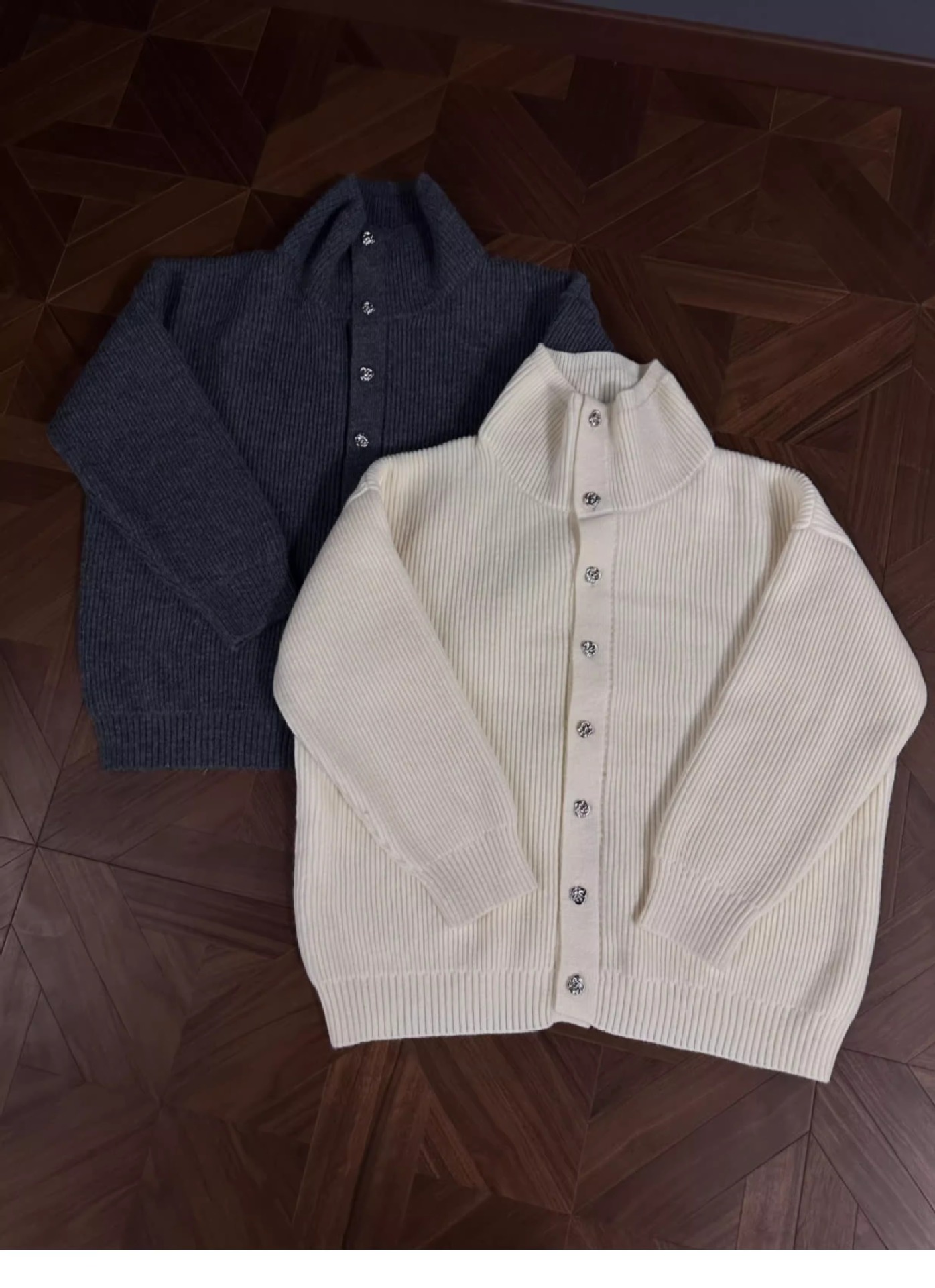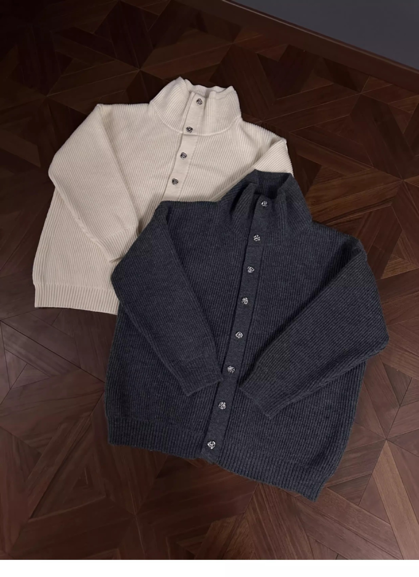 RTIMFD 삼색 터틀넥 로즈 버튼 카디건 스웨터 클렌핏 느슨한 마일러 스웨터스토어 가기