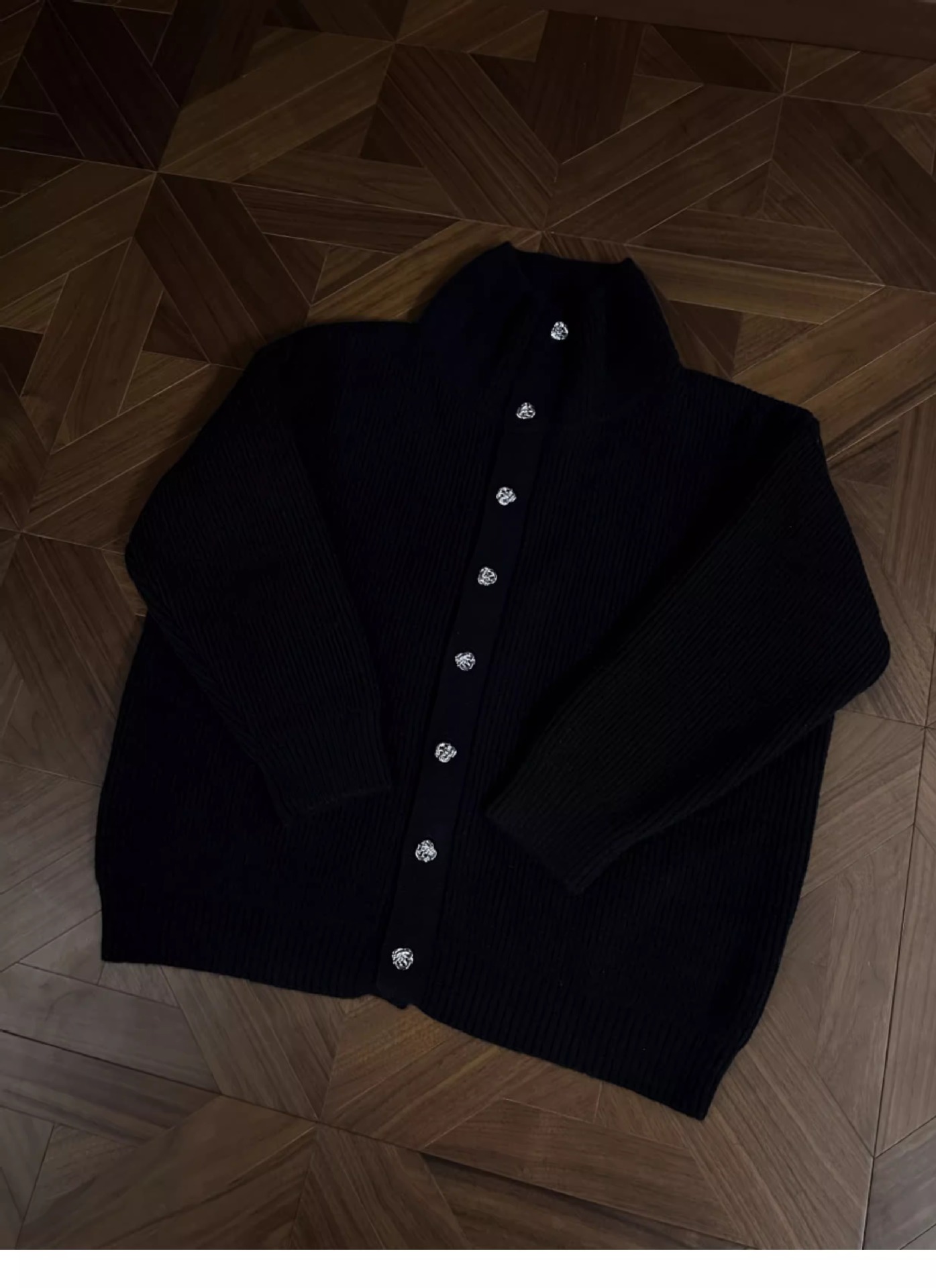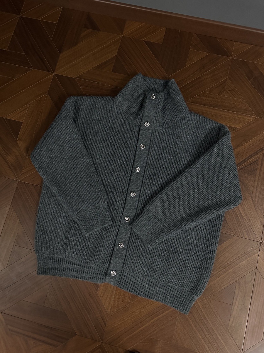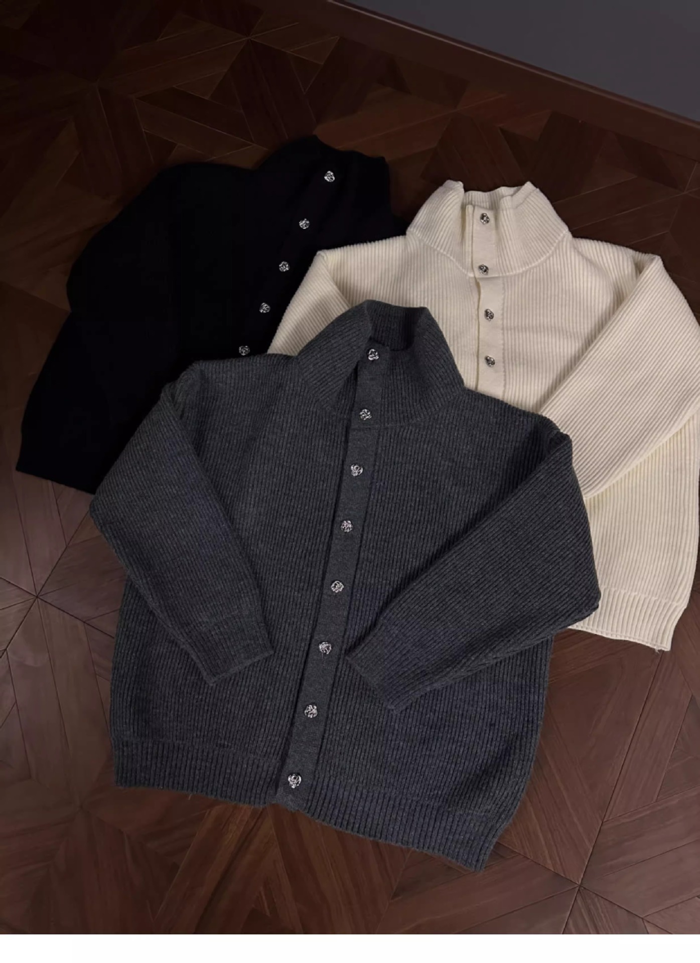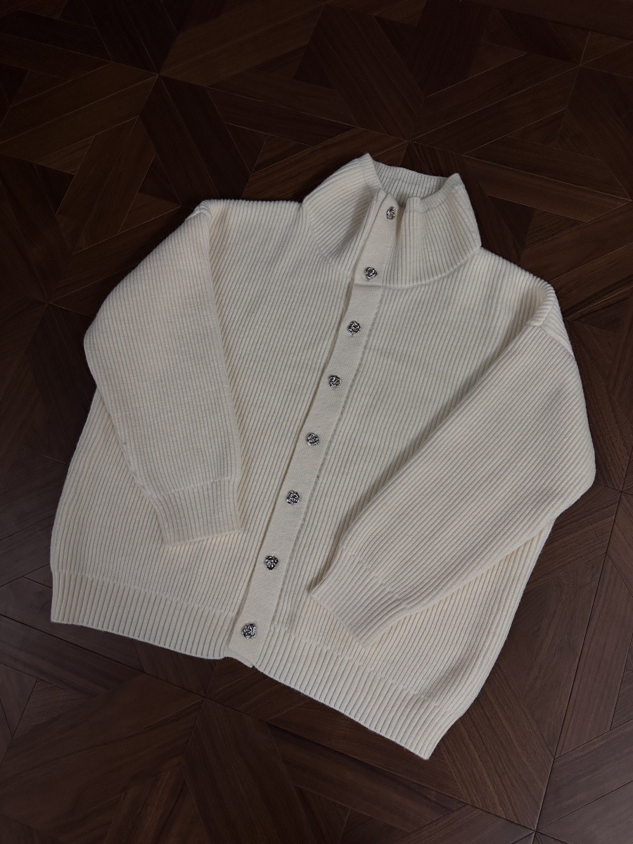 RTIMFD 삼색 터틀넥 로즈 버튼 카디건 스웨터 클렌핏 느슨한 마일러 스웨터