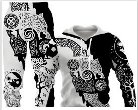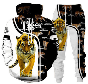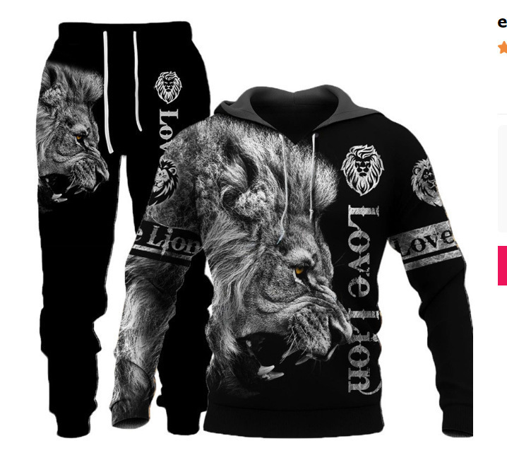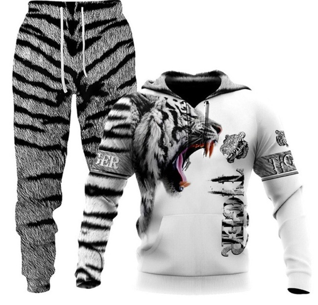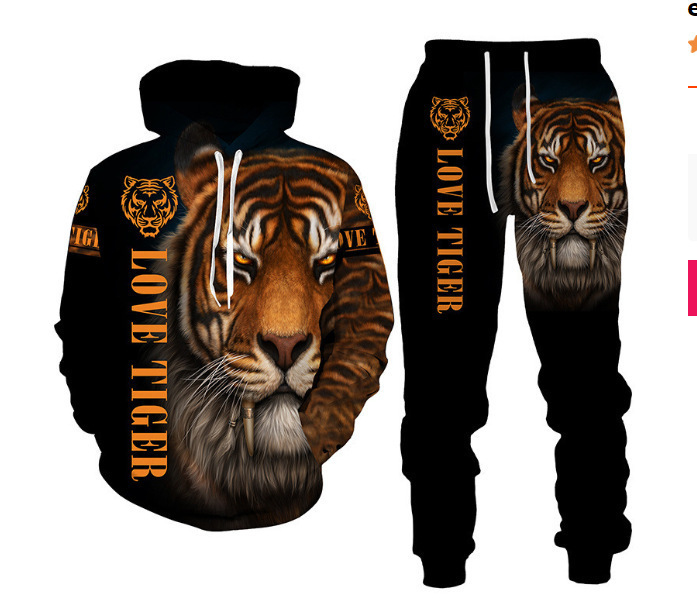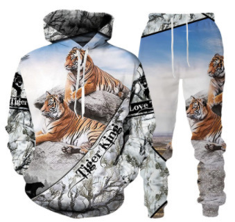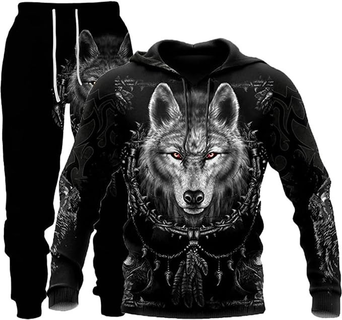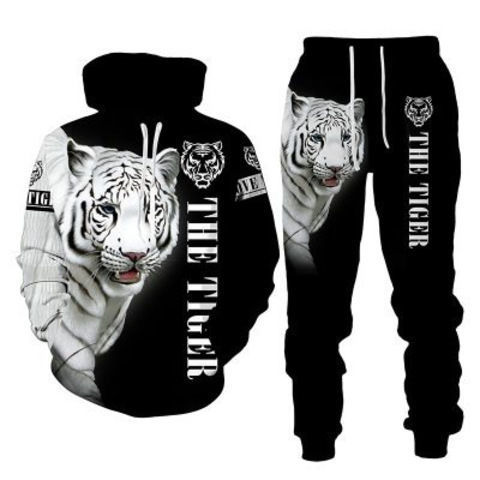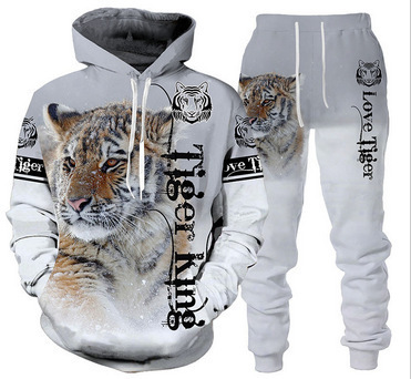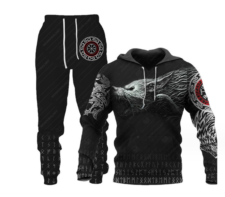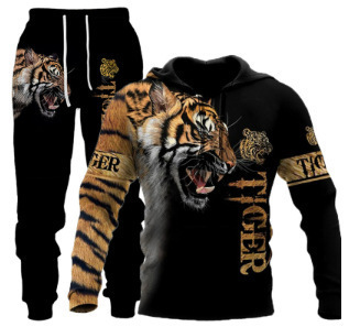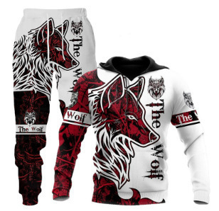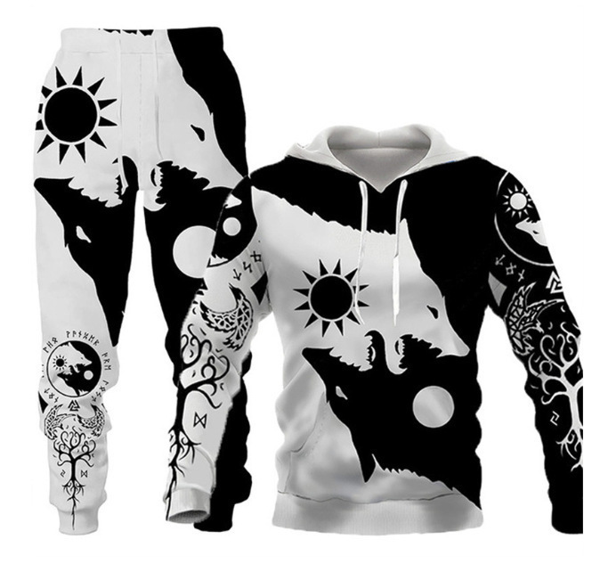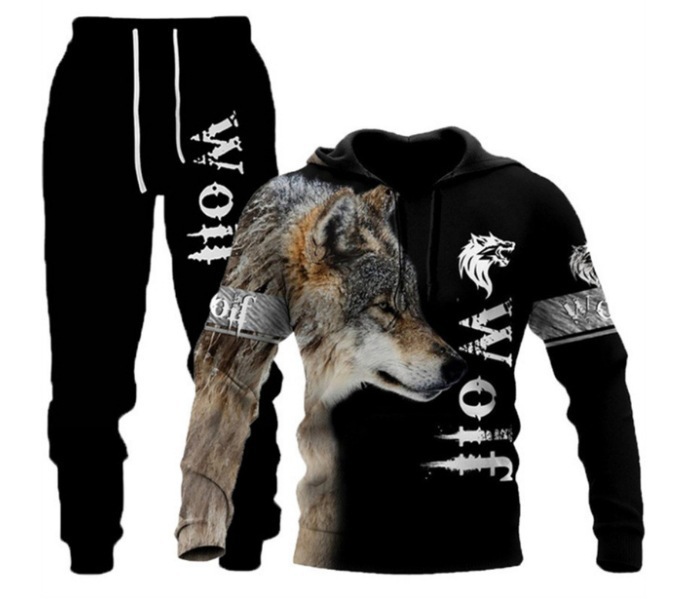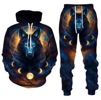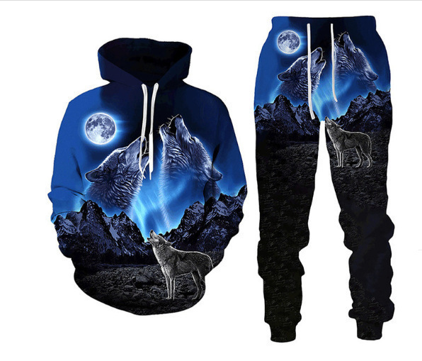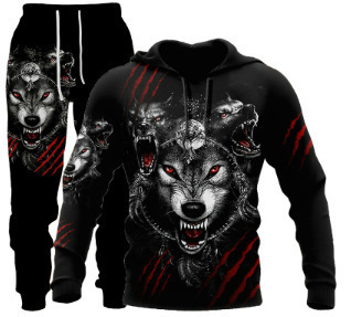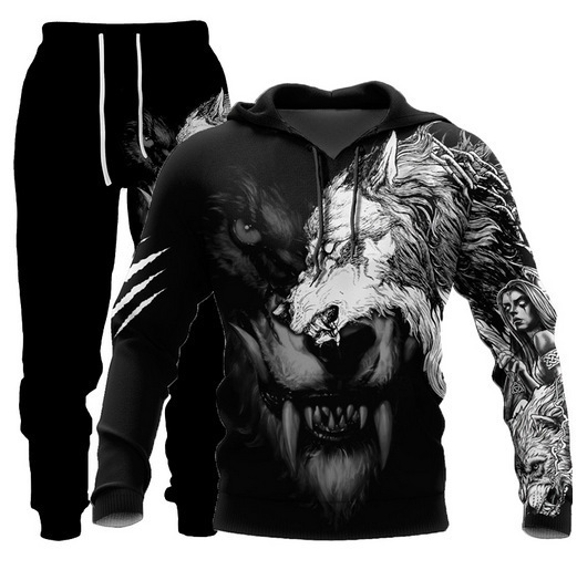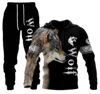 국경 간 의류 새로운 동물 늑대 3D 인쇄 후드 스웨터 바지 세트 봄과 가을 남성 세트 디자인