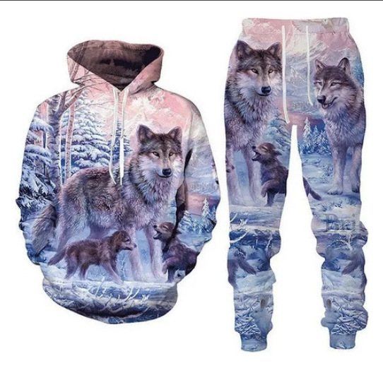 국경 간 의류 새로운 동물 늑대 3D 인쇄 후드 스웨터 바지 세트 봄과 가을 남성 세트 디자인스토어 가기