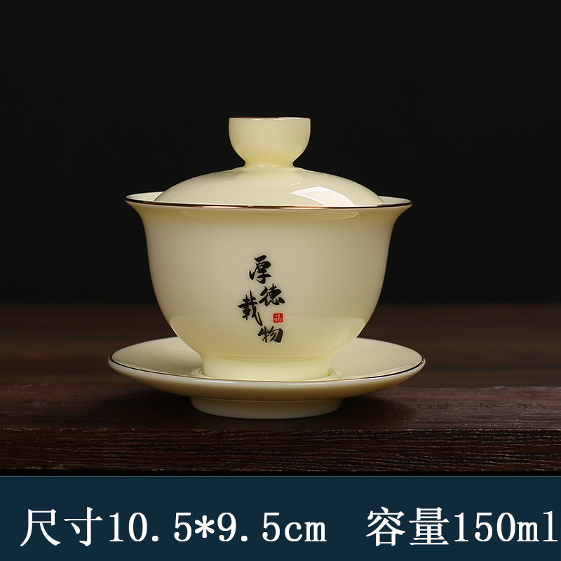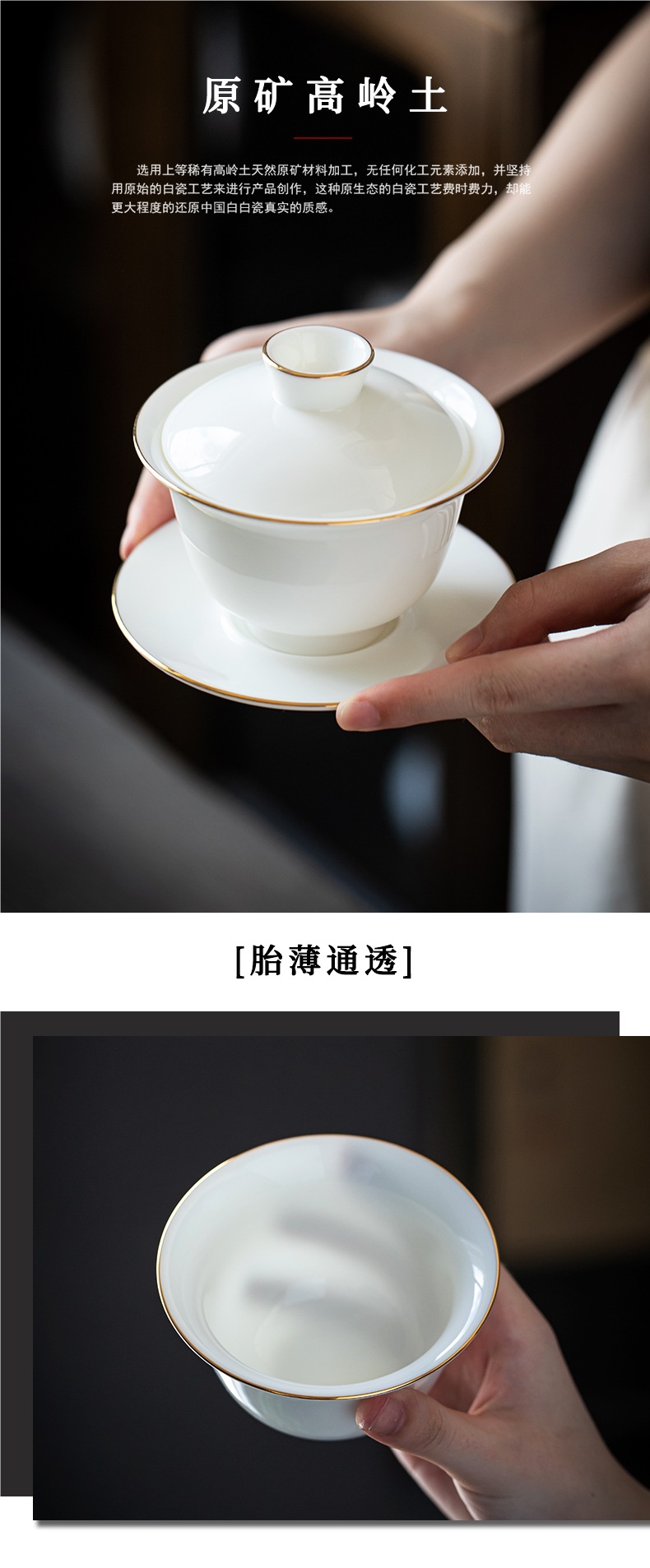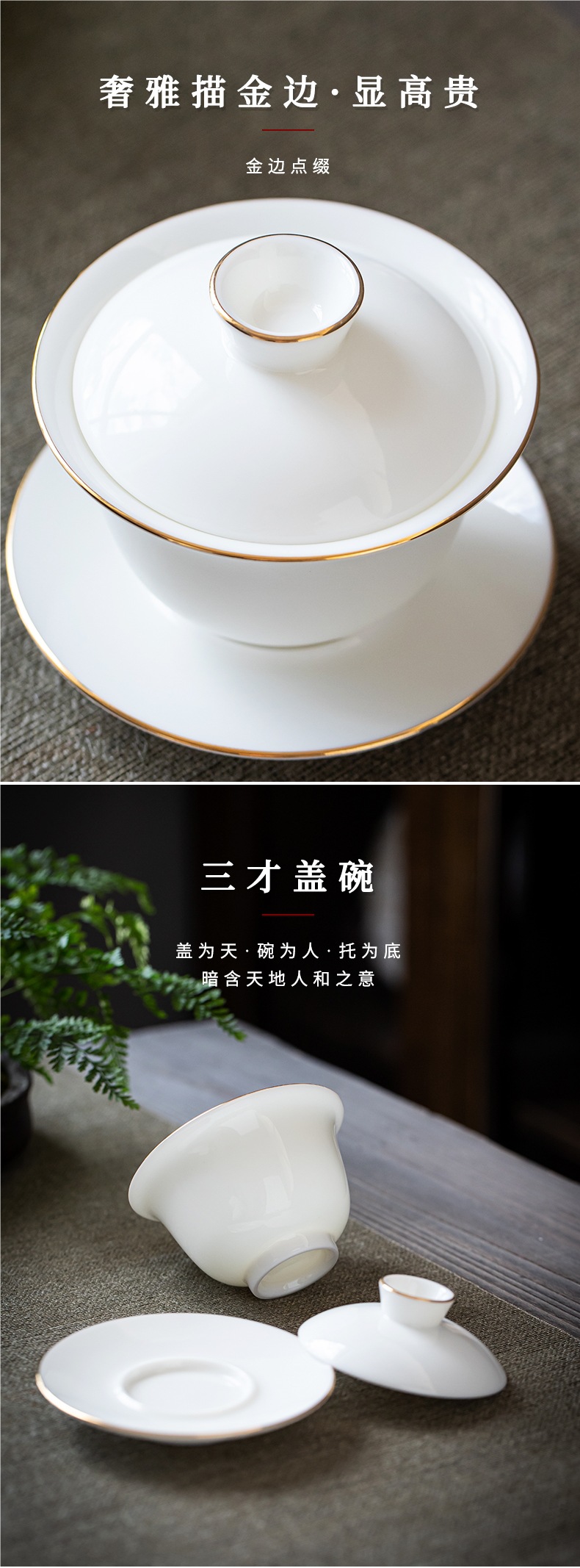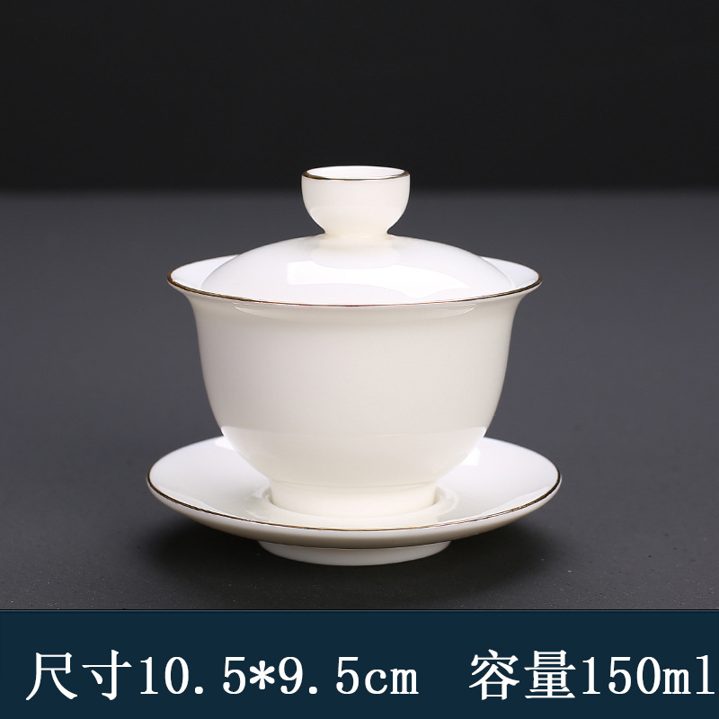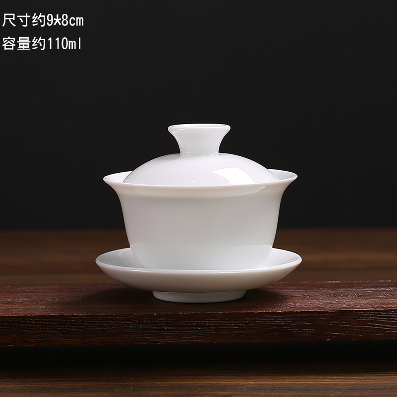 티 보울 매트 제이드 커버 보울 티 컵 세라믹 싱글 대형 쿵푸 3 인재 보울 화이트 도자기 차 그릇 차 세트