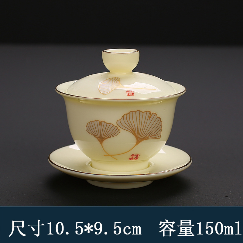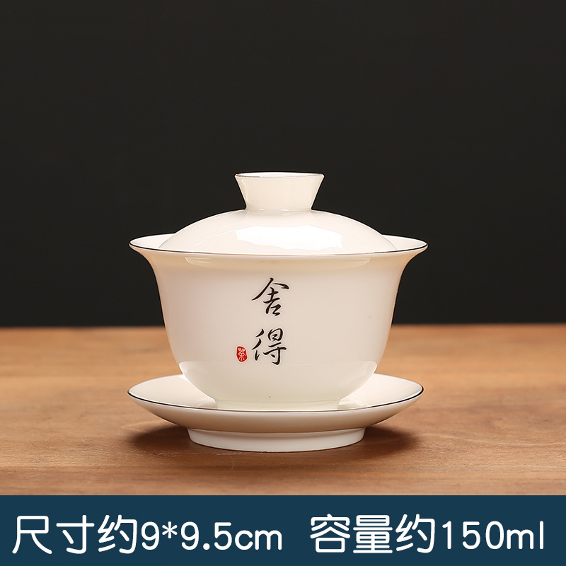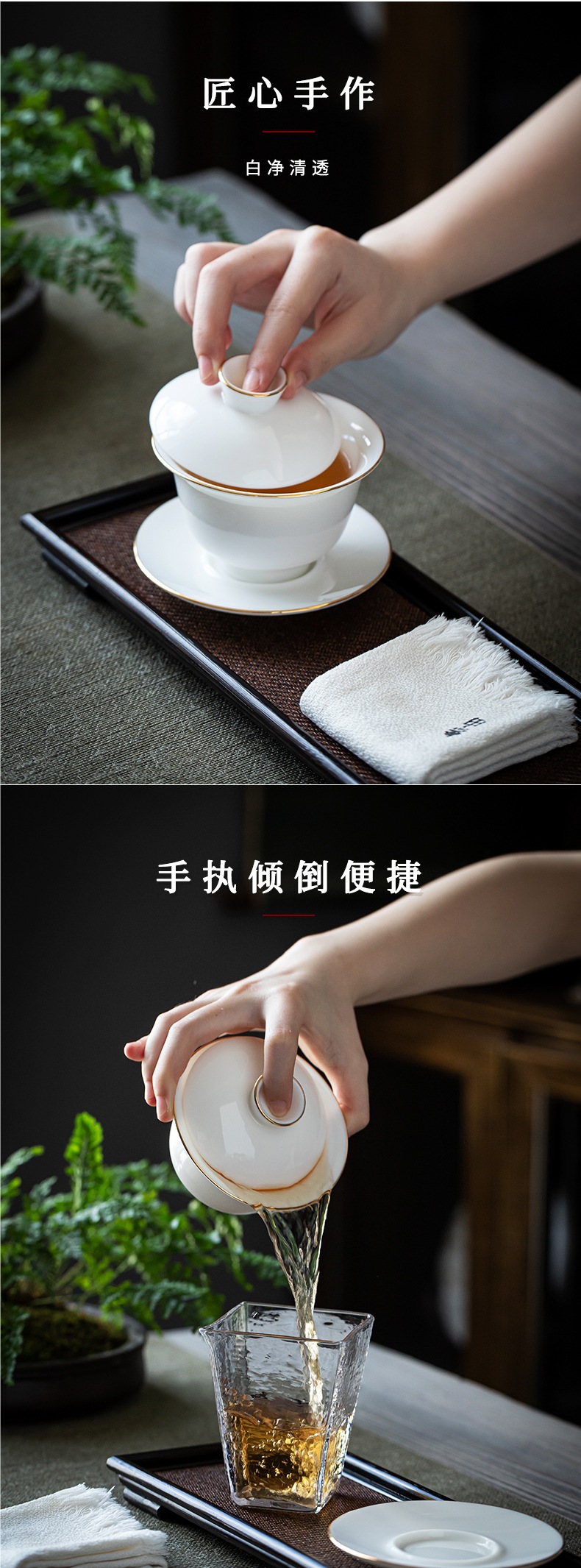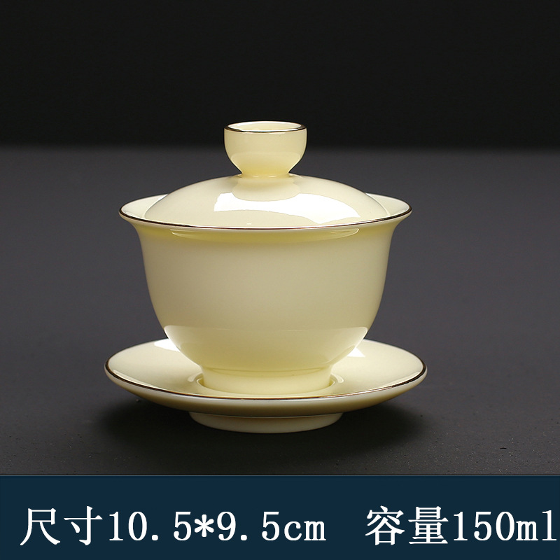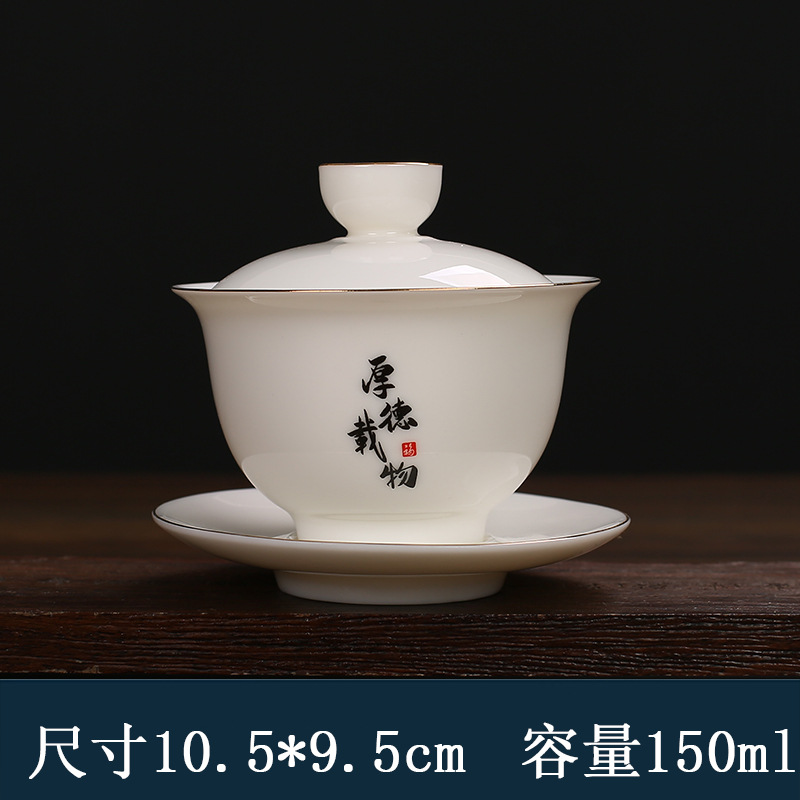 티 보울 매트 제이드 커버 보울 티 컵 세라믹 싱글 대형 쿵푸 3 인재 보울 화이트 도자기 차 그릇 차 세트