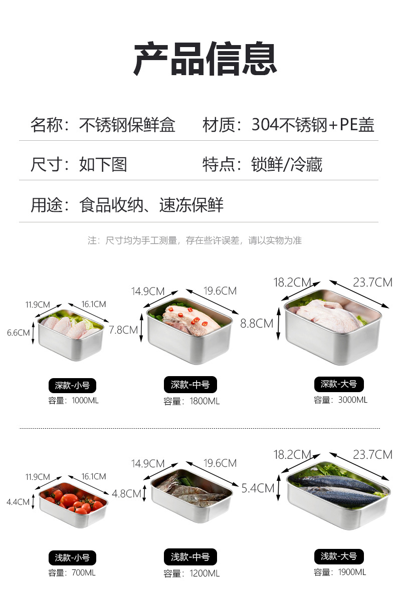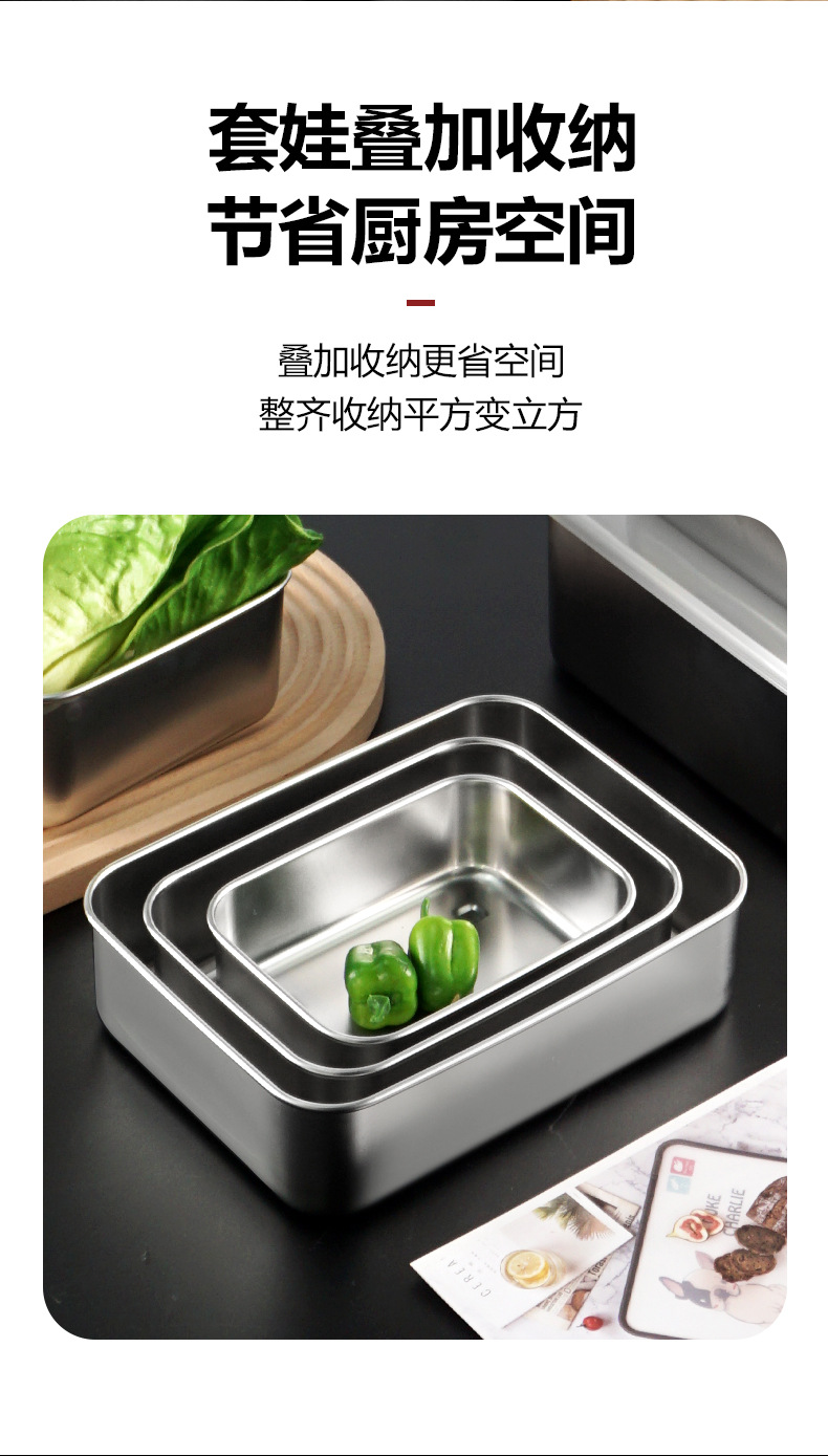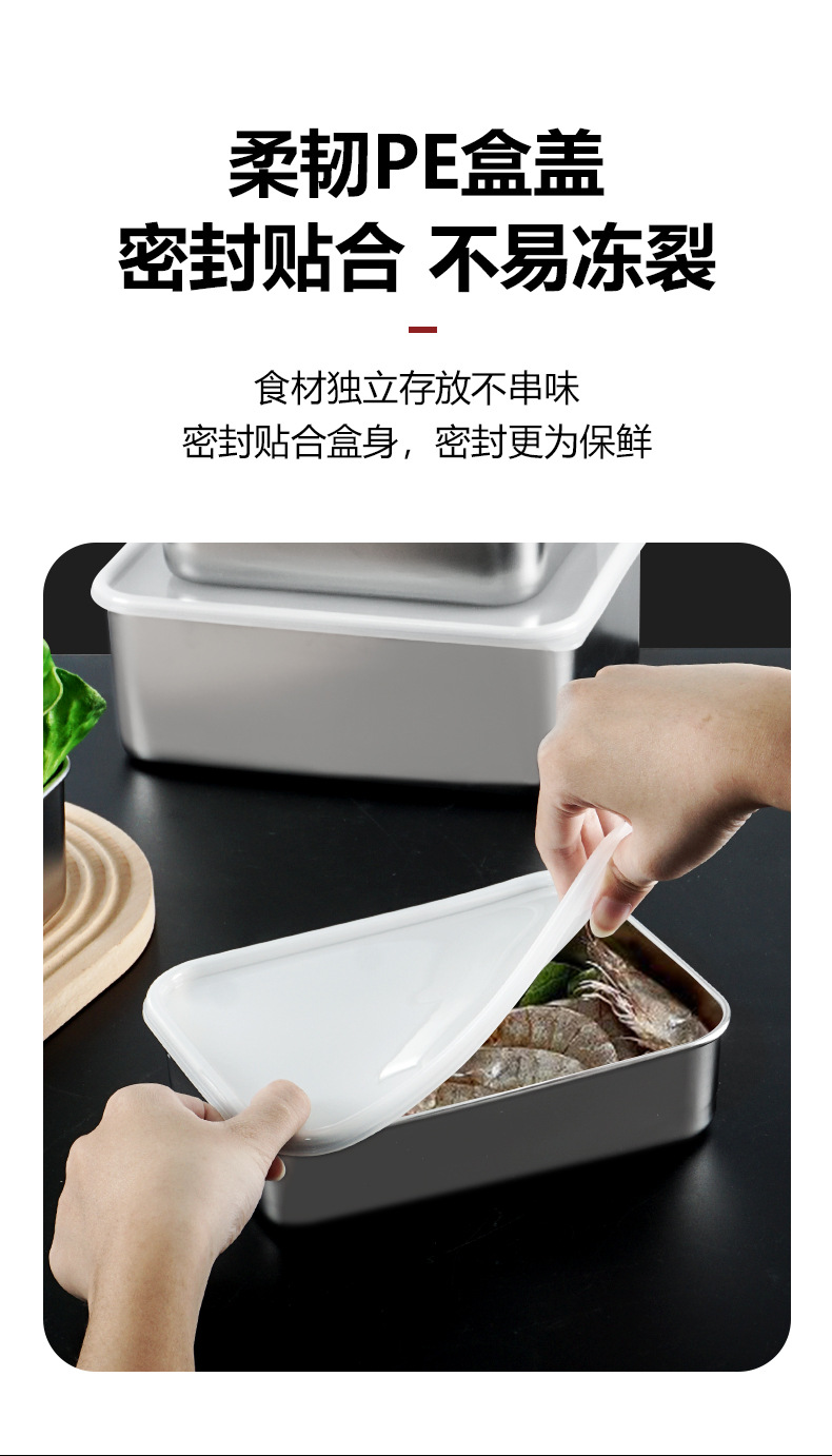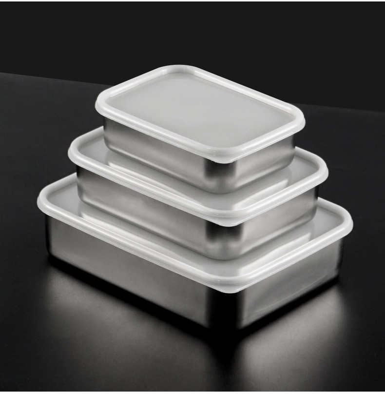 ✅304 스테인레스 스틸 신선한 보관 상자 냉장고 냉동고 샘플 상자 두꺼운 밀봉 된 사각형 포장 상자 뚜껑 식품스토어 가기