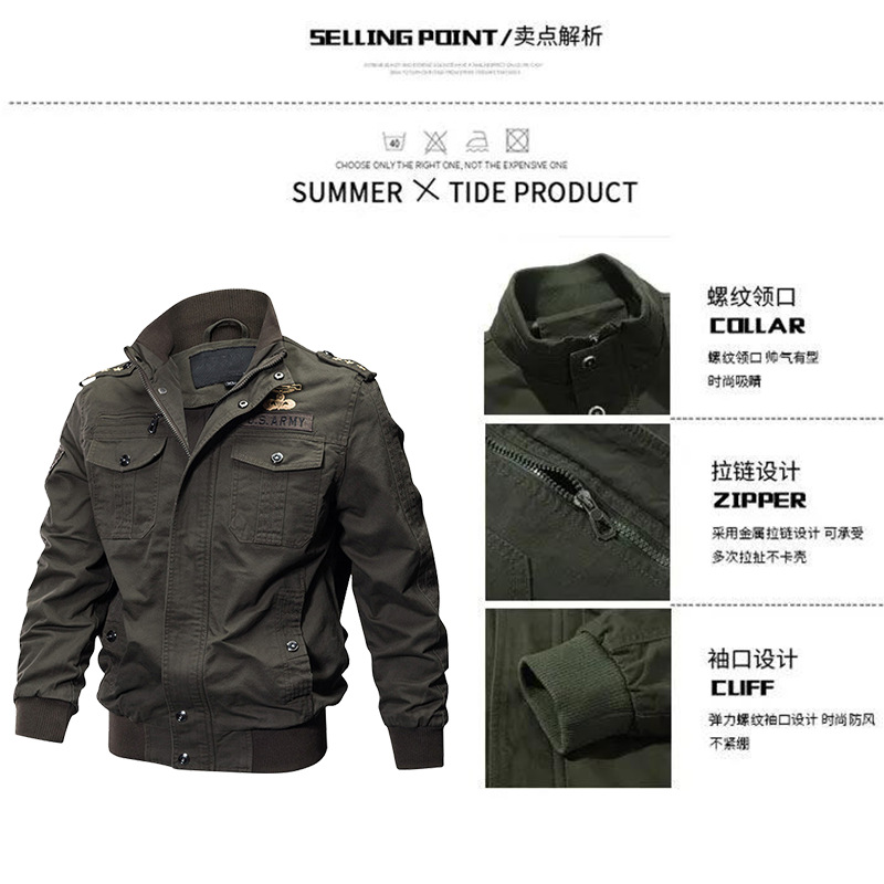 봄과 가을 남성 야외 멀티 포켓 군사 코트 코튼 캐주얼 간단한 작업 재킷 플러스 사이즈 느슨한 면화 국경