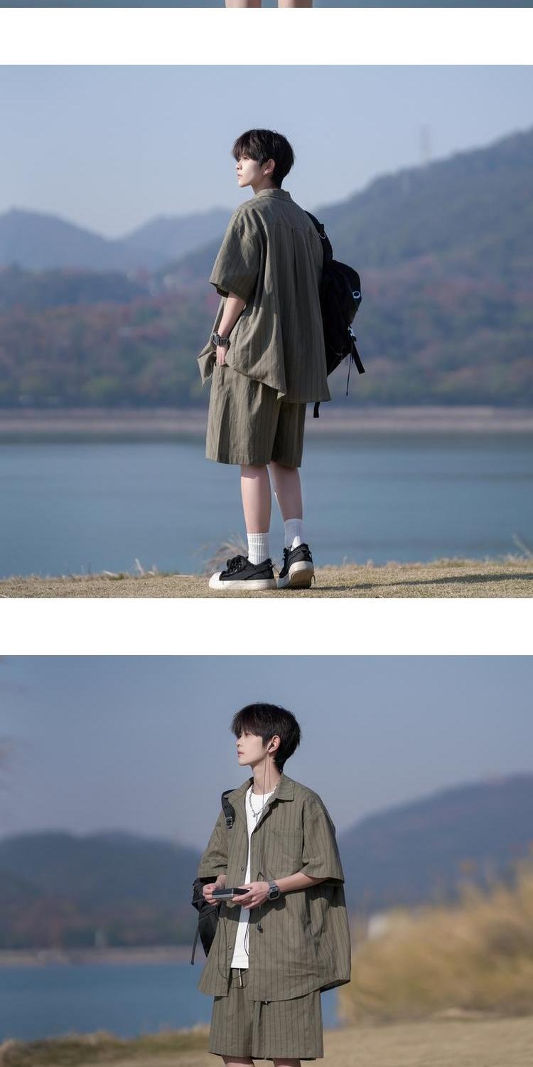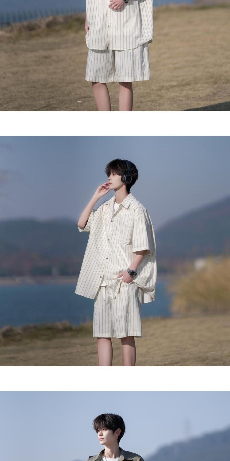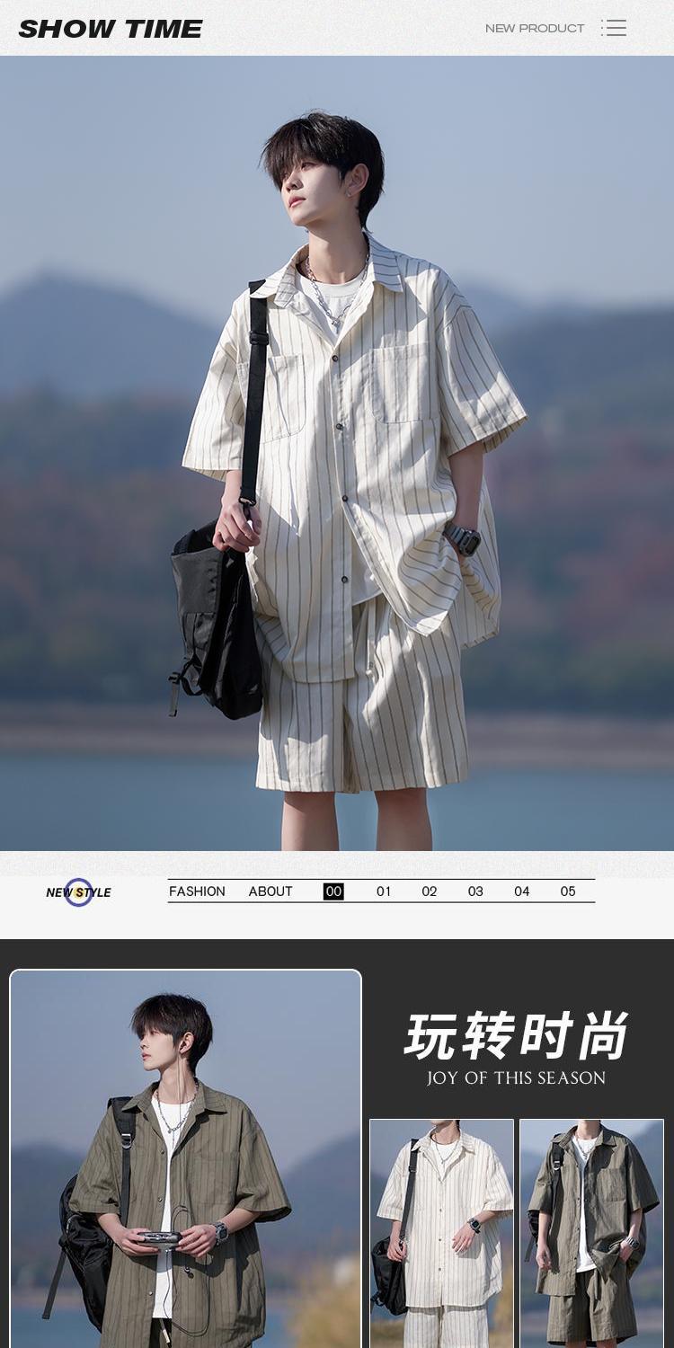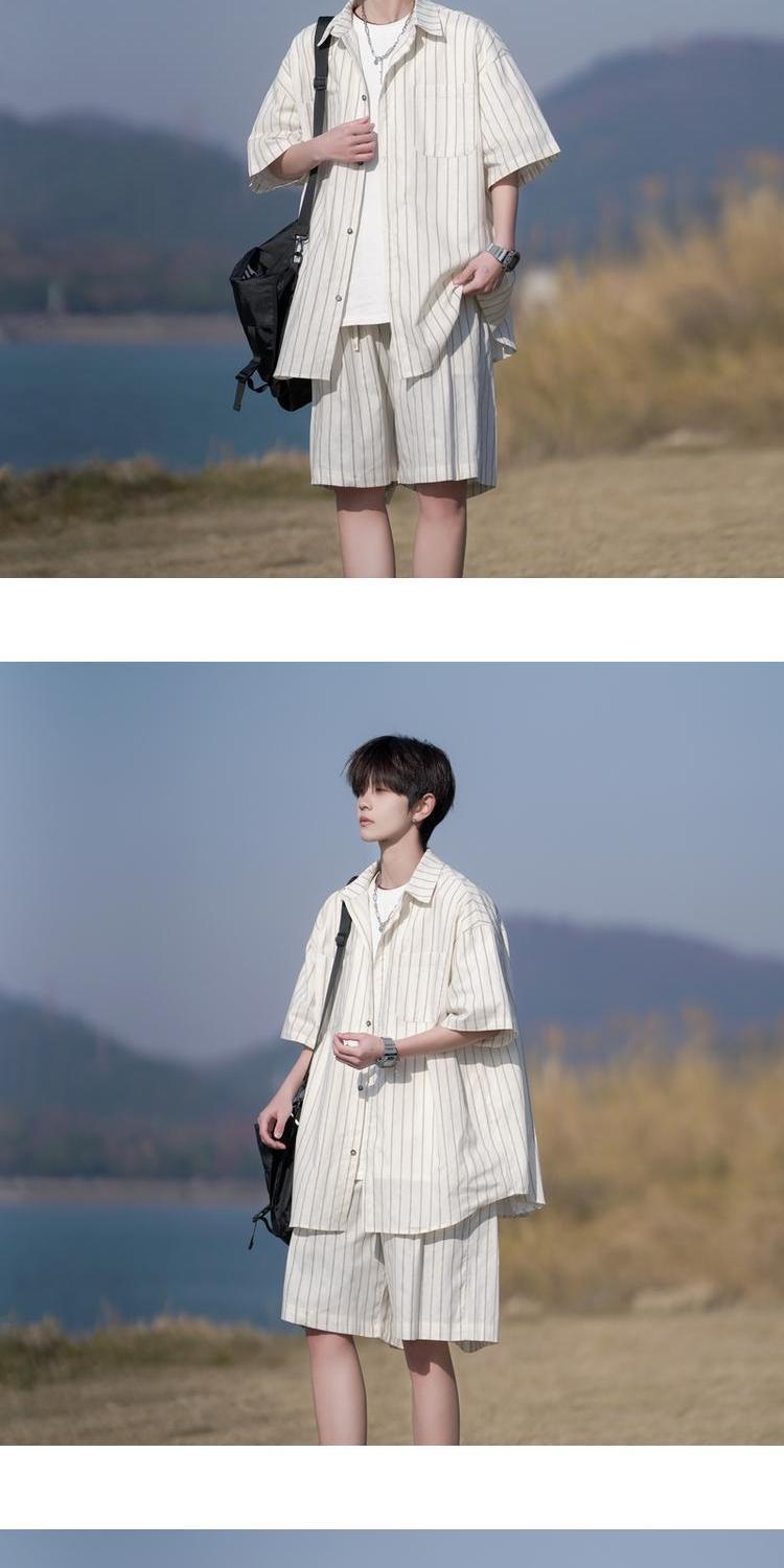 NASA 줄무늬 반팔 셔츠 남자의 여름 2025 느슨한 캐주얼 일본 도시 십대 투피스 세트