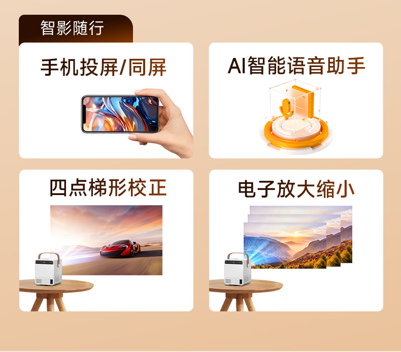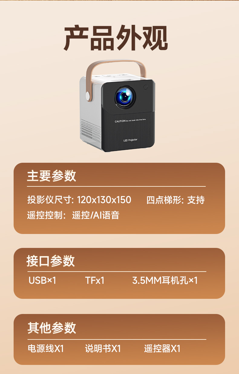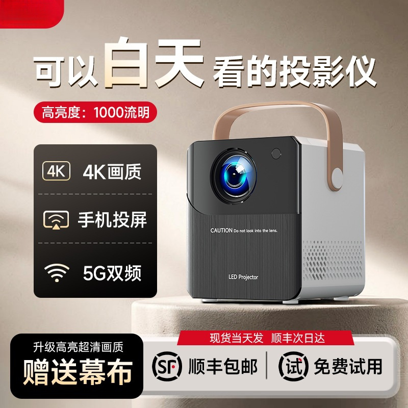 4K 새로운 [천 위안 구성] 2024 프로젝터 홈 벽 명확한 침실 거실 미니 휴대용 홈 그림자스토어 가기