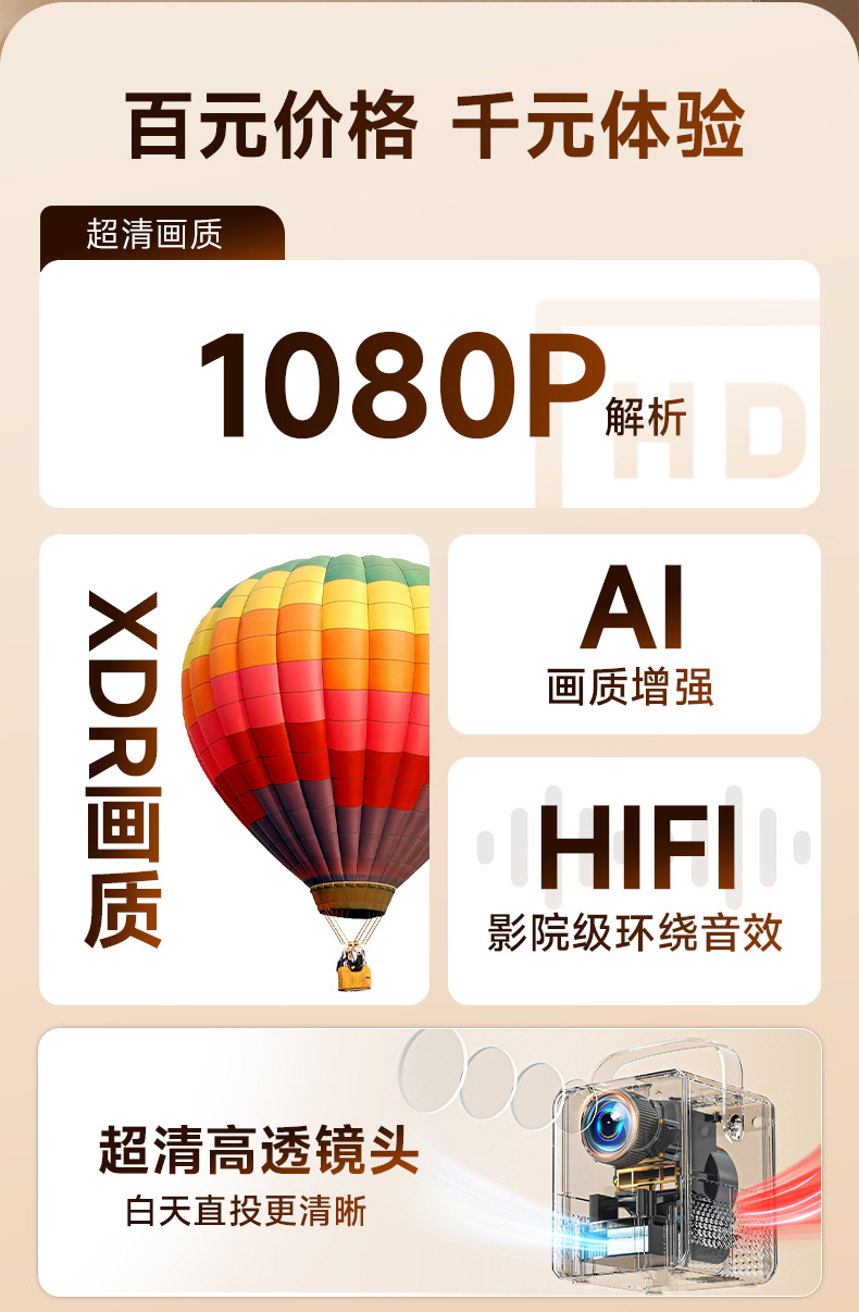 4K 새로운 [천 위안 구성] 2024 프로젝터 홈 벽 명확한 침실 거실 미니 휴대용 홈 그림자