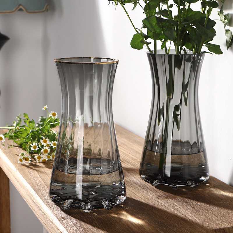 가벼운 고급 간단한 원색 유리 꽃병 투명 물 꽃 백합 인기있는 거실 꽃꽂이 장식품 도매 대외 무역