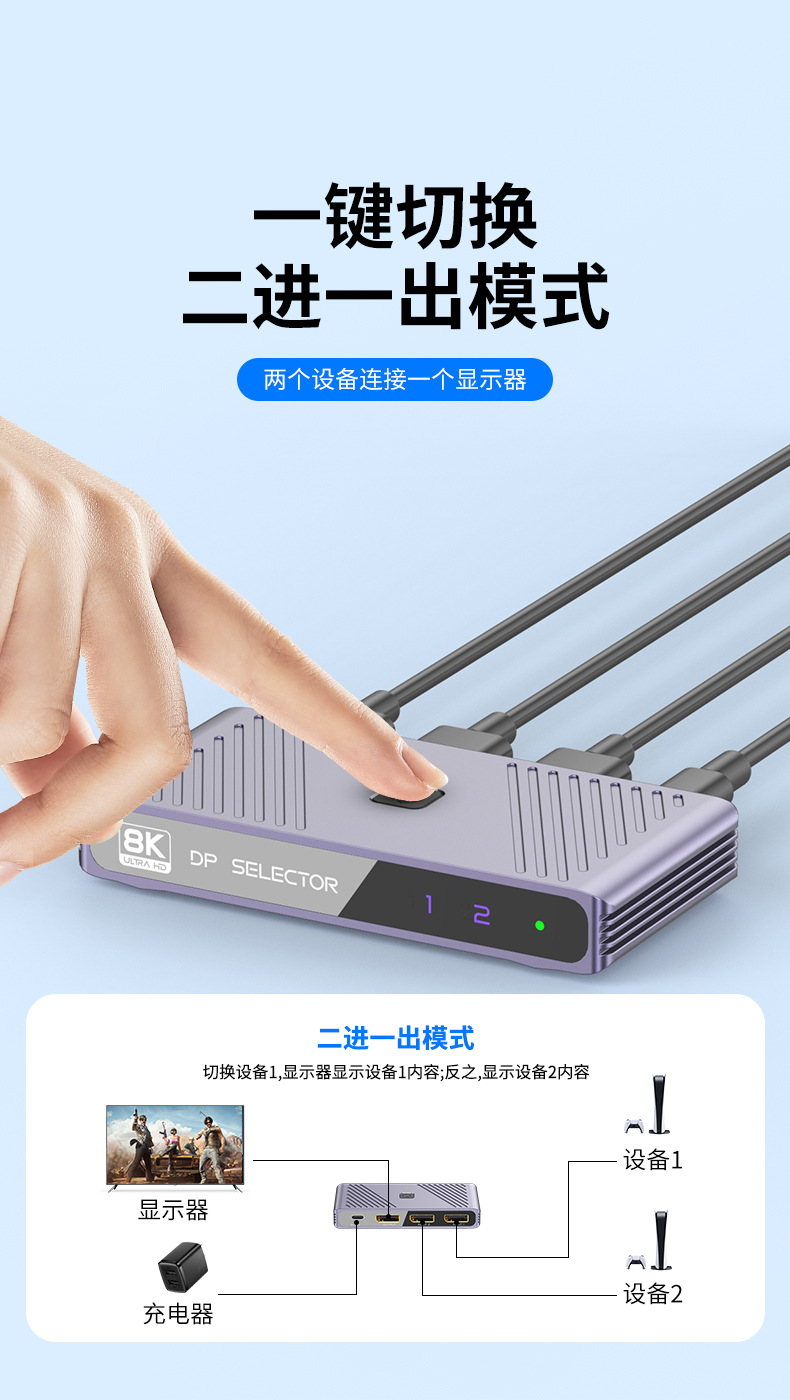 공장 도매 DP1.4 스위처 8K60Hz 4K 144 160Hz HD 컴퓨터 PS5 디스플레이 컨버터스토어 가기