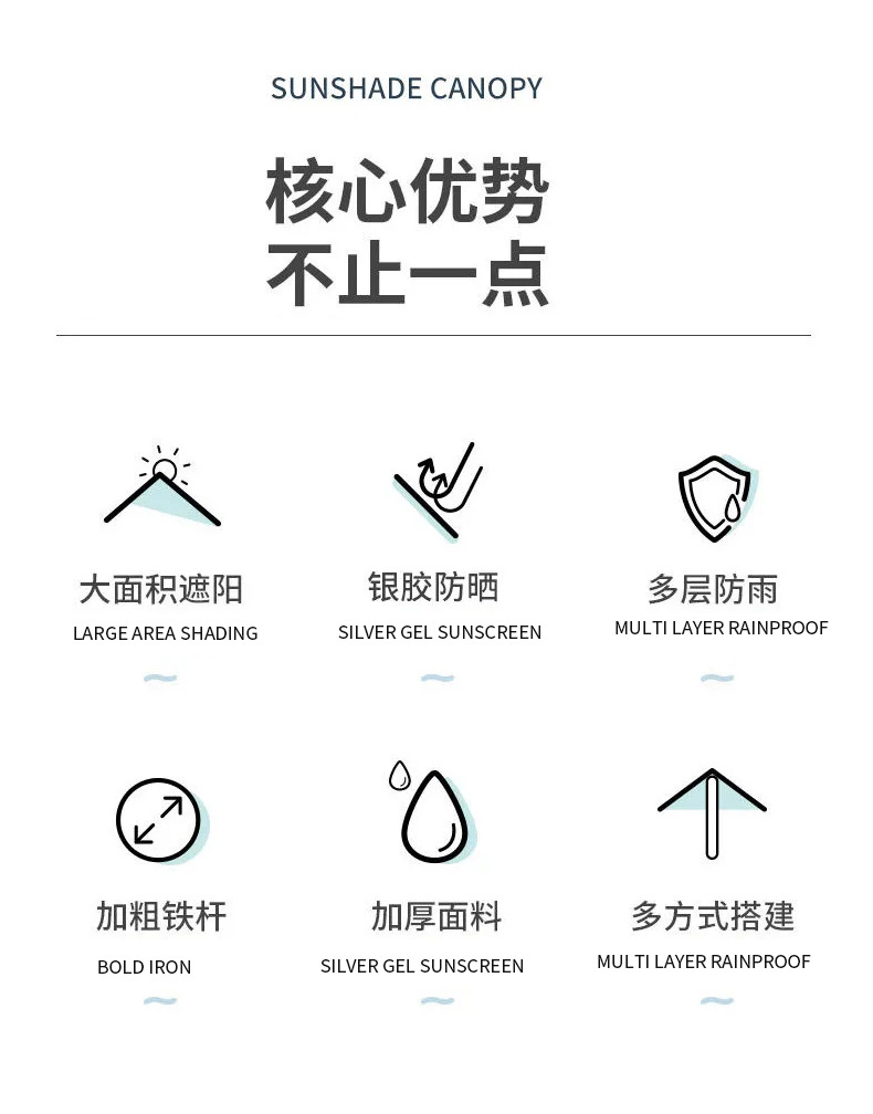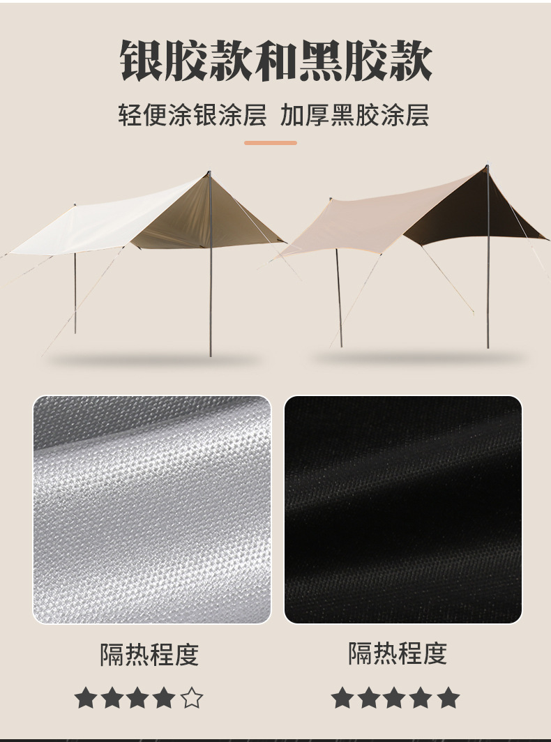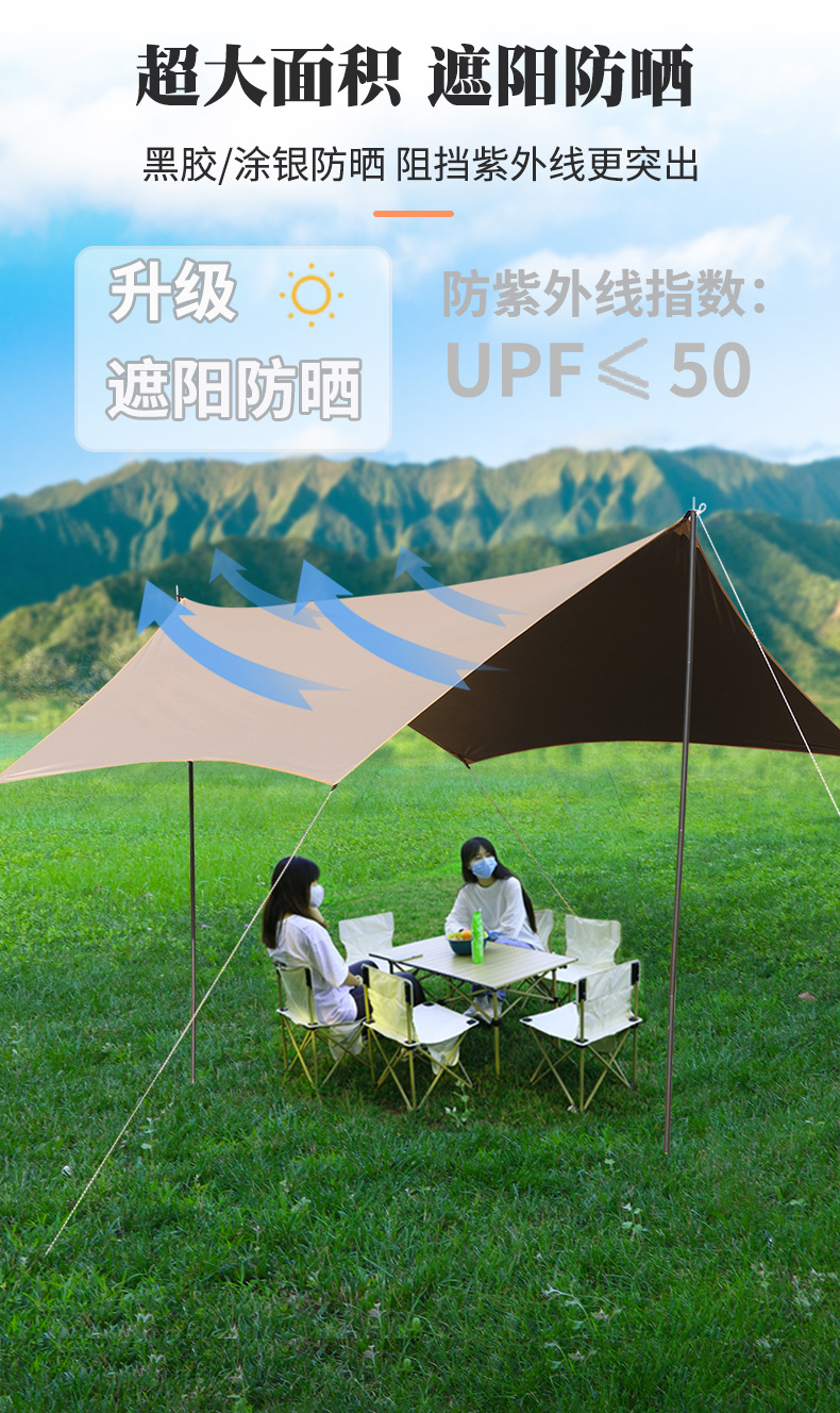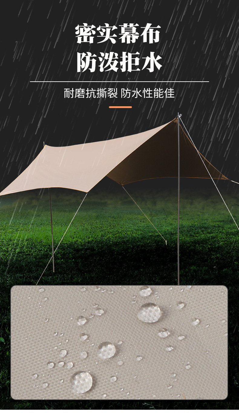 캐노피 텐트 야외 캠핑 햇빛 육각형 검은 접착제 실버 코팅 튀는 물 커튼 선 스크린 캐노피 피크닉 장비
