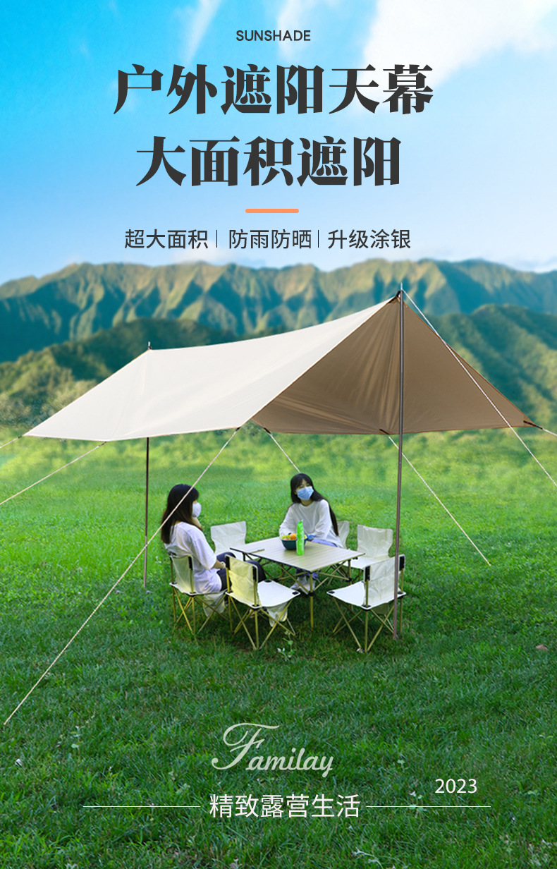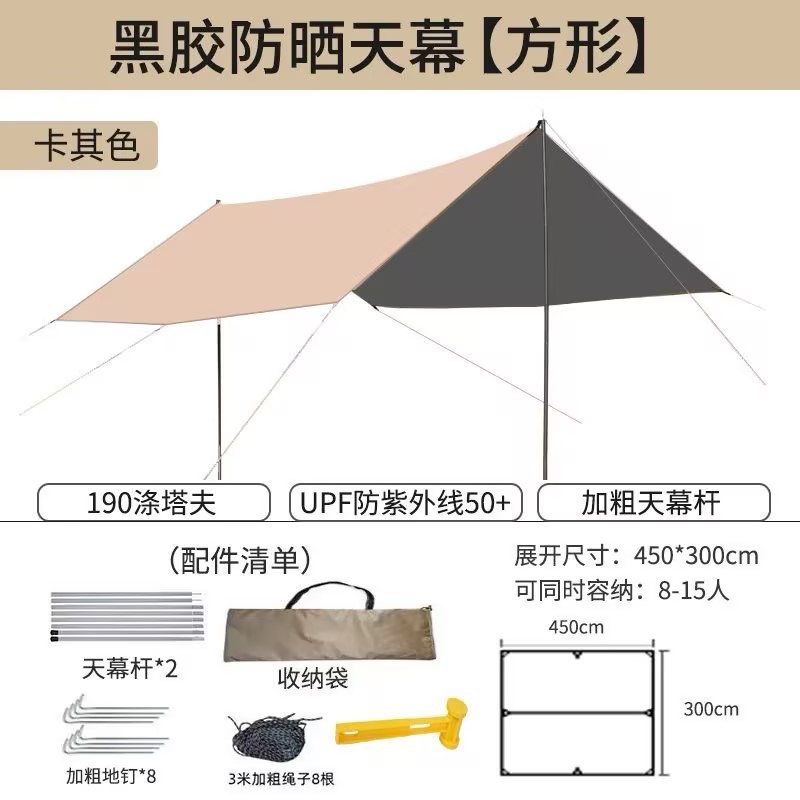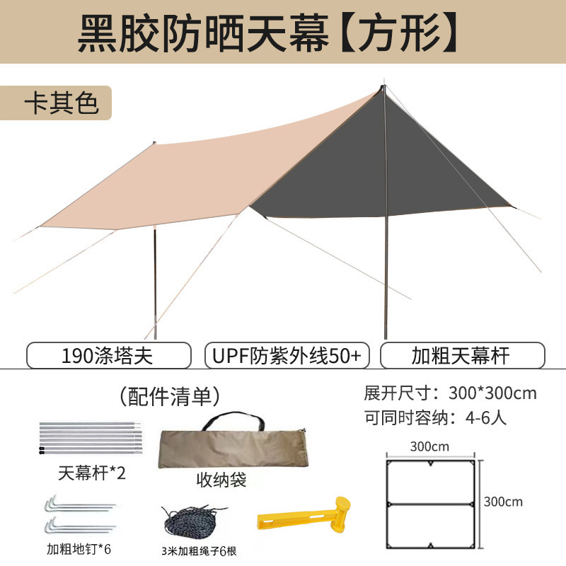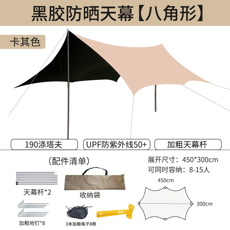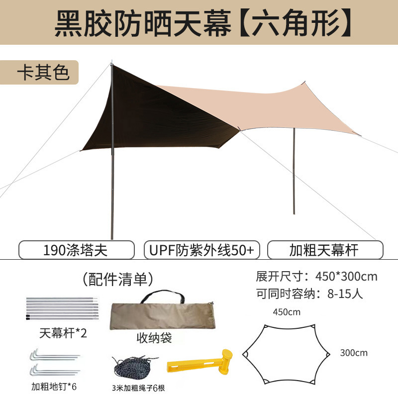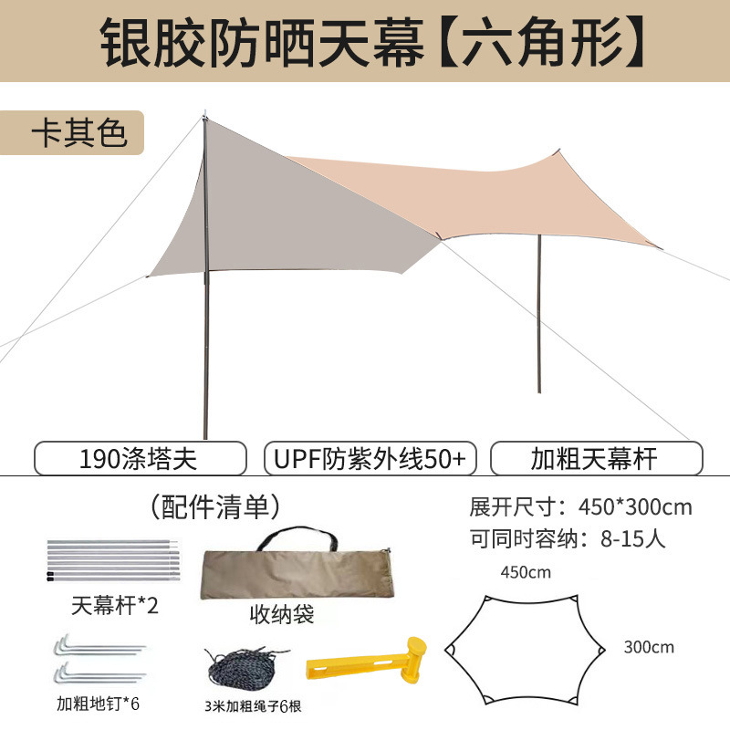 캐노피 텐트 야외 캠핑 햇빛 육각형 검은 접착제 실버 코팅 튀는 물 커튼 선 스크린 캐노피 피크닉 장비스토어 가기