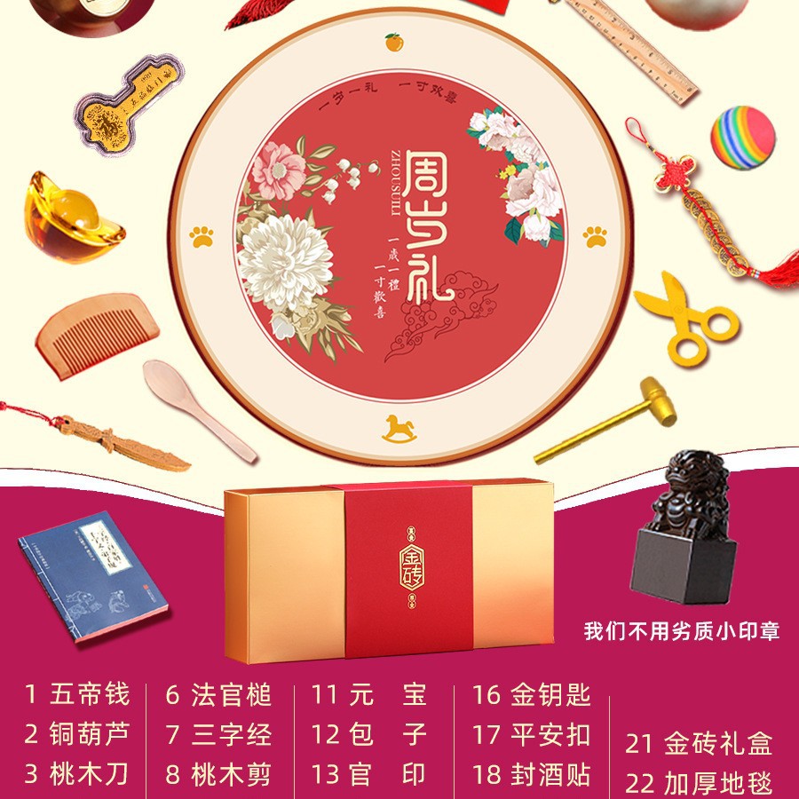 • 꽃이 피고 부귀가 두꺼워진 담요 22개 - 금벽돌 상자 - 봉인된 와인 스티커