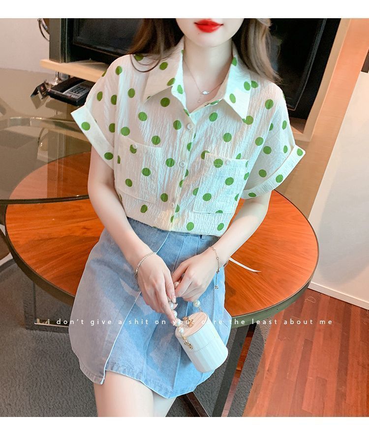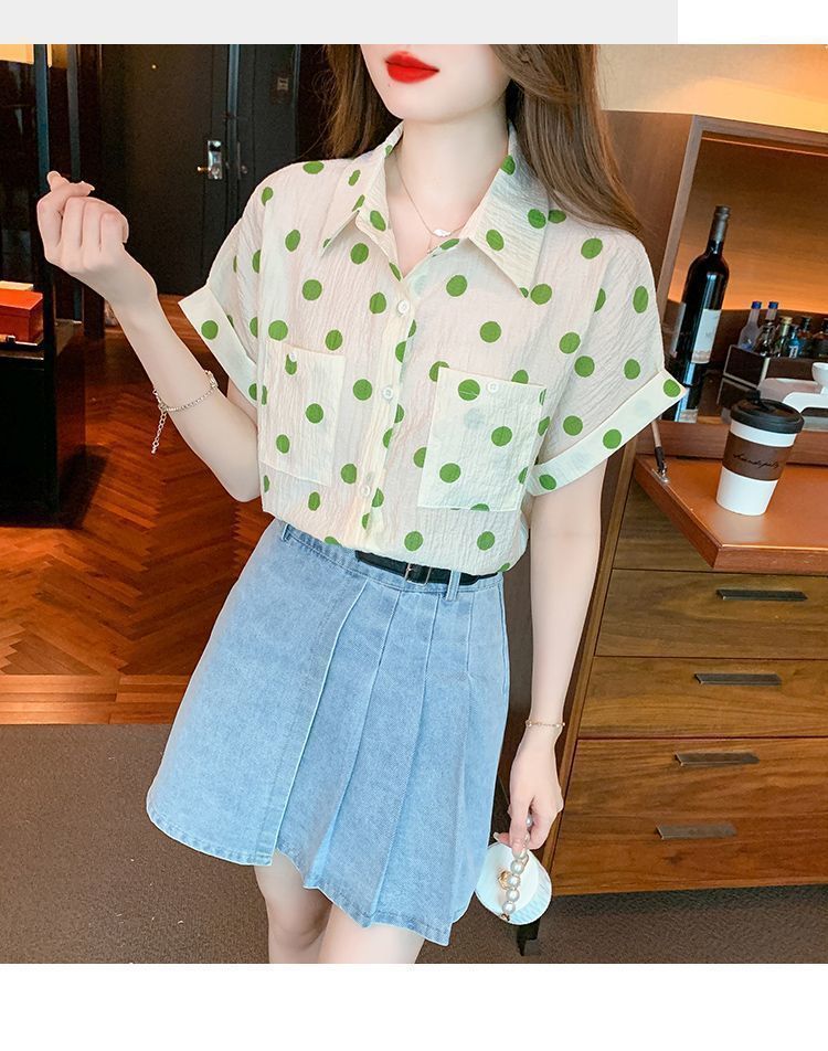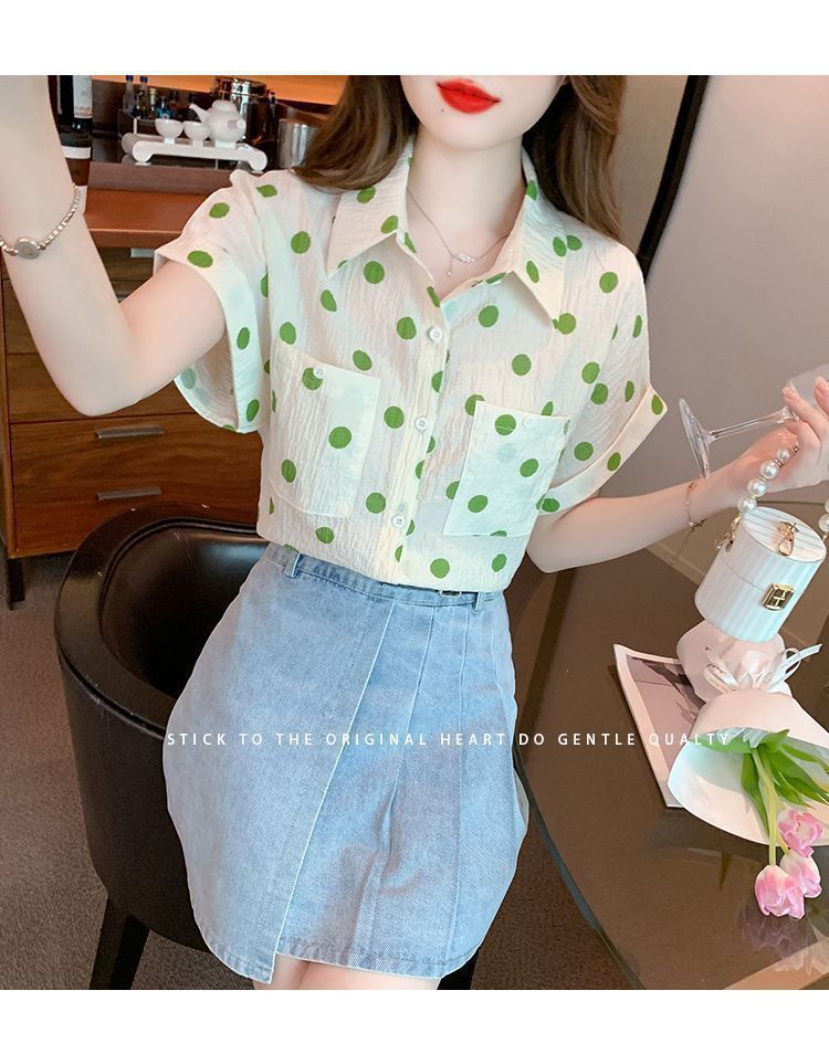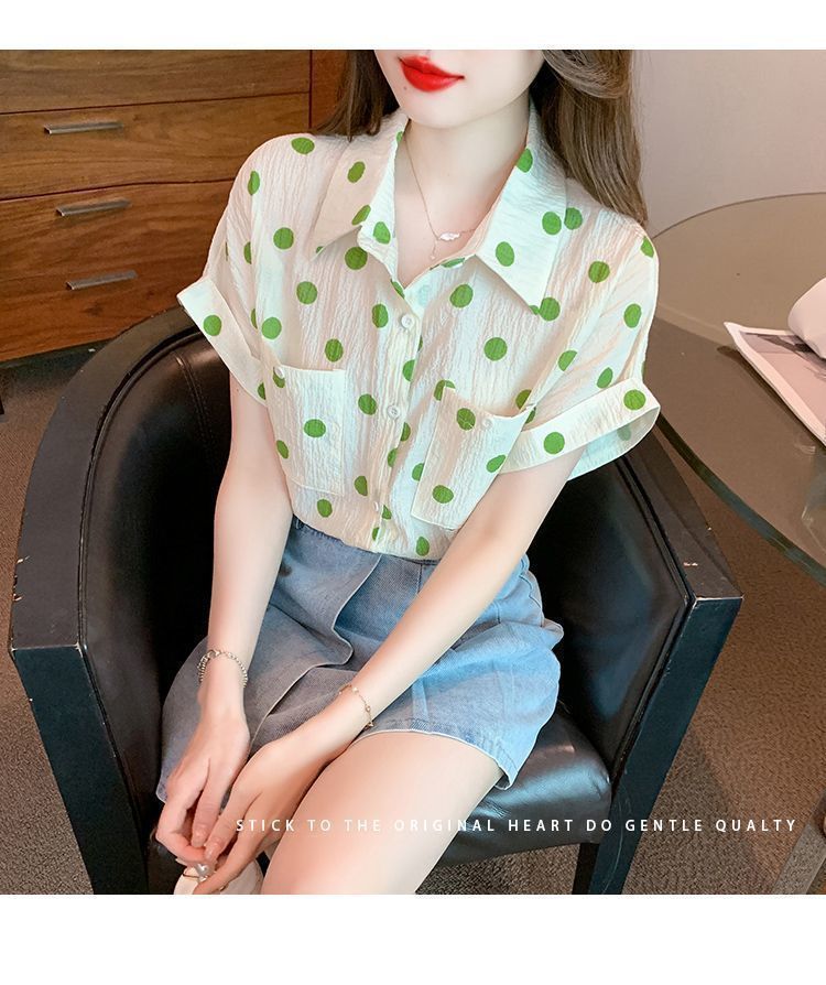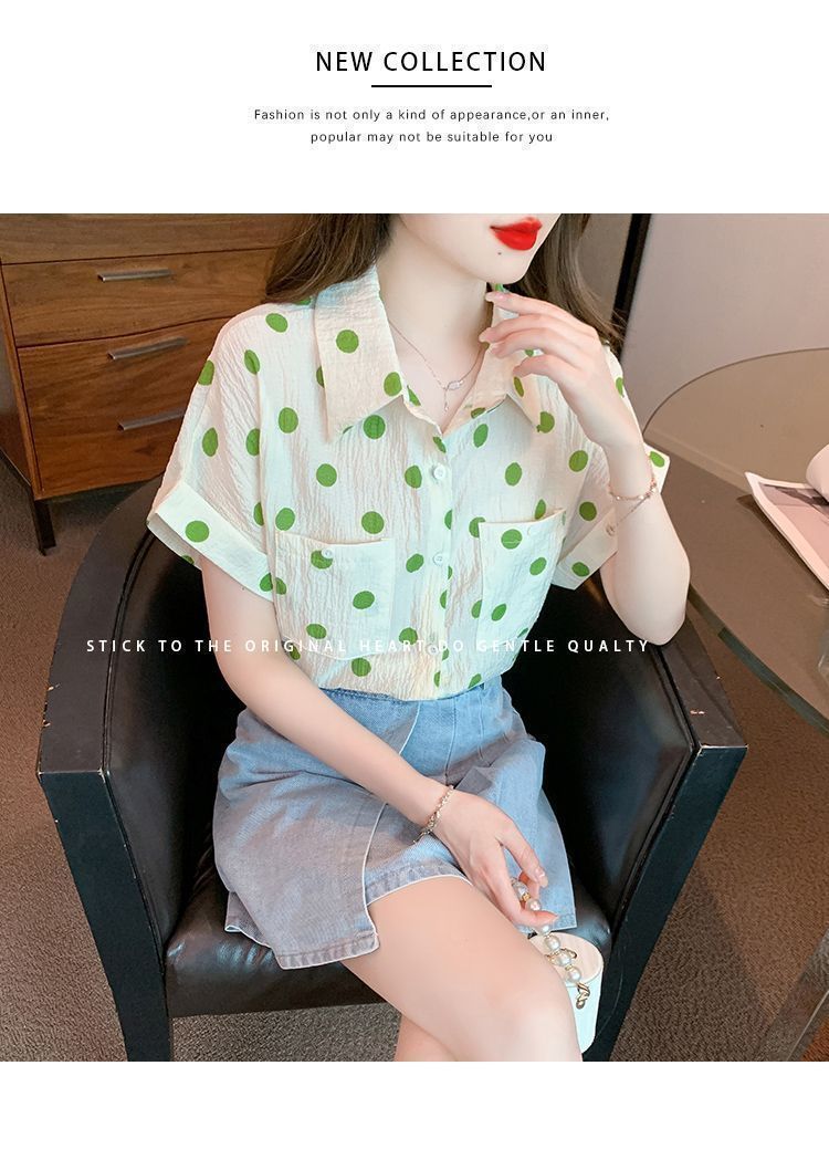 한국 스타일 우아한 폴로 도트 칼라 짧은 소매 쉬폰 셔츠 여성 여름 2025 새로운 스타일 여성 셔츠 탑