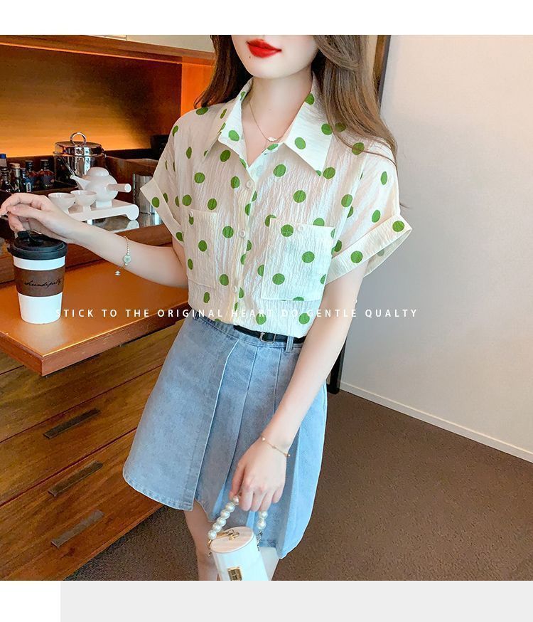 한국 스타일 우아한 폴로 도트 칼라 짧은 소매 쉬폰 셔츠 여성 여름 2025 새로운 스타일 여성 셔츠 탑스토어 가기