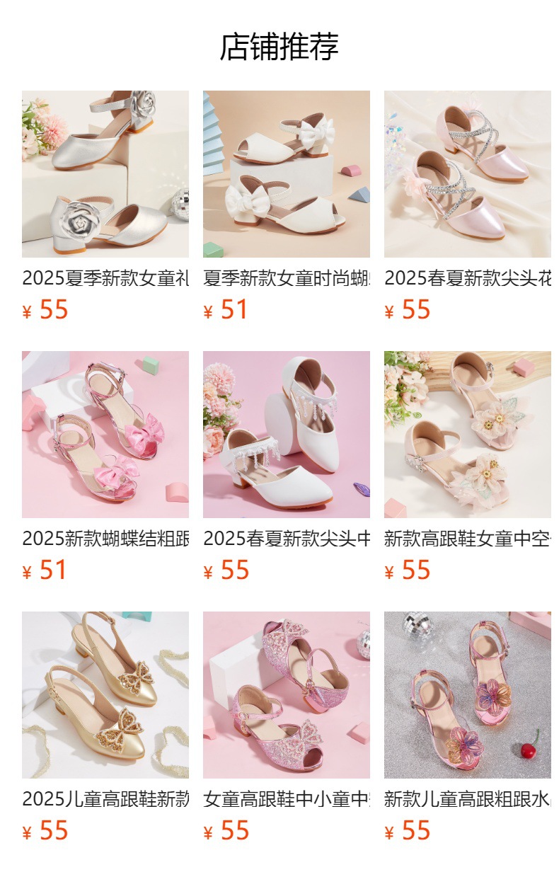 2025 가을 신상 뾰족코 꽃무늬 속이 빈 공주님 굽 높은 샌들 여아용 공연화 공주 샌들스토어 가기