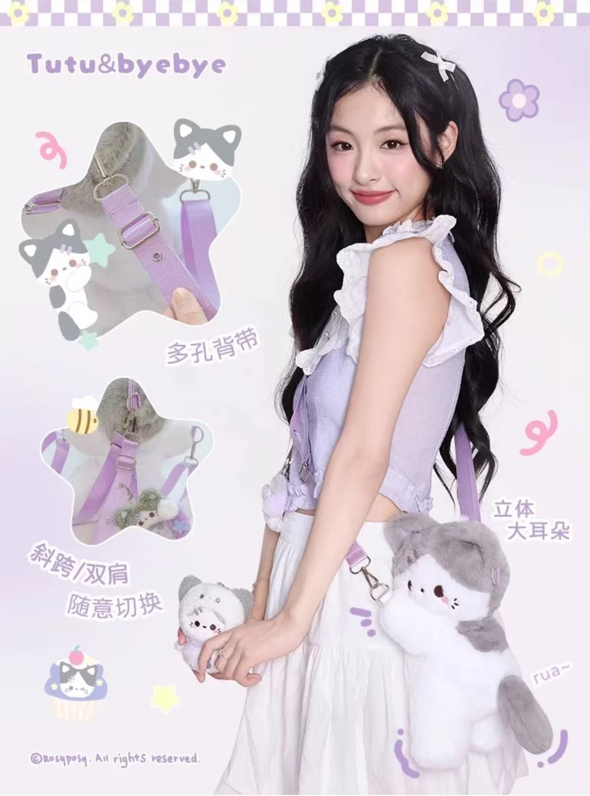 2025 봄 새 고양이 가방 귀여운 어깨 플러시 다목적 크로스 바디 가방 인형 소녀 외출 배낭스토어 가기