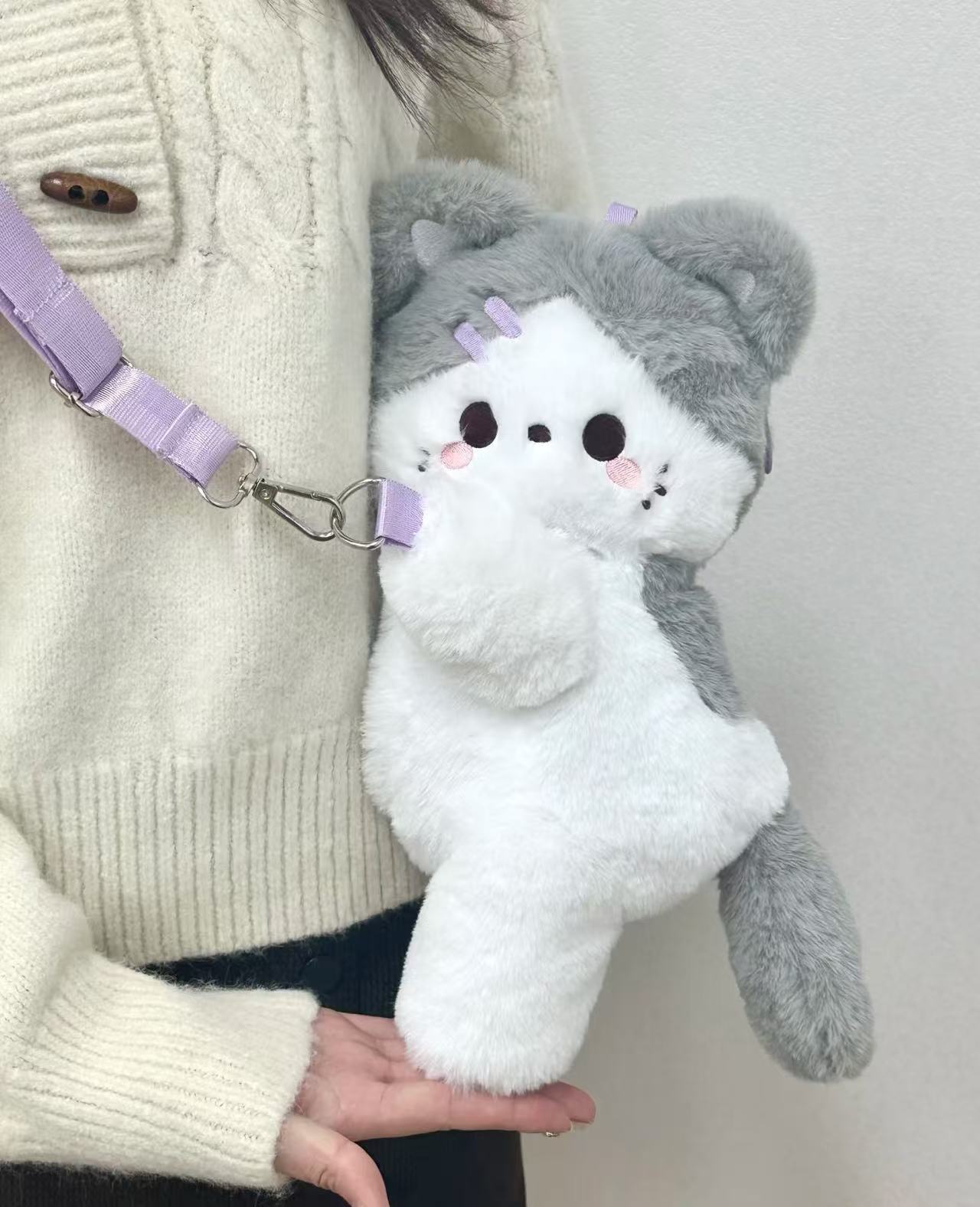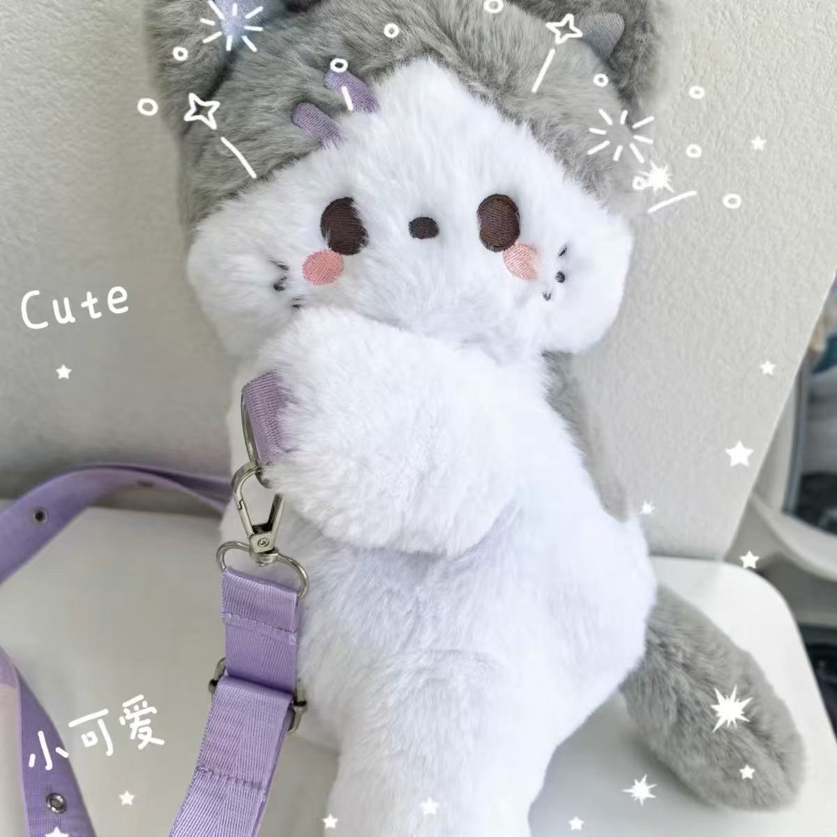 2025 봄 새 고양이 가방 귀여운 어깨 플러시 다목적 크로스 바디 가방 인형 소녀 외출 배낭
