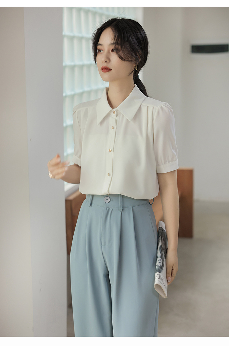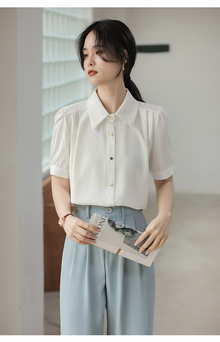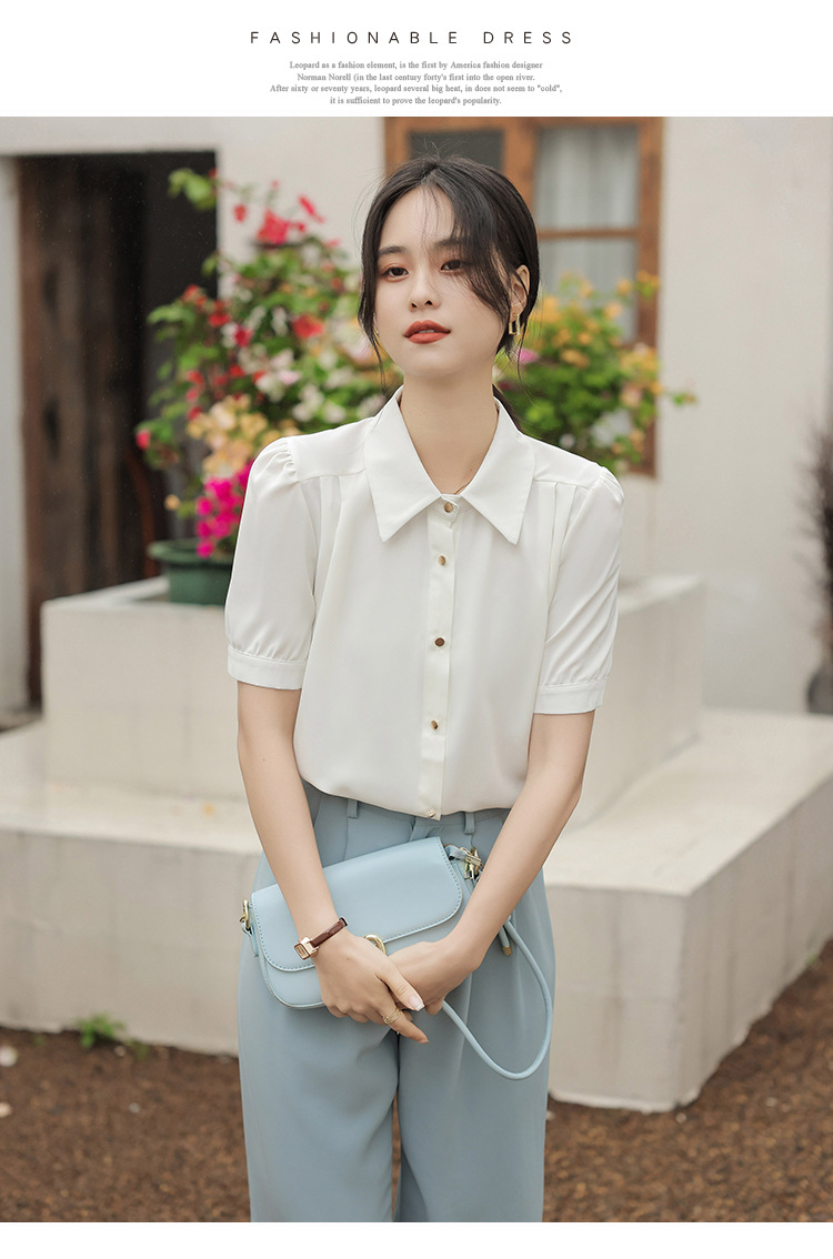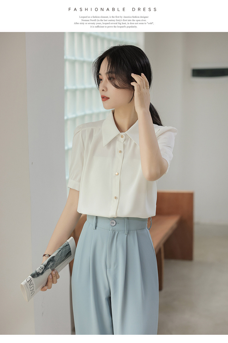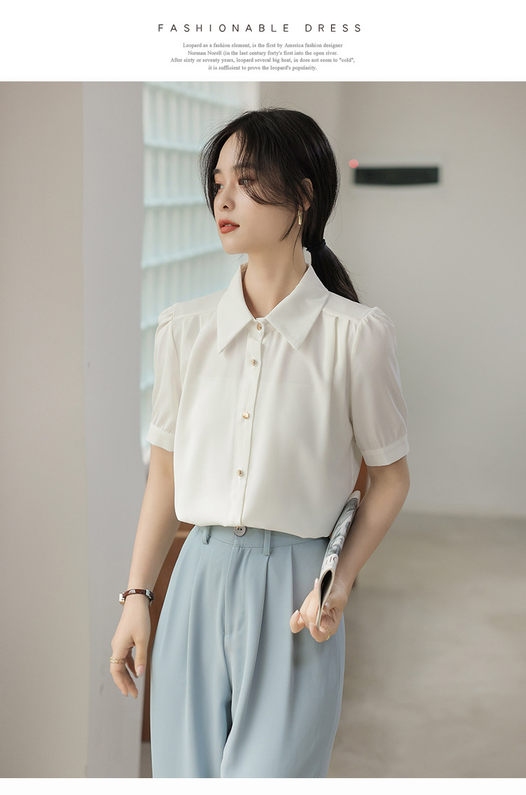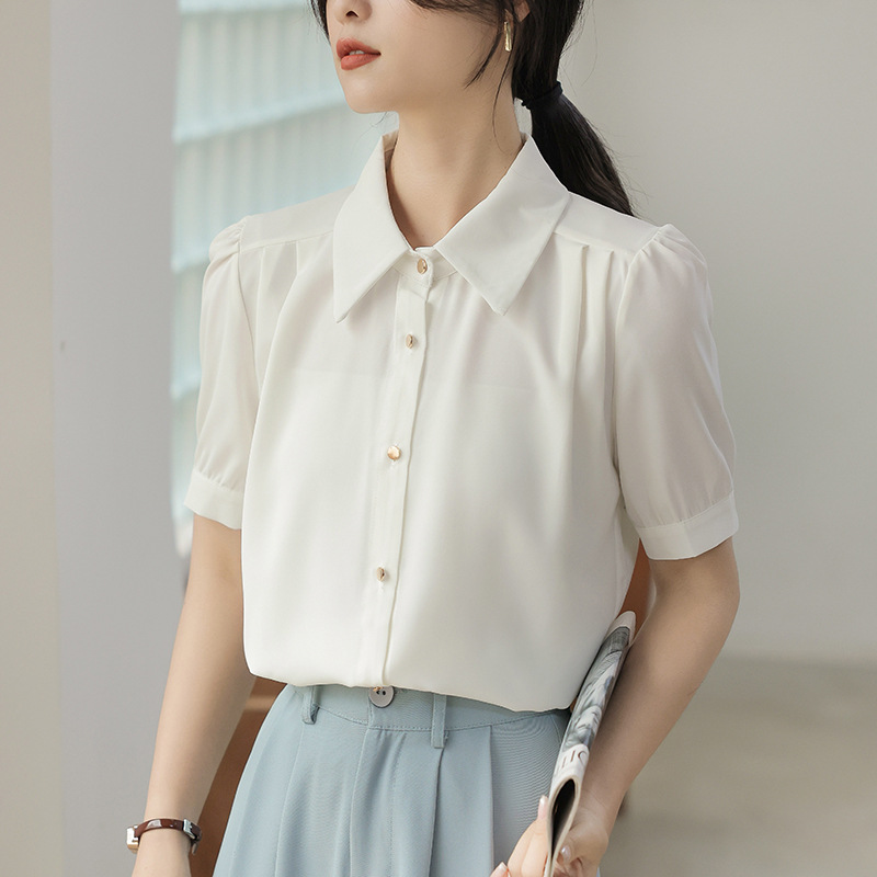 여름 새 반팔 셔츠 여성 프로 화이트 셔츠 인터뷰 원피스 작업복 느슨한 올매치 쉬폰 탑스토어 가기