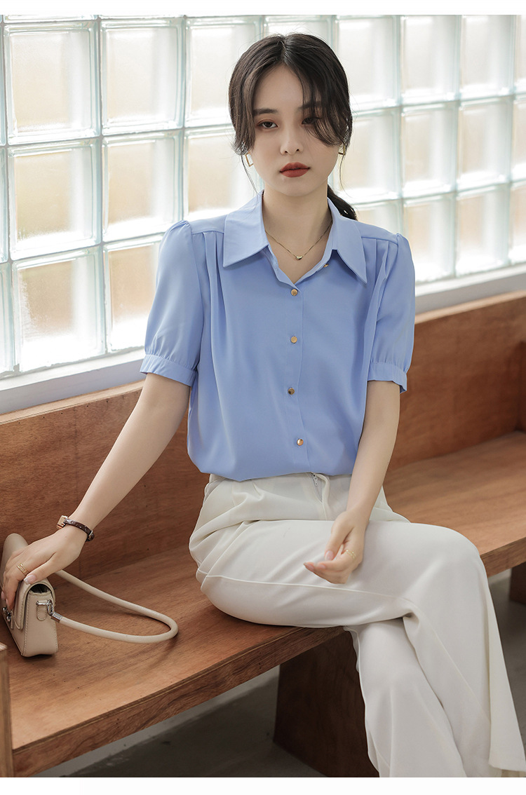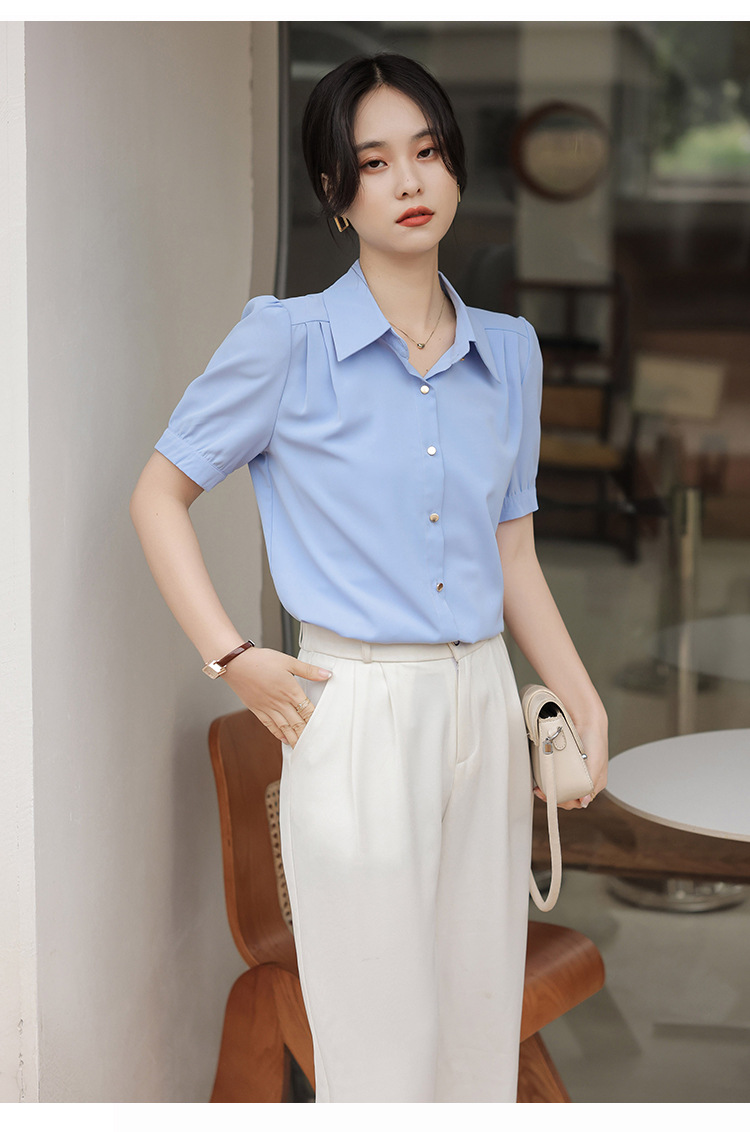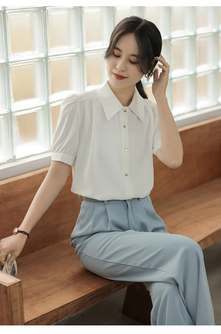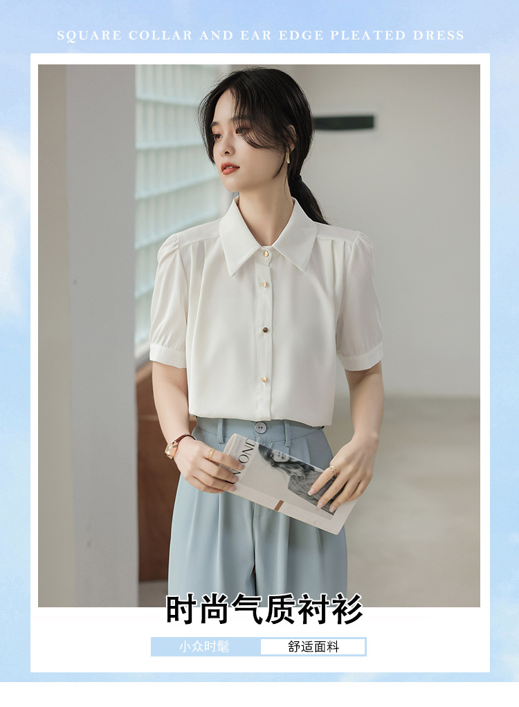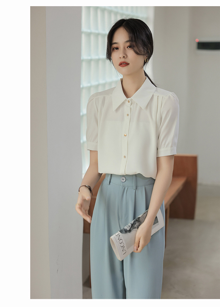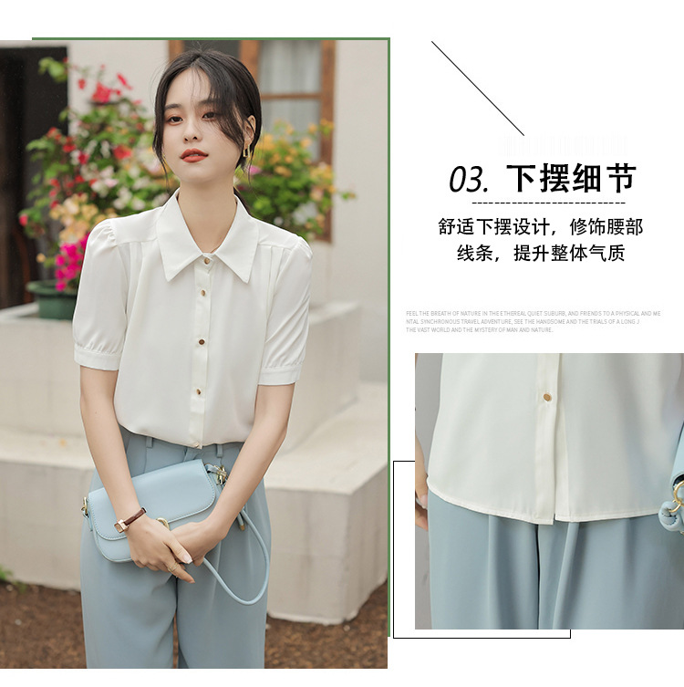 여름 새 반팔 셔츠 여성 프로 화이트 셔츠 인터뷰 원피스 작업복 느슨한 올매치 쉬폰 탑스토어 가기