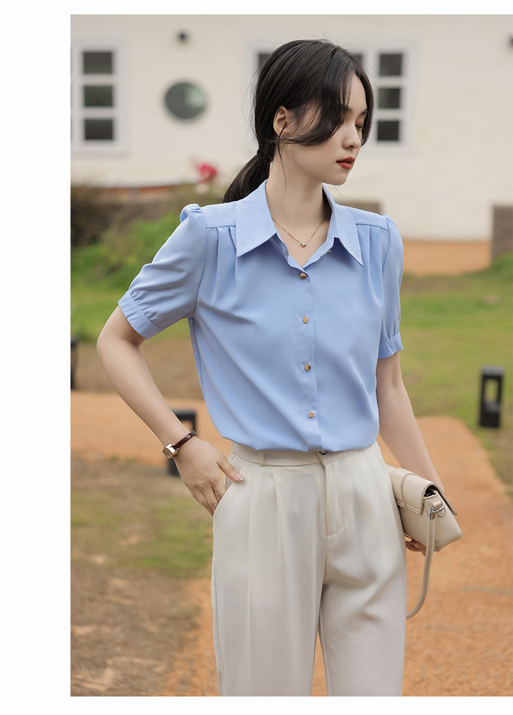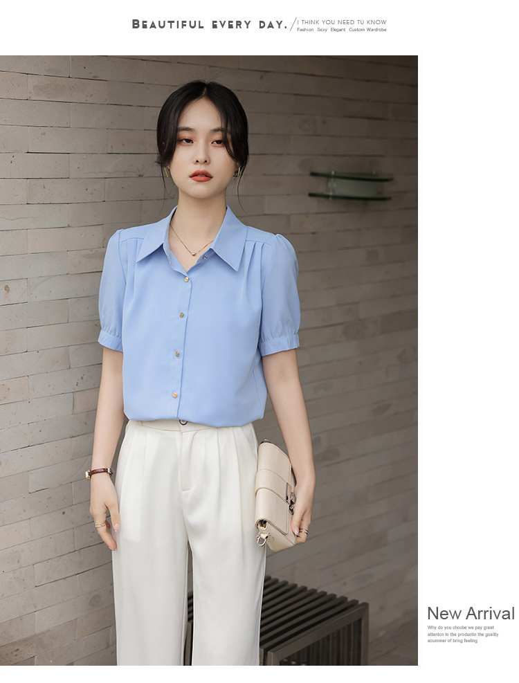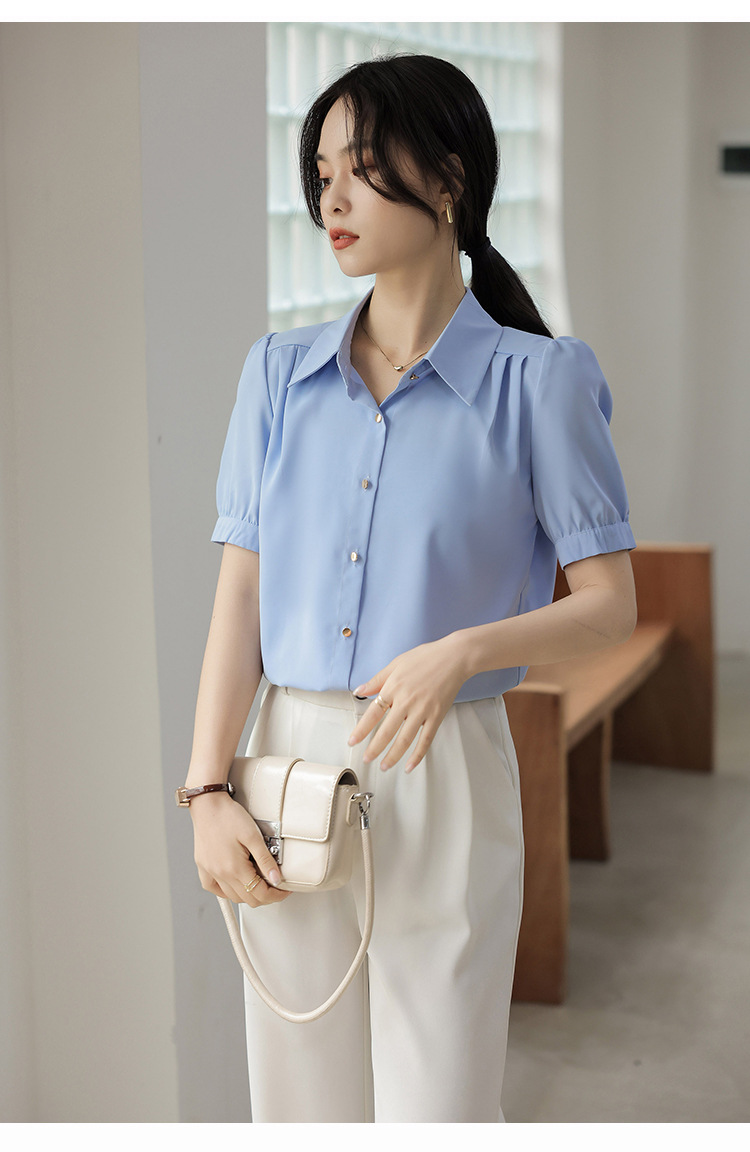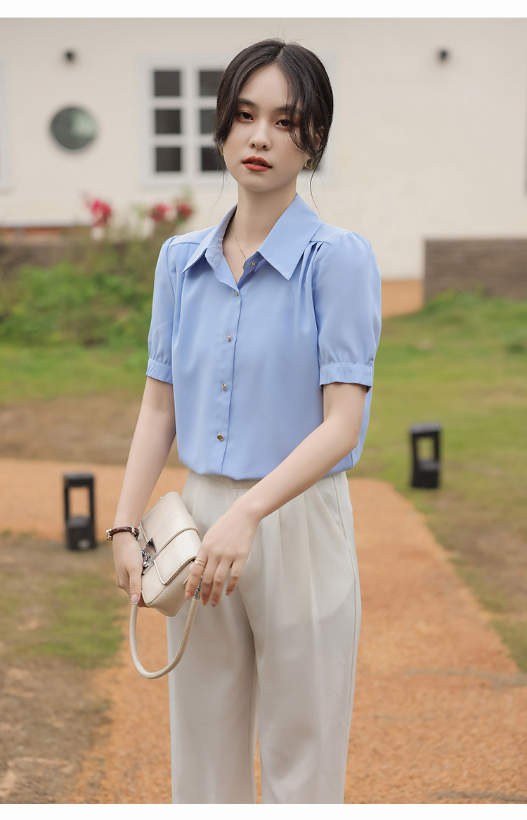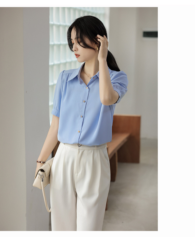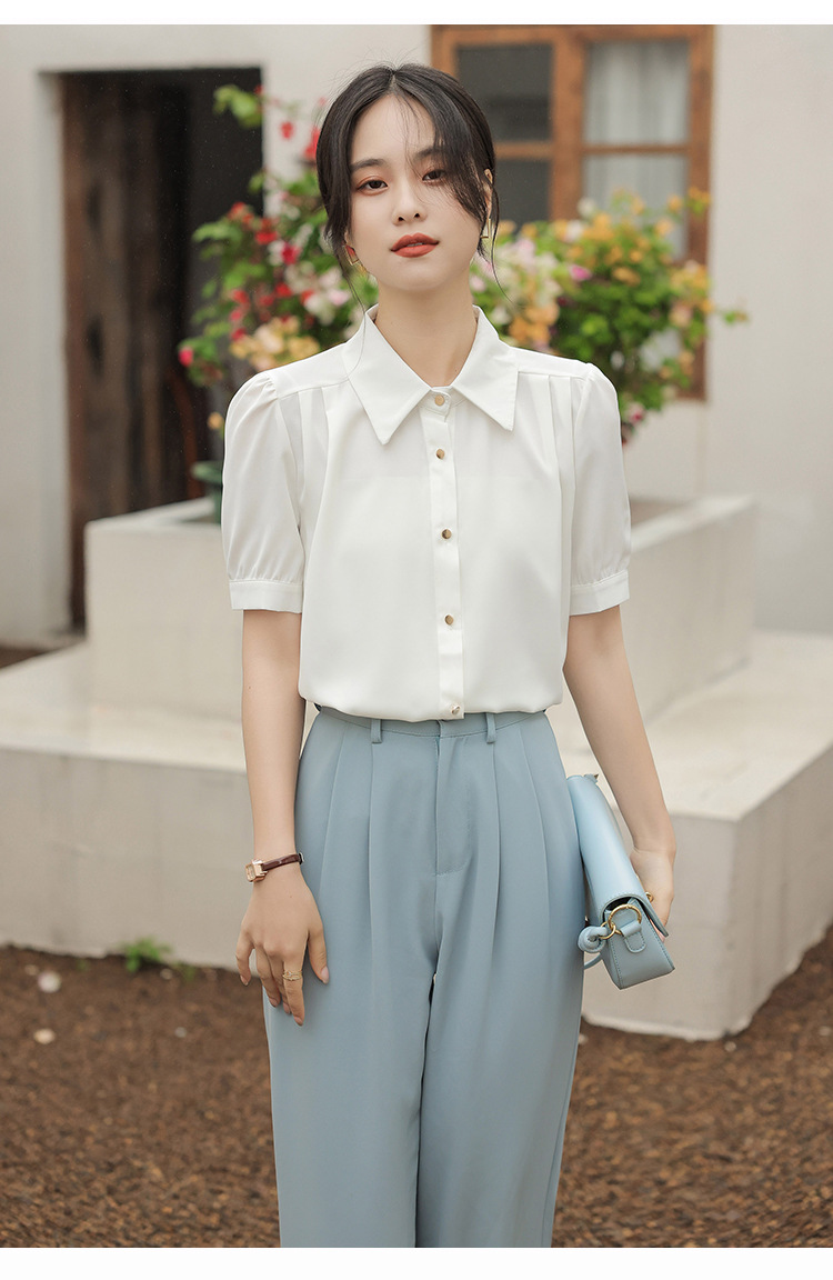 여름 새 반팔 셔츠 여성 프로 화이트 셔츠 인터뷰 원피스 작업복 느슨한 올매치 쉬폰 탑스토어 가기