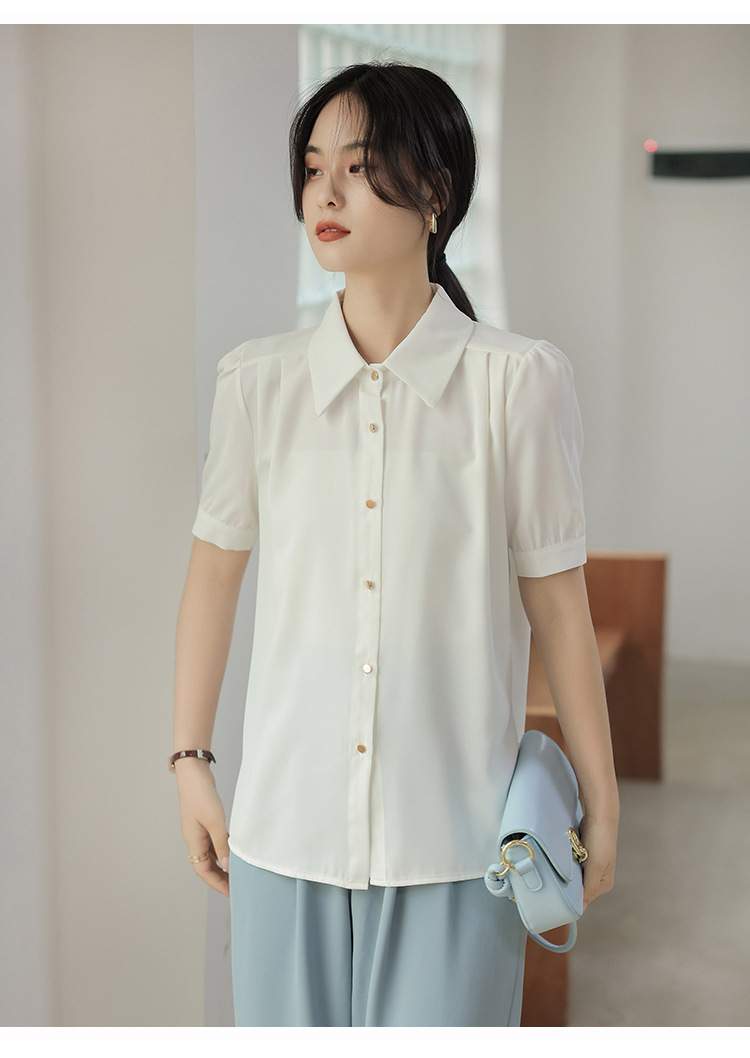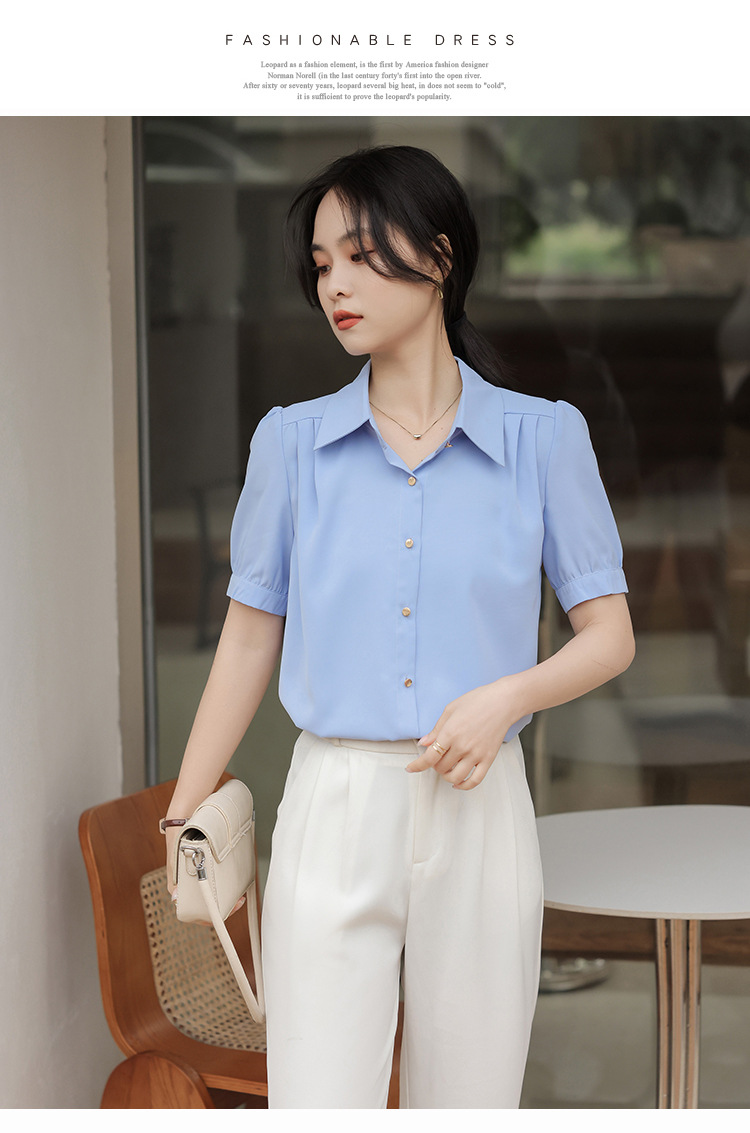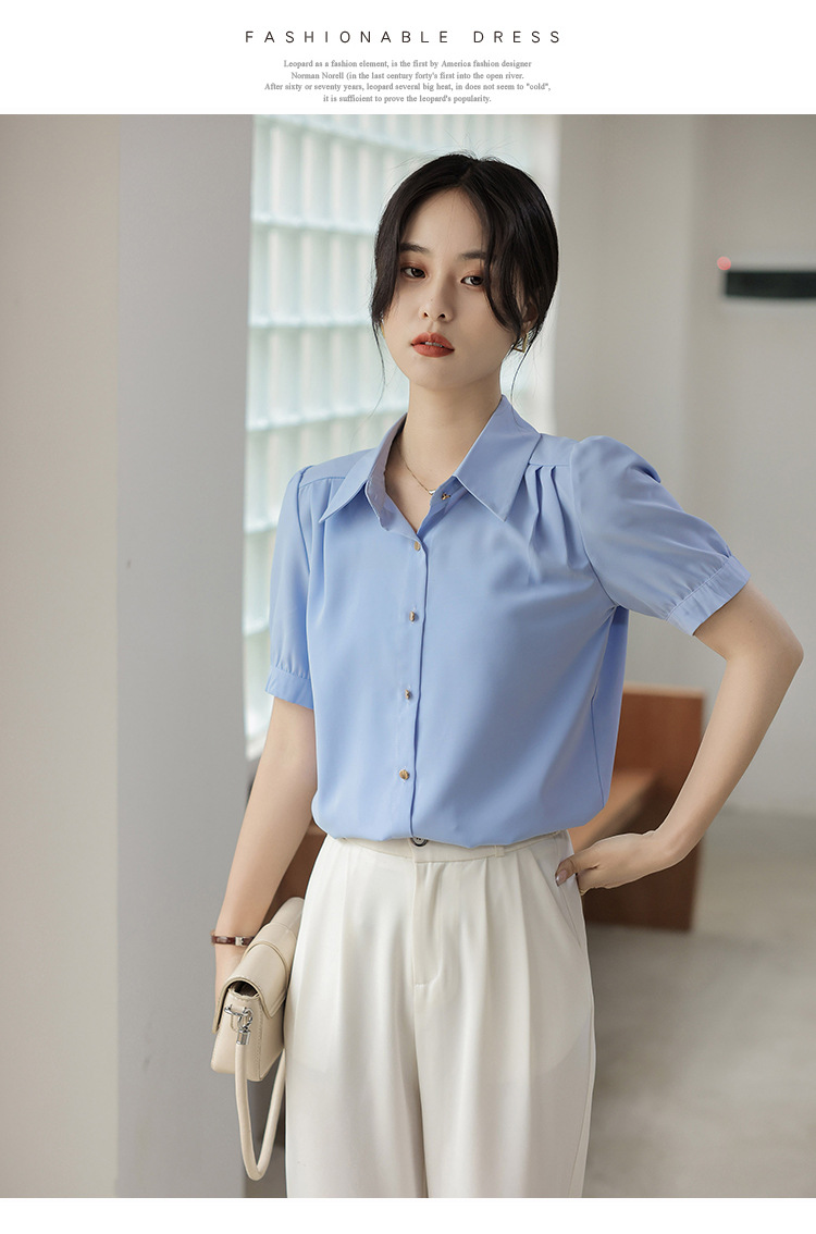 여름 새 반팔 셔츠 여성 프로 화이트 셔츠 인터뷰 원피스 작업복 느슨한 올매치 쉬폰 탑