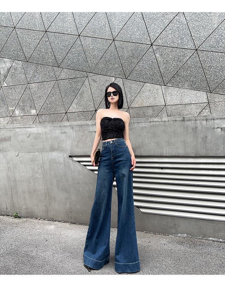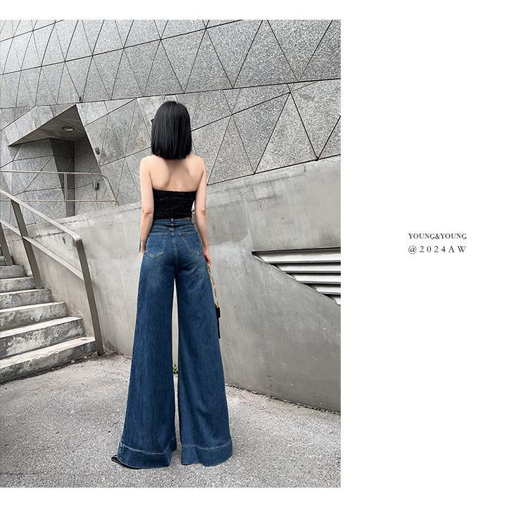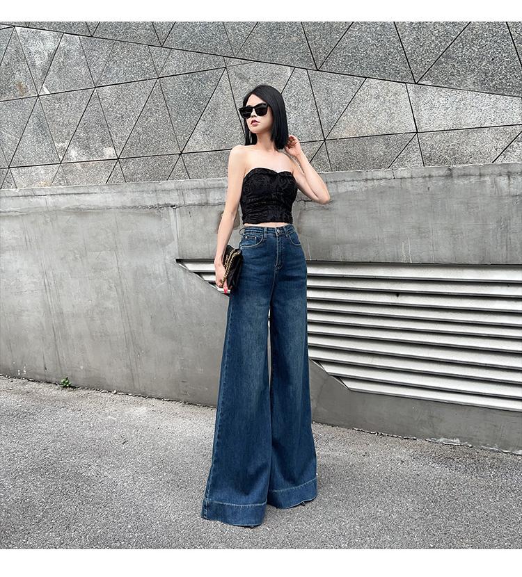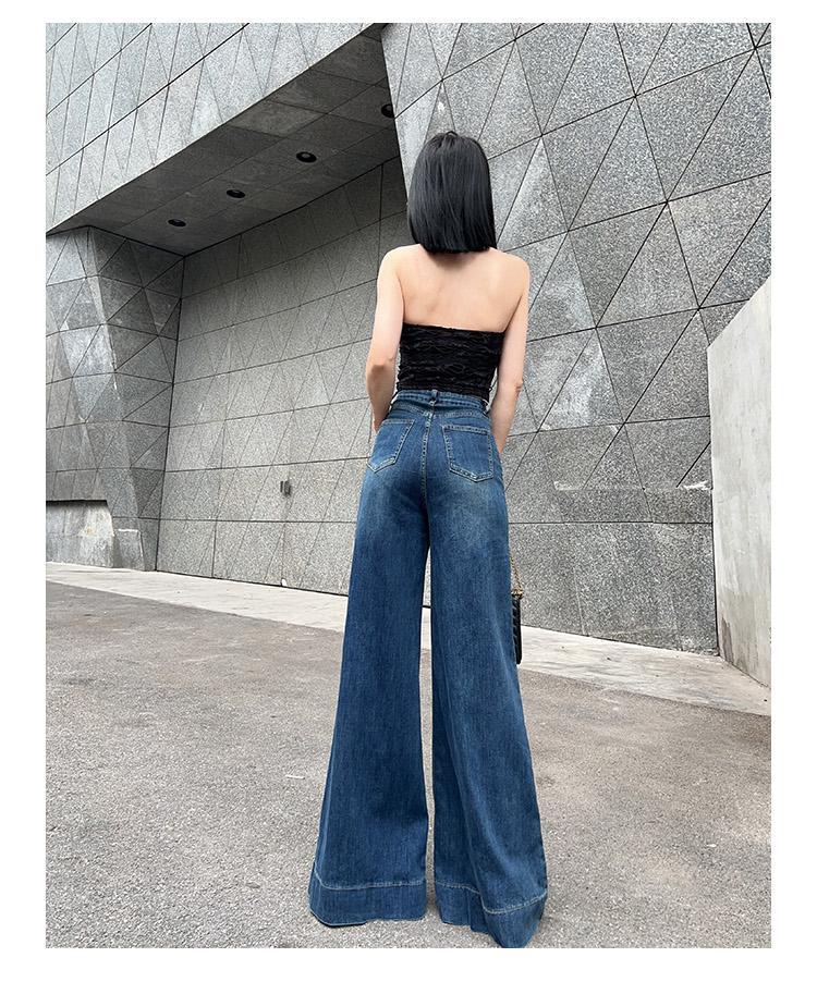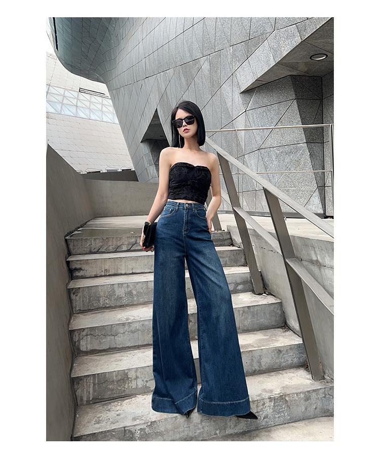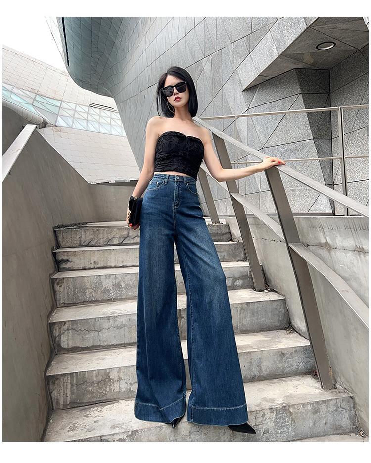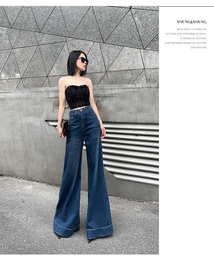 블루 와이드 레그 청바지 여성용 2025 봄과 가을 새로운 높은 허리 고기 커버 마이크로 혼 스트레이트 캐주얼 바지스토어 가기