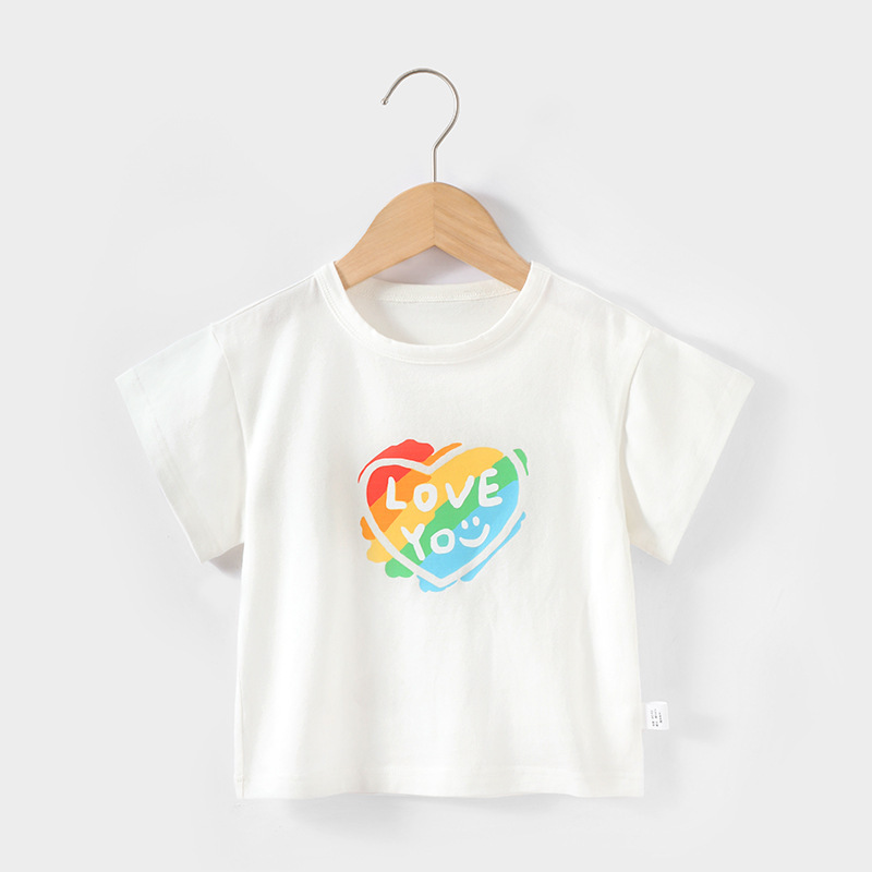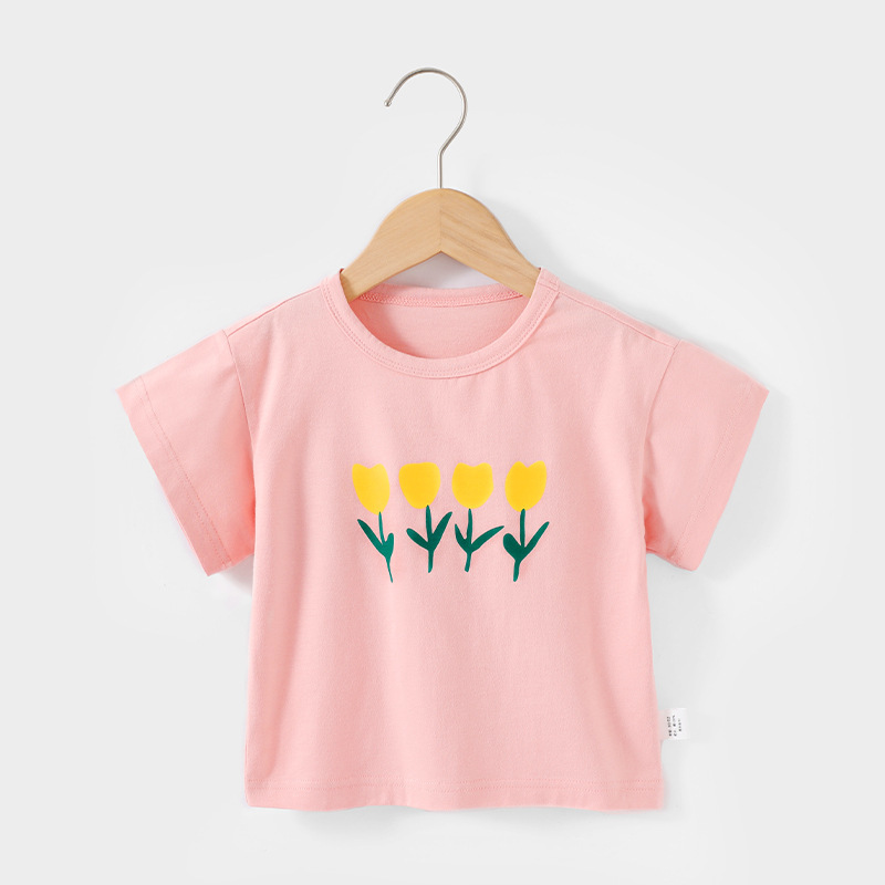 2025 면 어린이 반소매 티셔츠 5 색 여름 새 소년과 소녀 반소매 루즈탑 패션 면 반소매스토어 가기