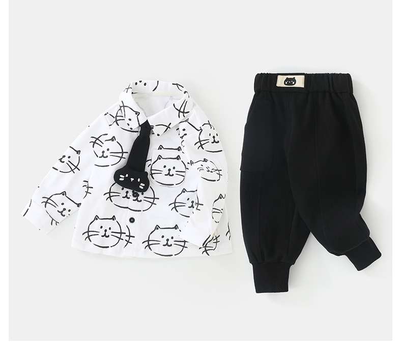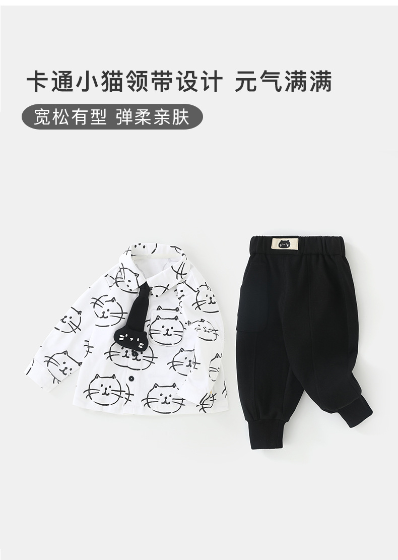 두두두 고양이 2025 봄과 가을 남성 아기 셔츠 캐주얼 바지 어린이 외출 옷 한국식 어린이 세트