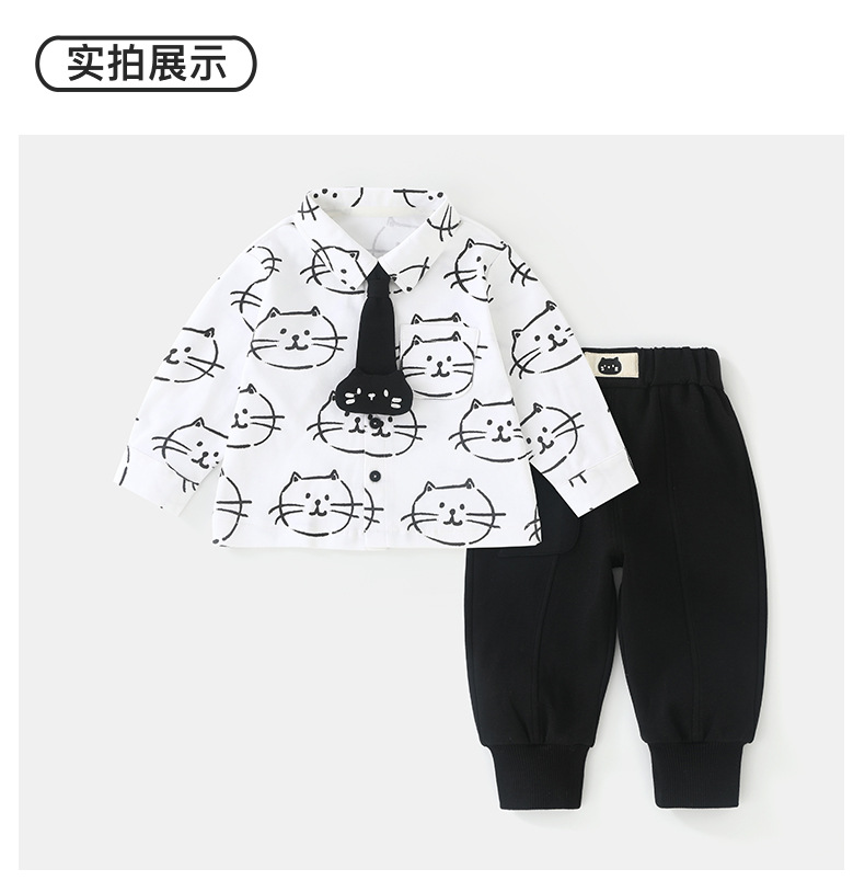 두두두 고양이 2025 봄과 가을 남성 아기 셔츠 캐주얼 바지 어린이 외출 옷 한국식 어린이 세트스토어 가기