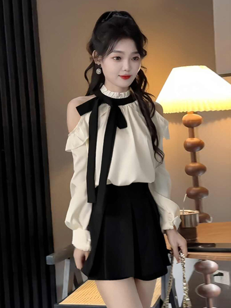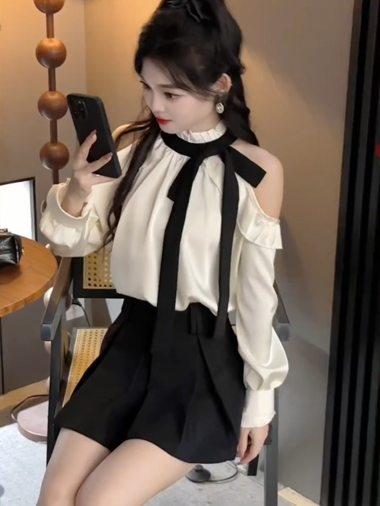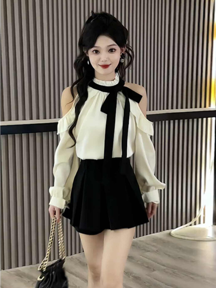 프랑스 스타일의 착용 패션 세트 세트 여성 봄 2025 새로운 스타일 작은 셔츠 스커트 투피스 세트스토어 가기