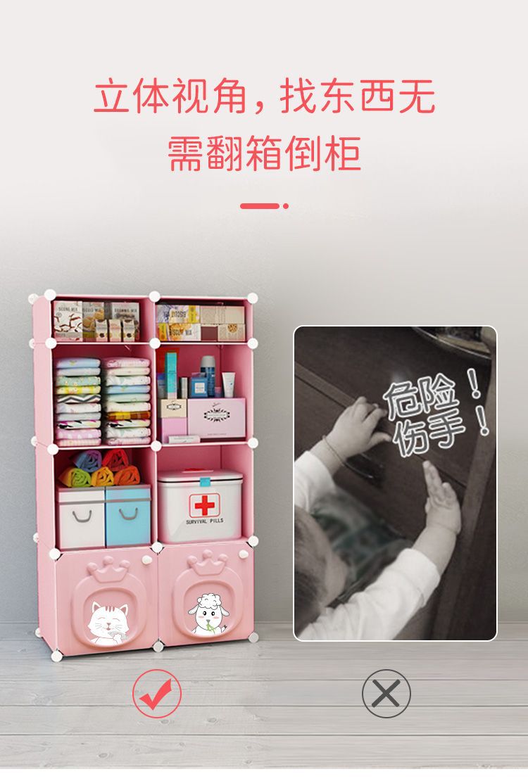 간단한 어린이 옷장 가정용 침실 소녀 아기 아기 작은 옷장 옷 보관 캐비닛 플라스틱 보관 캐비닛스토어 가기