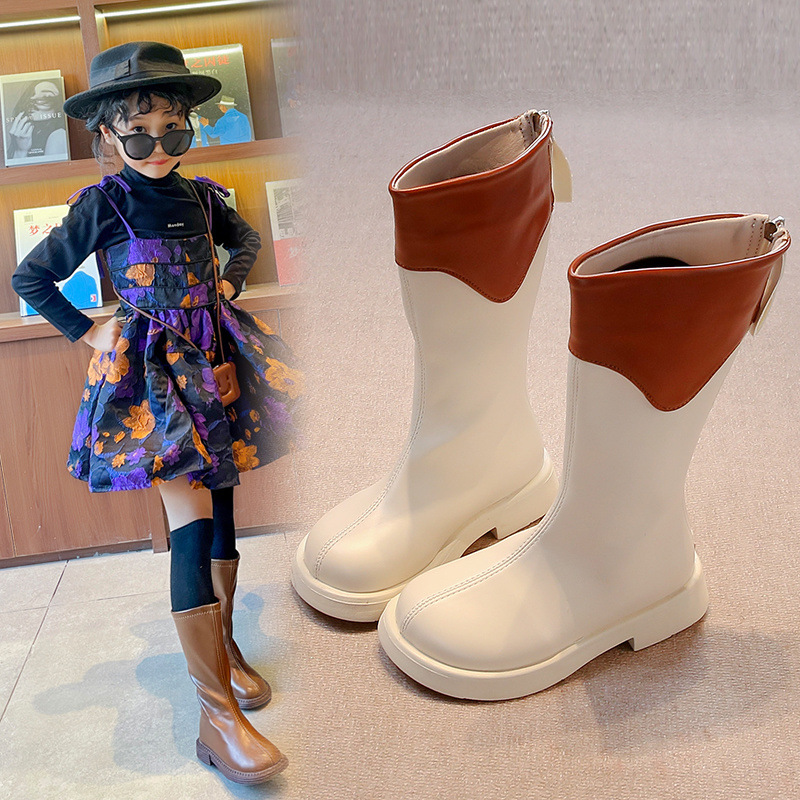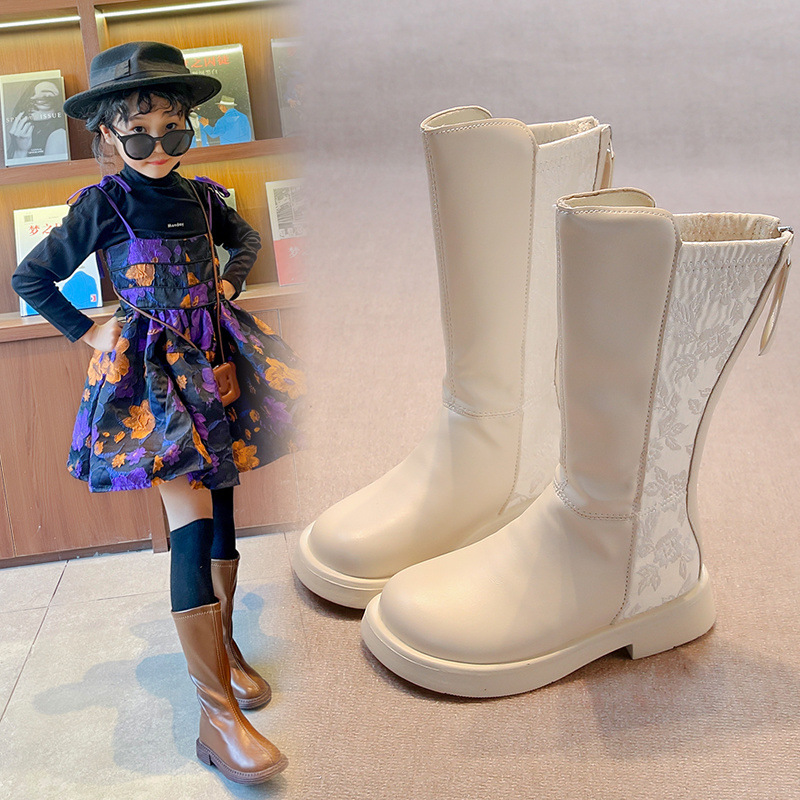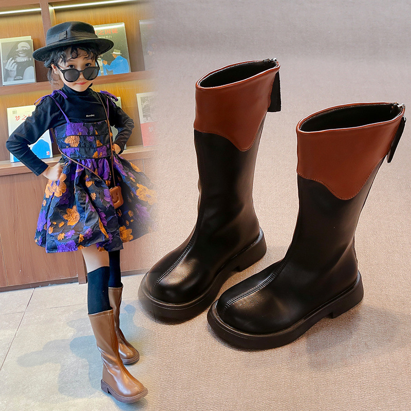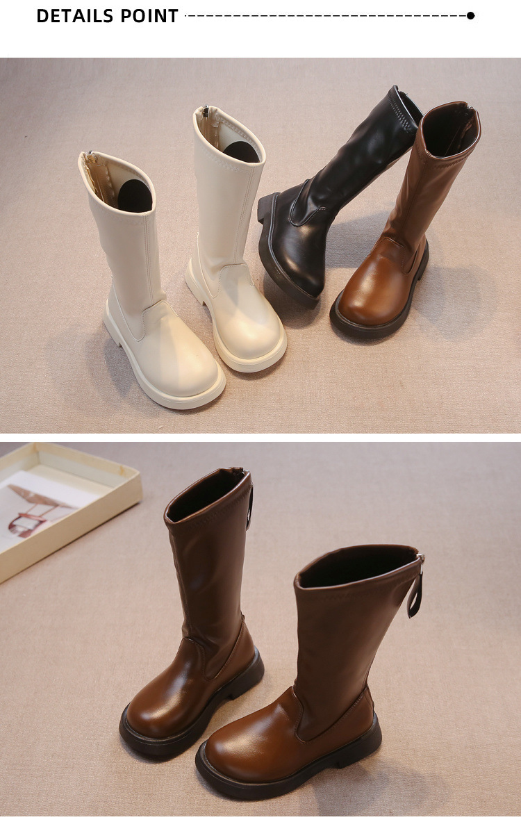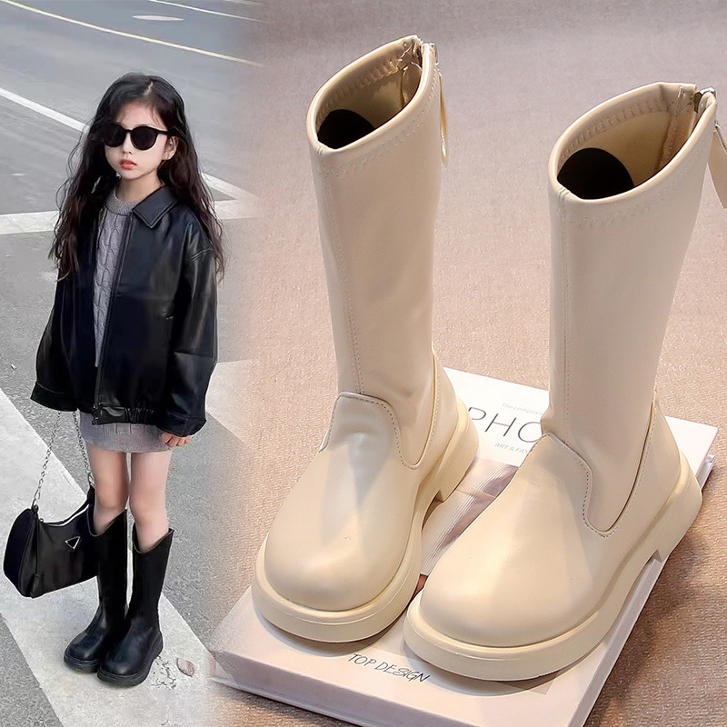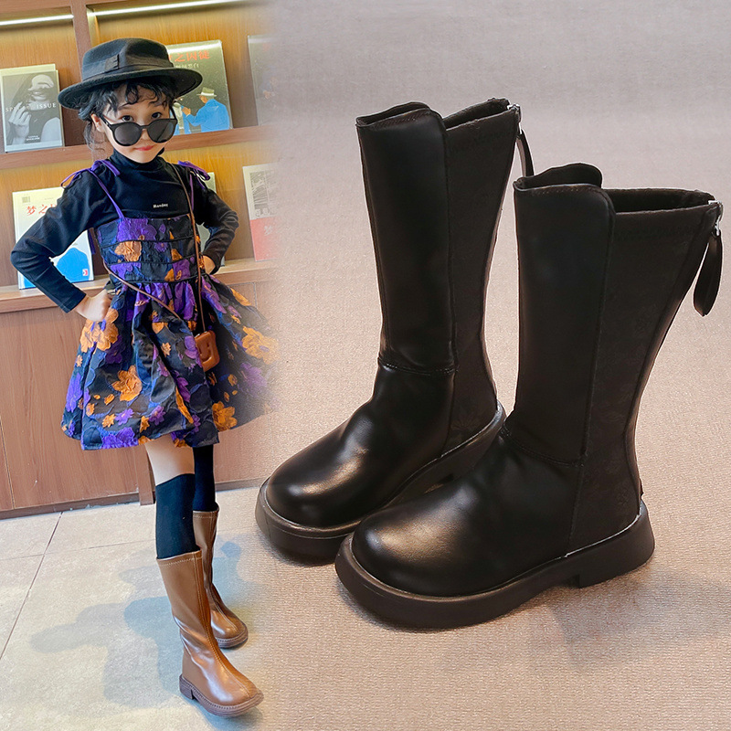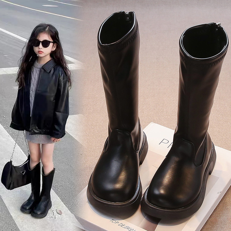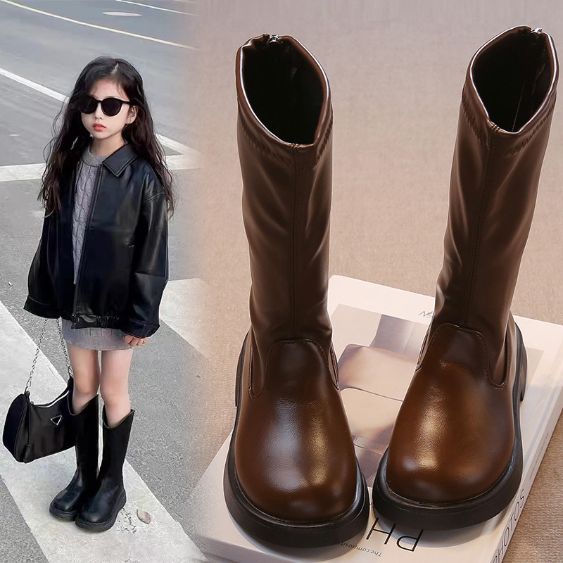 소녀 부츠 봄과 가을 싱글 부츠 2025 새로운 어린이 롱 부츠 소녀 공주 높은 부츠 가을 검은 가죽 부츠스토어 가기