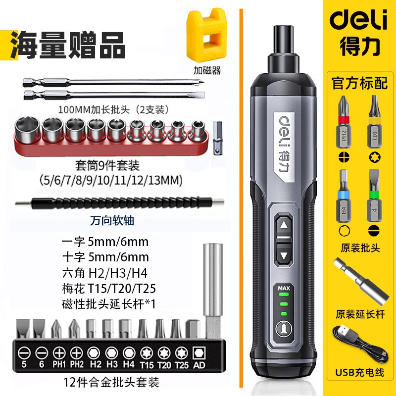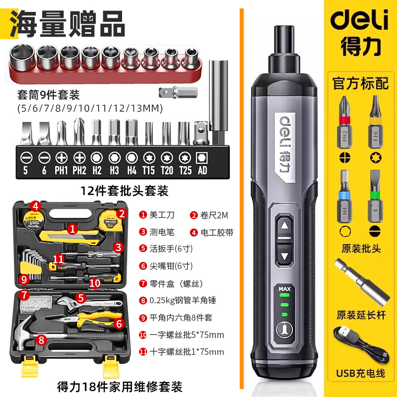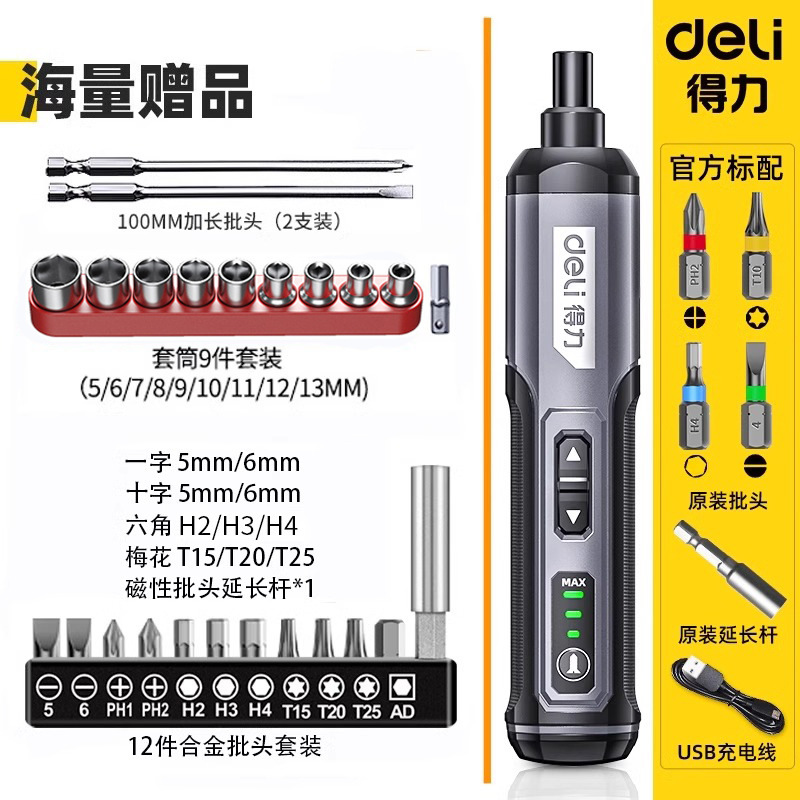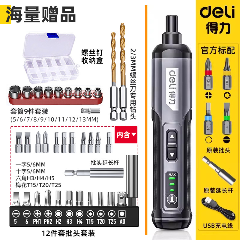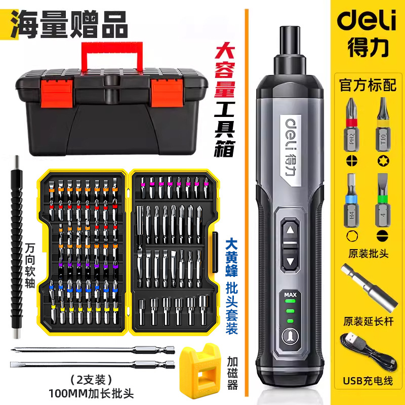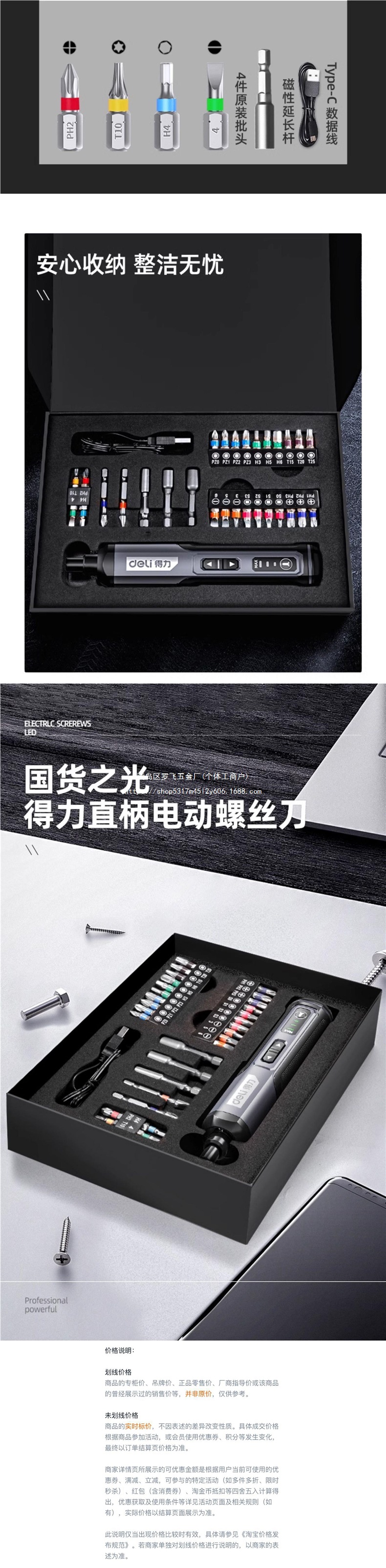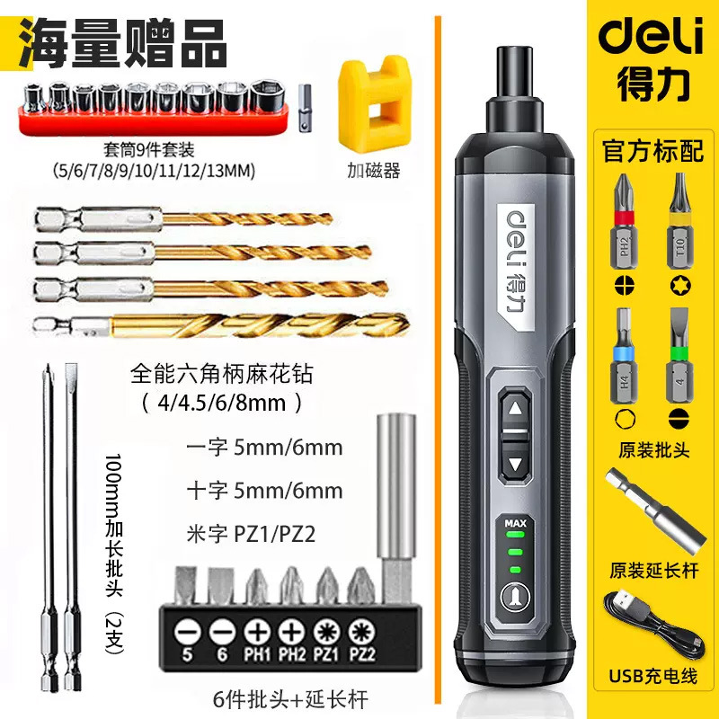 델리 전기 드라이버 충전식 가정용 드라이버 작은 다기능 전기 배치 리튬 배터리 자동 공구 세트스토어 가기