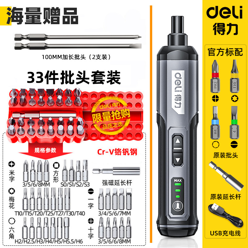 델리 전기 드라이버 충전식 가정용 드라이버 작은 다기능 전기 배치 리튬 배터리 자동 공구 세트