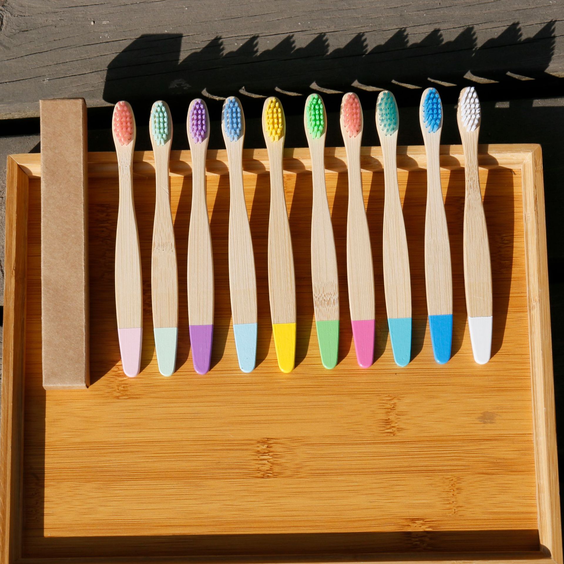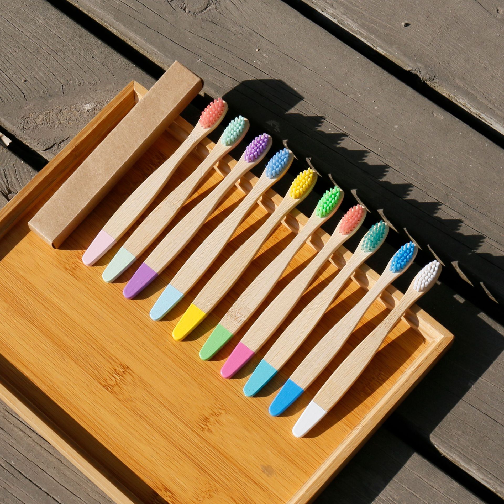 어린이 대나무 칫솔 손으로 그린 나무 대나무 손잡이 칫솔 매일 10 팩 가정용 어린이 대나무 칫솔