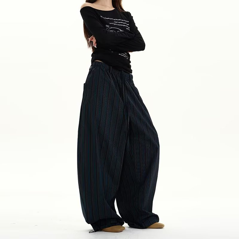 캐주얼 바지 남성과 여성의 봄과 가을 바느질 높은 허리 느슨한 슬리밍 넓은 다리 스트레이트 캐주얼 바지 하이 스트리트 트렌디스토어 가기