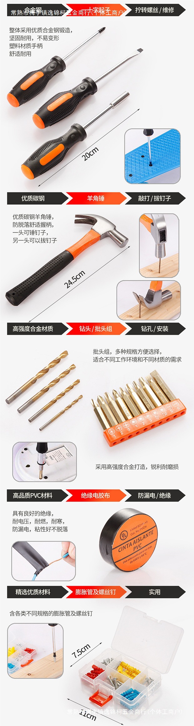 도구 상자 세트 가정용 다기능 가족 자동차 매일 전기 기술자 하드웨어 도구 완전한 세트