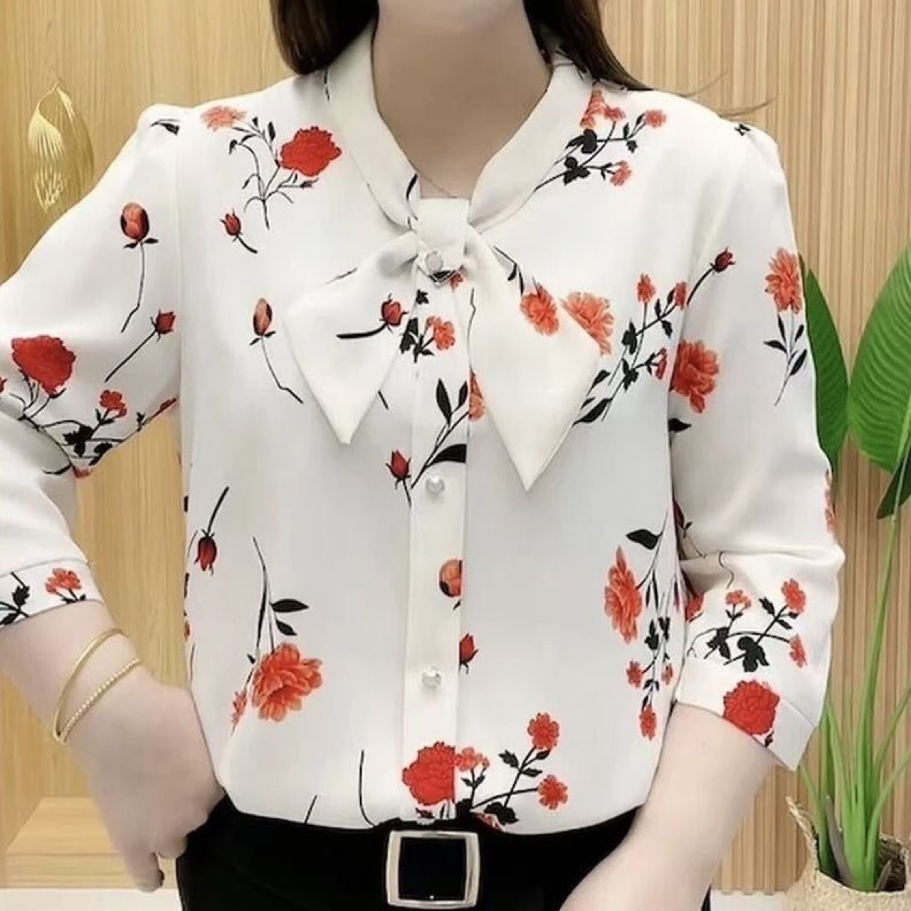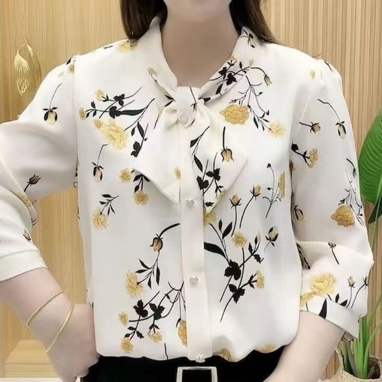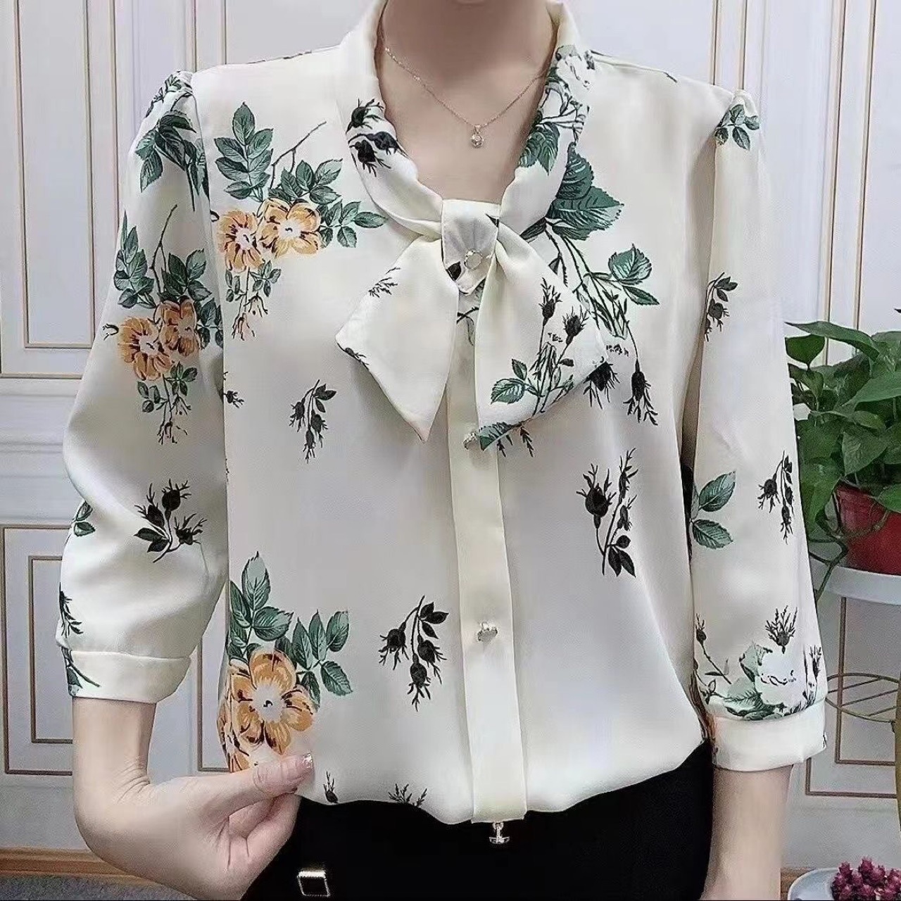 7부 소매 리본 시폰 셔츠 2024 여름 엄마룩 루즈핏 슬림핏 얇은 셔츠 여성 무료배송 플러스 사이즈 여성복스토어 가기
