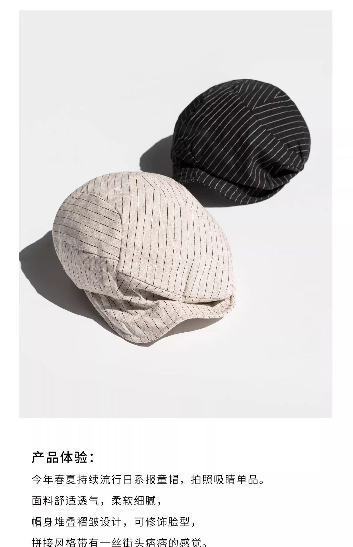 일본 주문! 줄무늬 주름진 리넨 통기성 클라우드 베레 빈티지 뉴스 보이 모자 팔각형 모자 어린이