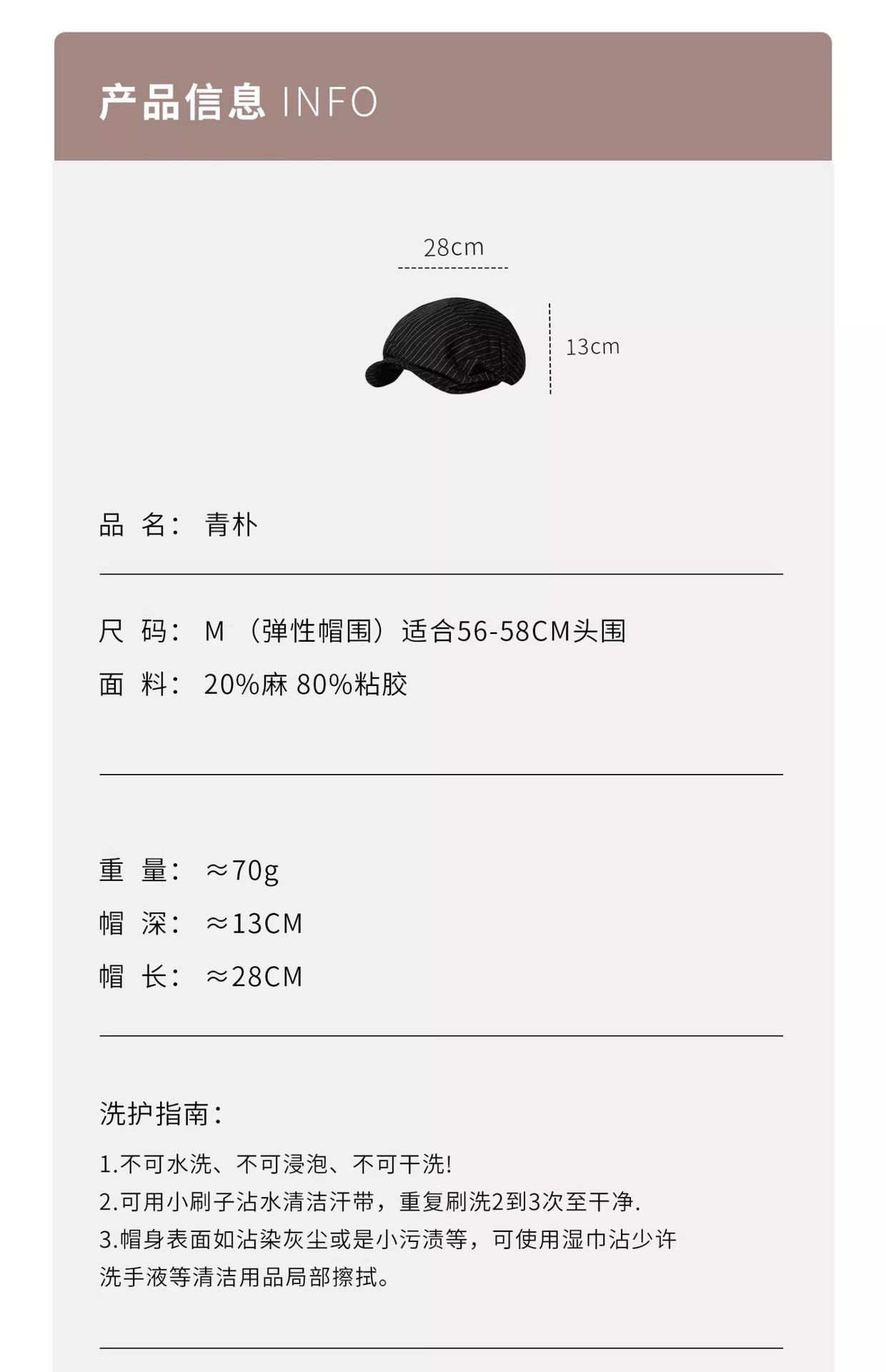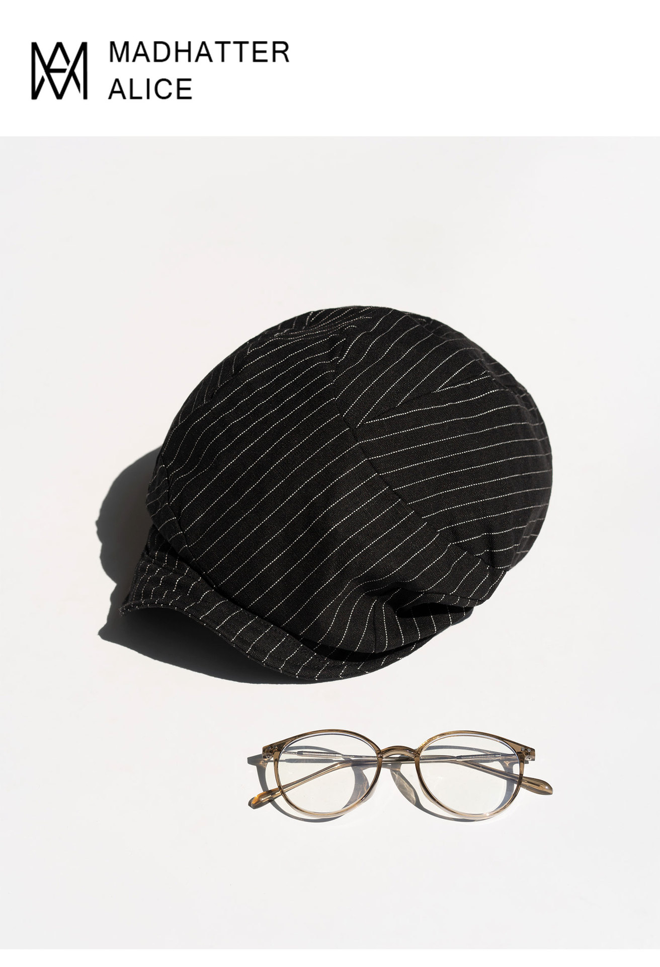 疯帽子 日系条纹褶皱贝雷帽小众复古报童帽帅气鸭舌帽子女25春夏