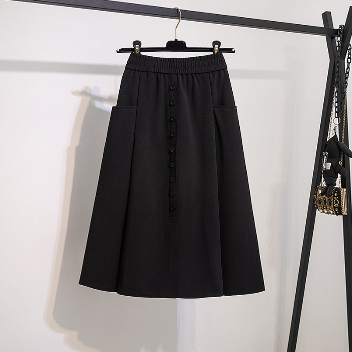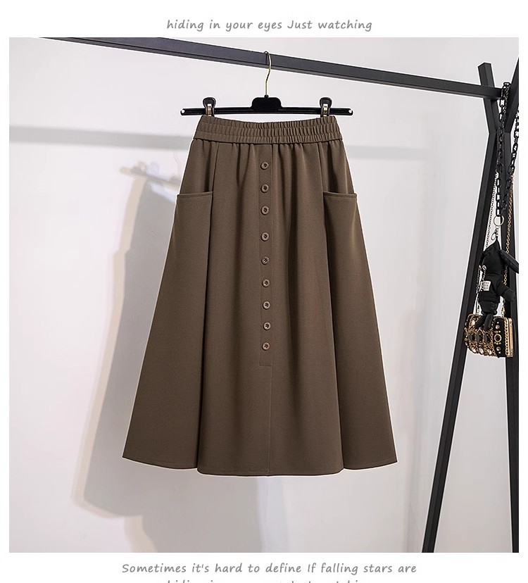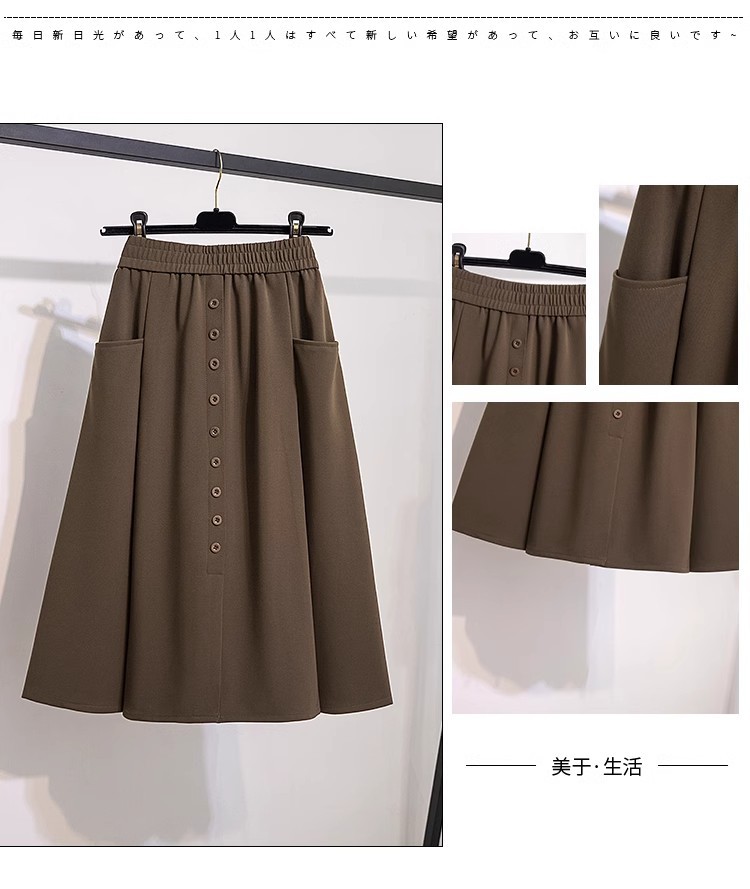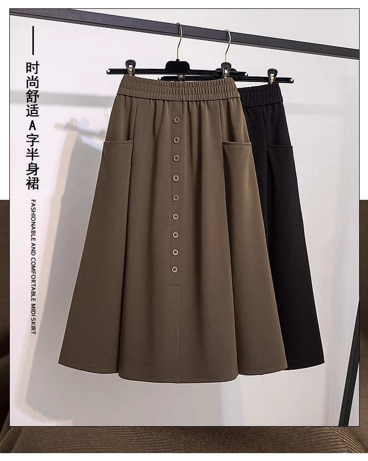 포켓 스커트 여성 2025 봄 새 스타일 슬림 A 라인 스커트 커버 크로스 캐주얼 엘라스토 중간 길이 우산 스커트스토어 가기