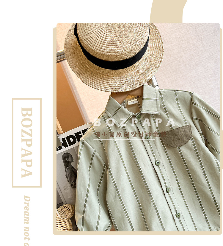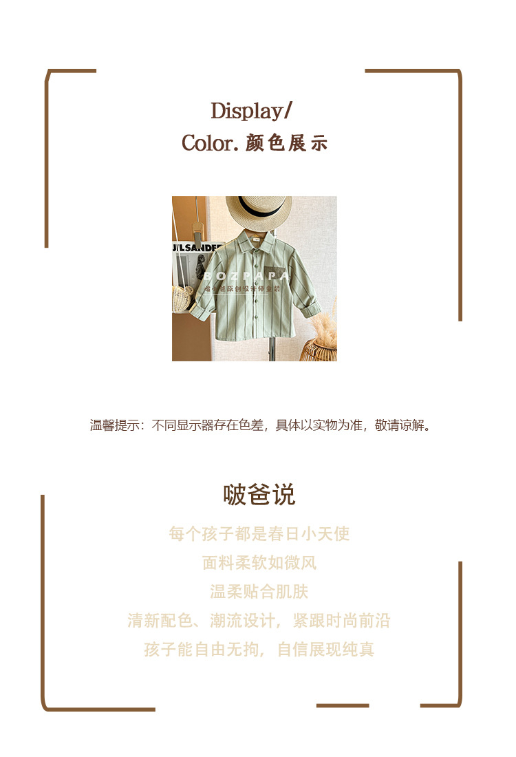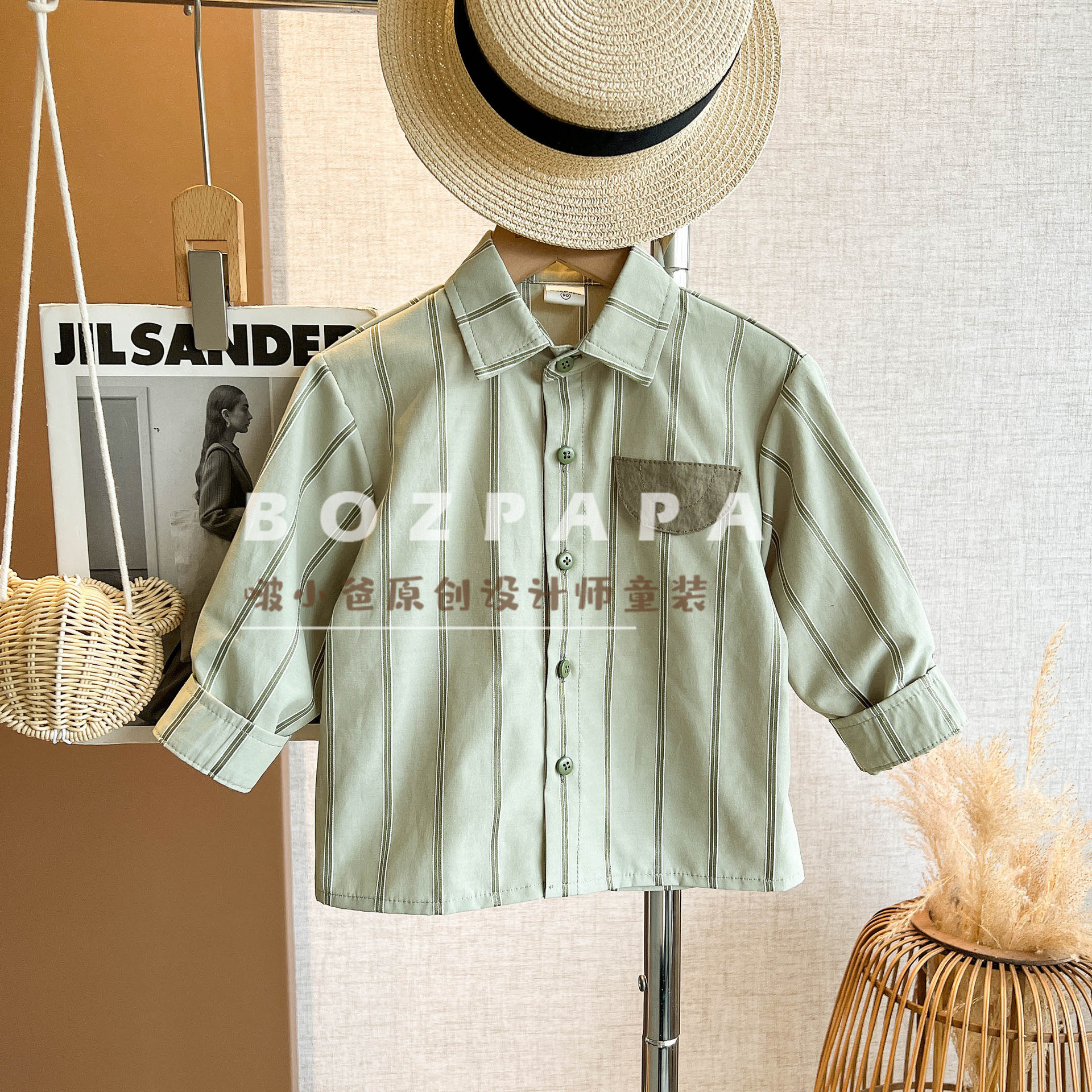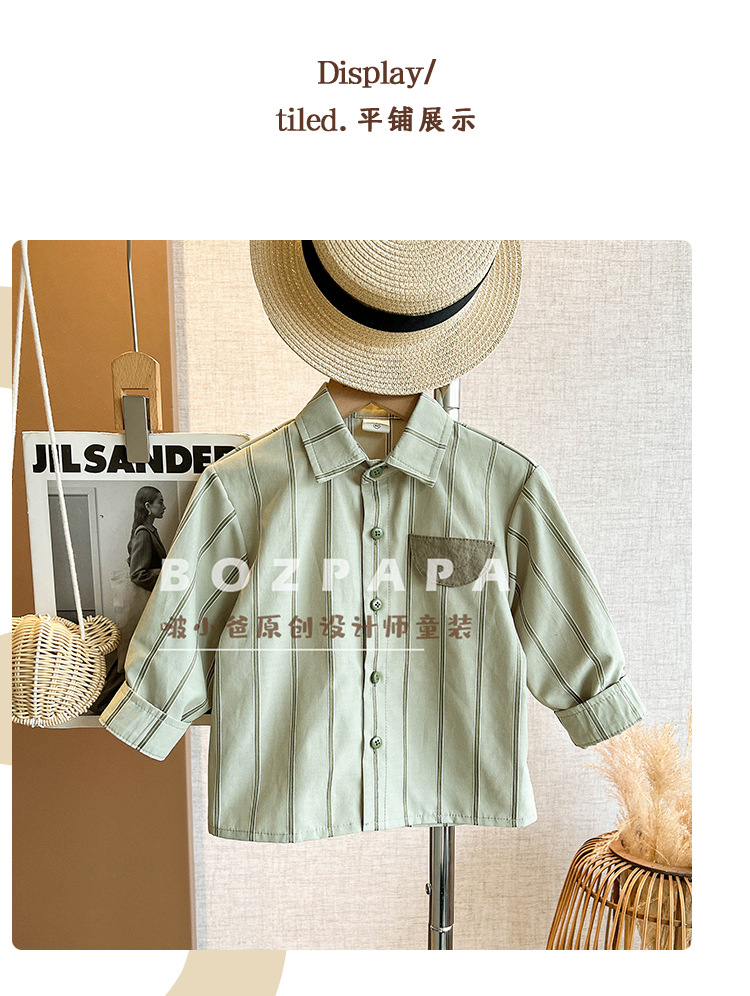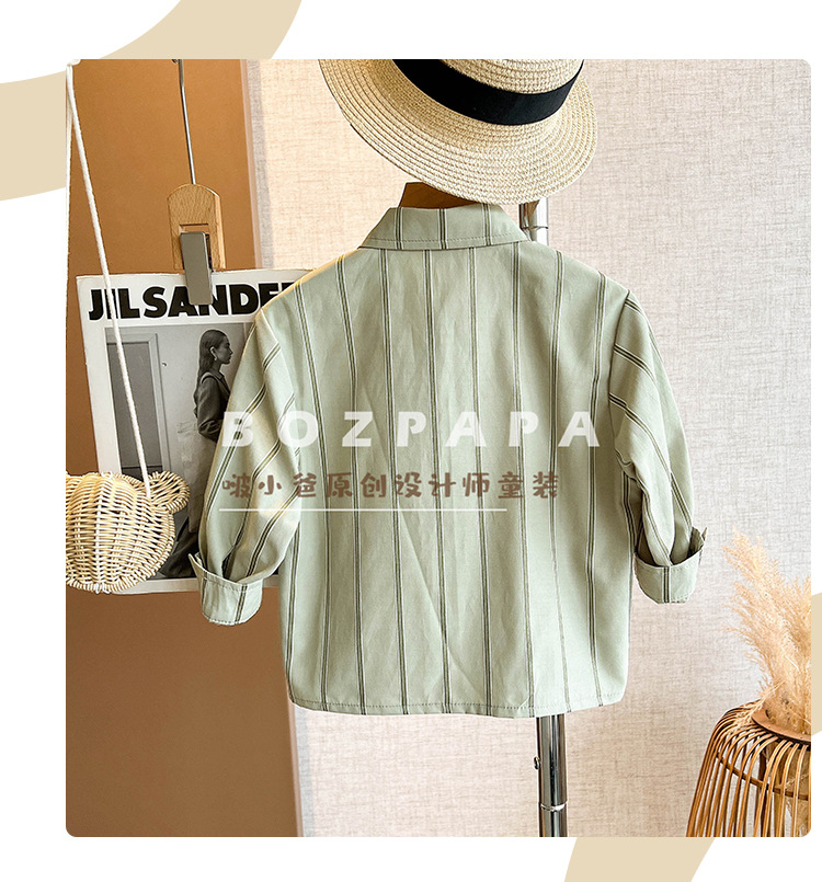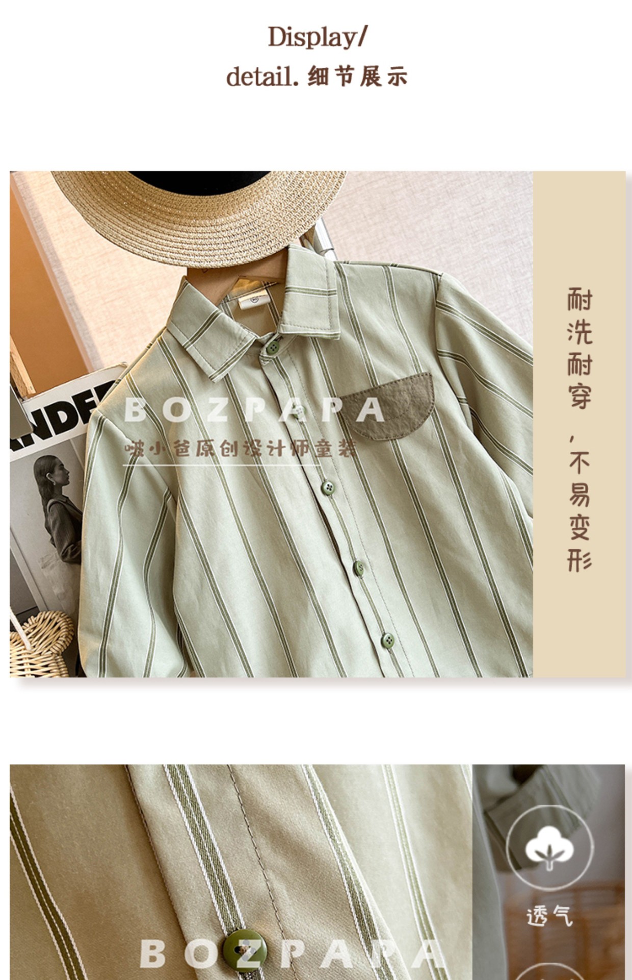 2025 봄 가을 새 소년 한국 스타일 캐주얼 셔츠 어린이 아기 패션 라이트 그린 줄무늬 셔츠스토어 가기