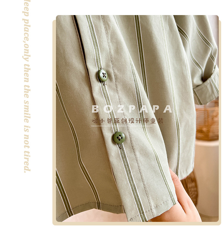 2025 봄 가을 새 소년 한국 스타일 캐주얼 셔츠 어린이 아기 패션 라이트 그린 줄무늬 셔츠